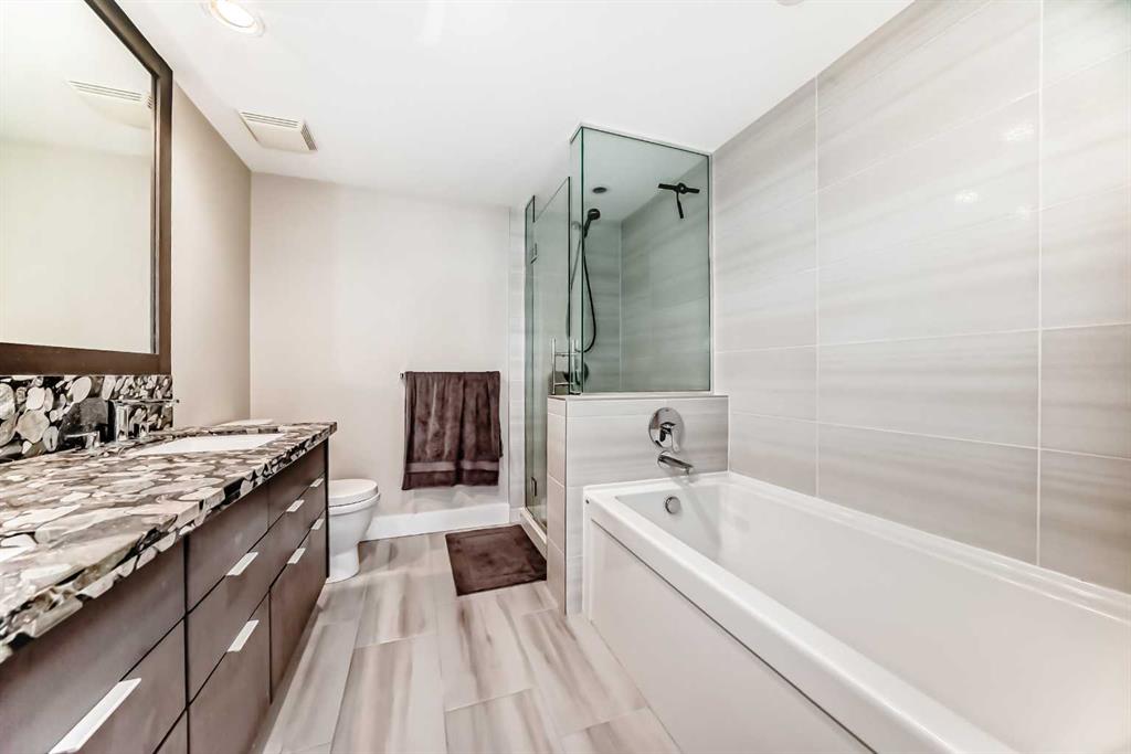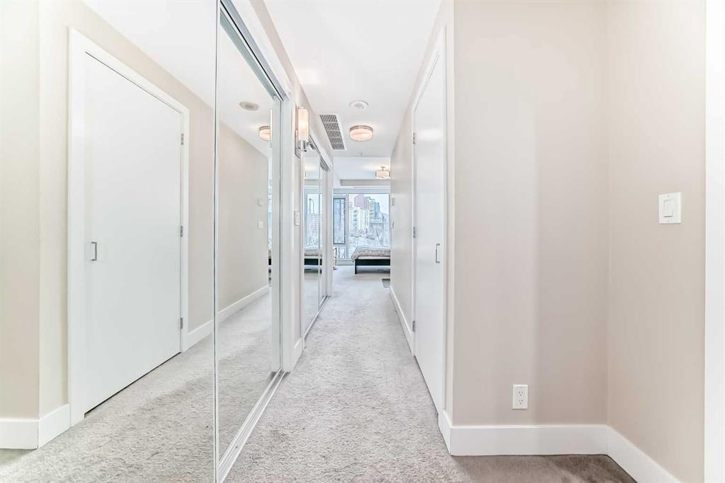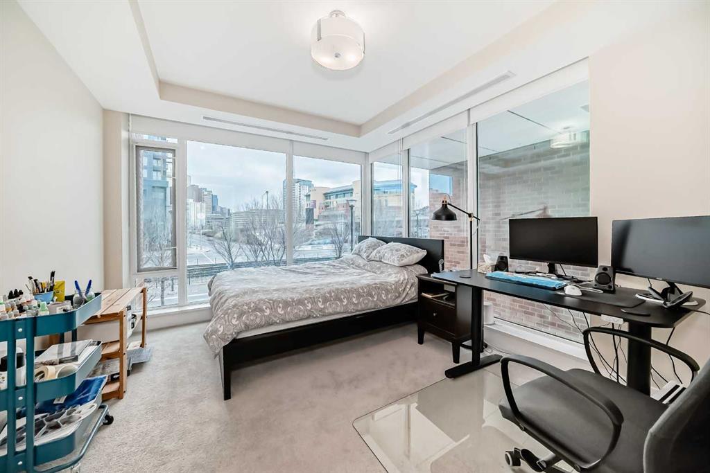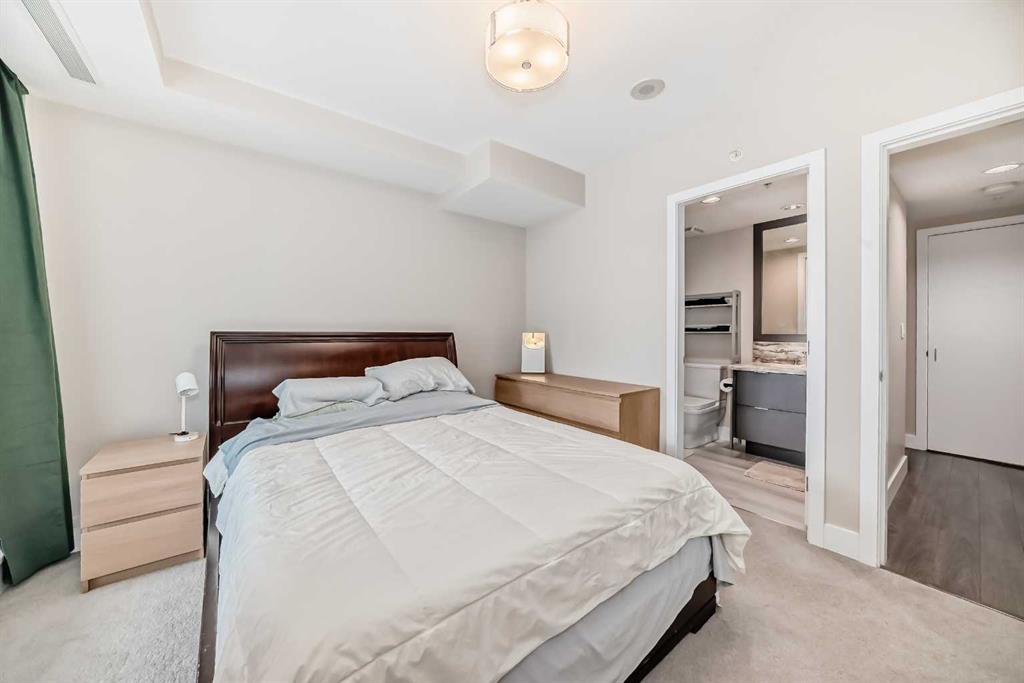 ***OPEN HOUSE SUNDAY APR 26 12:00-2:00pm*** Welcome to Evolution, where contemporary design meets effortless urban living in the heart of Calgary’s vibrant East Village. This rare two-storey, ground-floor residence offers nearly 1,300 sq. ft. of thoughtfully designed living space, blending the privacy of a townhouse with the convenience and amenities of a full-service condominium. Featuring two private entrances, including direct street access, and a spacious outdoor patio, this home offers a flexible lifestyle well-suited for professionals, downsizers, or investors seeking low-maintenance living in a dynamic inner-city setting. The main level showcases a bright, open-concept layout highlighted by floor-to-ceiling windows that flood the space with natural light. The modern kitchen is appointed with two-tone cabinetry, light granite countertops, stainless steel appliances, a five-burner gas range, and a new microwave (2022). A generous island provides the perfect space for casual dining and entertaining. A versatile flex area accommodates a dining space, home office, or fitness area, while a powder room and pantry complete the level. Durable laminate flooring runs throughout, offering both style and practicality. Upstairs, the spacious primary retreat features floor-to-ceiling windows, dual closets, and a spa-inspired ensuite with double vanities, a soaker tub, glass-enclosed shower, in-floor heating, and ample storage. The second bedroom includes its own private ensuite, making it ideal for guests, roommates, or family. The upper level also includes a new stackable LG washer and dryer (2025) and additional linen storage. Additional highlights include secure underground tandem parking with drive-through access, a convenient ground-floor storage locker, and the option to enter through either the street-facing entrance or the building interior. Residents of Evolution enjoy a full suite of premium amenities, including a fitness centre, sauna and steam rooms, concierge service, an owners’ lounge, and a beautifully designed rooftop garden with BBQ areas. Ideally located just steps from river pathways, the C-Train, grocery stores, and some of Calgary’s top dining and cultural destinations, this home offers exceptional walkability and lifestyle convenience. Notable nearby attractions include Nupo, Charbar, the Simmons Building, Phil & Sebastian Coffee, Parlour Ice Cream, Studio Bell, the King Eddy, and the Calgary Central Library, along with the emerging Flames Entertainment District. Offering the perfect balance of urban vibrancy and lock-and-leave ease, this residence presents a rare opportunity in one of Calgary’s most sought-after communities. The property has been consistently rented over the past six years, demonstrating strong investment potential and rental appeal. Book your tour today!