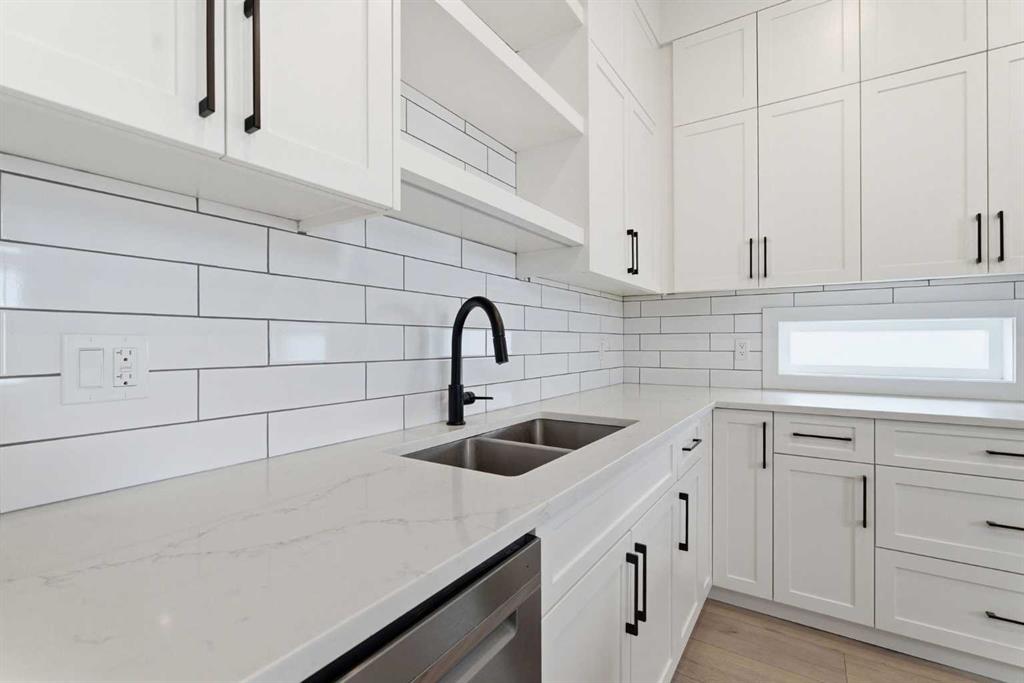 Welcome to this stunning executive end-unit bungalow with NO CONDO FEES! Built by Partner’s Development, this beautifully crafted home offers almost 2000 sq ft of professionally designed living space, blending style, comfort, and quality throughout. Step inside to an inviting open-concept layout highlighted by soaring vaulted ceilings and a cozy fireplace, creating a bright and airy space perfect for both everyday living and entertaining. The showpiece kitchen is a true standout—featuring quartz countertops, a large island with seating, ample cabinetry, custom shelving, sleek backsplash, and upgraded black fixtures—ideal for hosting or honing your culinary skills. The main floor primary suite is a peaceful retreat, complete with a spacious walk-in closet and a luxurious 4-piece ensuite with dual vanities. A convenient main-floor laundry room and powder room add to the home’s thoughtful design. Downstairs, the professionally developed basement expands your living space with a large recreation/family room—perfect for movie nights or game days—along with two additional bedrooms and a full bathroom, making it ideal for guests or a growing family. Enjoy outdoor living in the fully landscaped yard, offering space for a BBQ and seating area—perfect for relaxing summer evenings. Additional features include triple-pane windows, a tankless water heater, and an energy-efficient boiler system with hot water-fed furnace with seperate dual air zones, and a heated/insulated detached garage, and plenty of parking space! With a Built Green Gold certification, this home delivers exceptional efficiency without compromising on luxury. A rare opportunity—schedule your private showing today!
