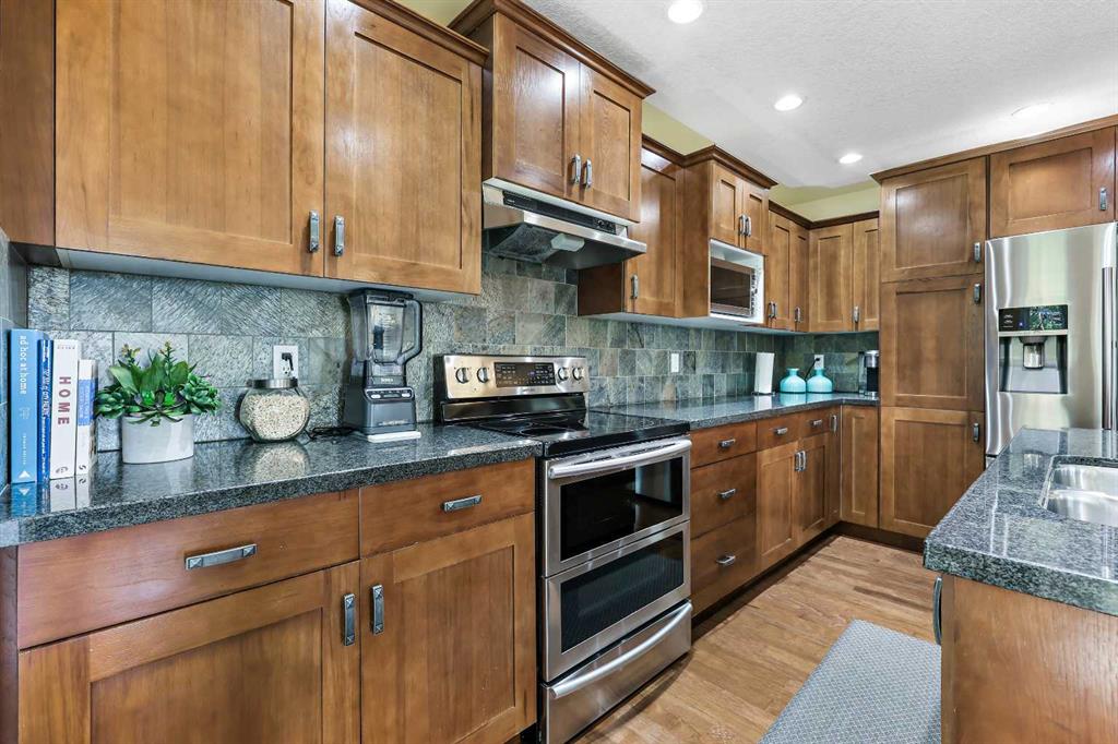 Tucked at the end of a cul-de-sac in Coach Hill, this beautifully maintained two-storey backs directly onto green space and serves up wide-open views of Calgary’s skyline. Inside, you’ll find over 3,100 square feet of thoughtfully designed living space—completely move-in ready and filled with natural light. The main floor is open and airy with oversized windows, a bright front living room with French doors opening directly to a large front balcony, where you’ll actually want to spend time—coffee, wine, and Stampede fireworks… all included. The kitchen blends warmth and function with solid wood cabinetry, built in pantry, granite countertops, stainless appliances, and a layout that connects easily to the breakfast nook, dining, and family room. Whether you’re hosting or unwinding, this space works. Upstairs, the primary suite takes advantage of the naturally private surroundings, and includes a large walk-in closet plus a relaxing 4pc ensuite with a deep soaker tub. Two more bedrooms, an upgraded 3 pc bathroom with a huge walk-in shower, and a sunny flex space, with views, give everyone room to spread out. The finished lower level checks all the boxes for hangouts, hobbies, or guest space—with a fireplace, full 4pc bathroom, storage, plenty of space to add a fourth bedroom if needed. Out back, the yard is private, fully landscaped with new sod and mature trees. The double garage is EV-ready, and there’s programmable Gemstone lighting on the exterior. Recent upgrades include a new roof, A/C, high-efficiency furnace, modern lighting, newer carpet, and full interior/exterior paint—almost everything’s been done for you. Just minutes to Westside Rec Centre, COP, schools, the LRT, downtown, and the mountains. Quiet, connected, and completely dialed in—this home is one of Coach Hill’s best values for commuters and regular mountain visitors