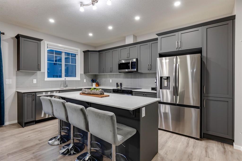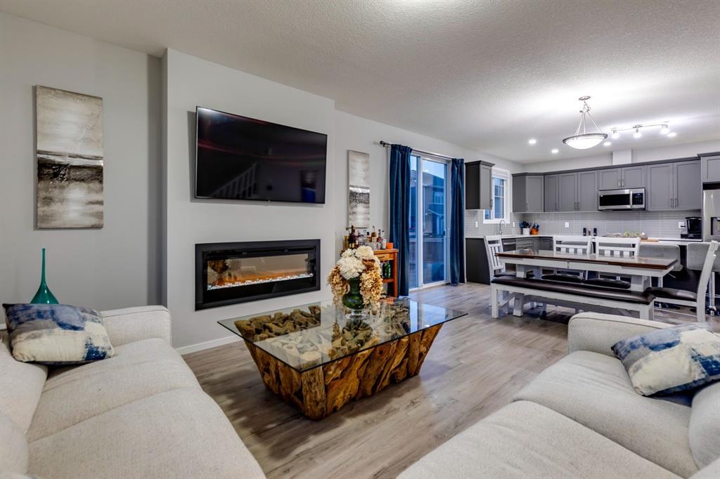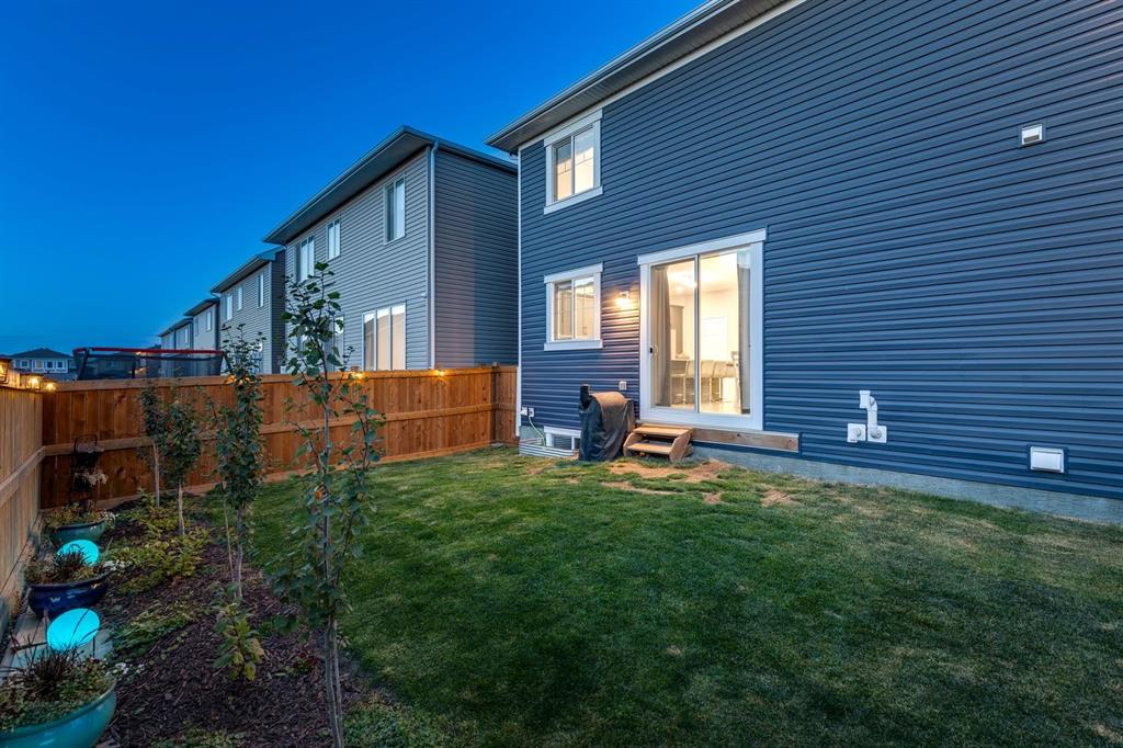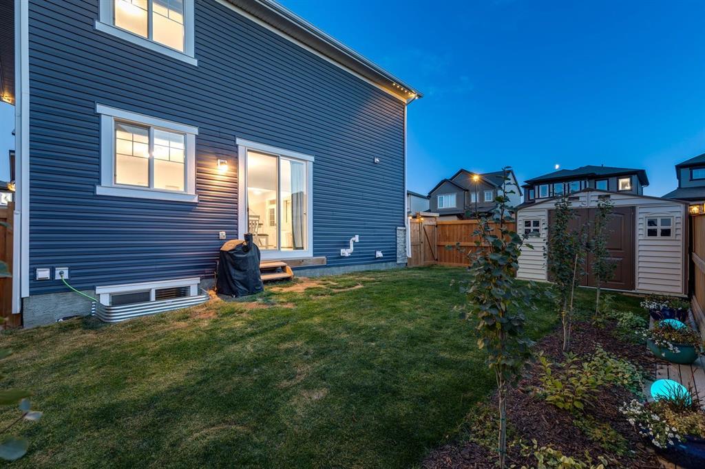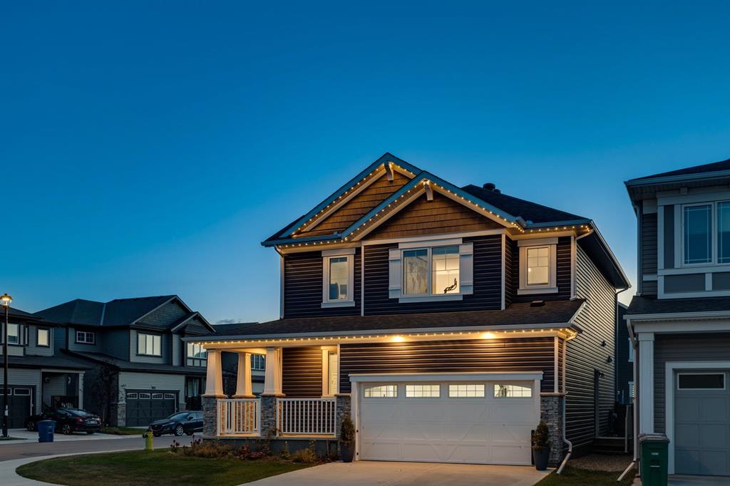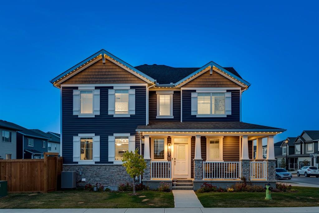 A gorgeous, almost-new home tucked on a quiet corner lot in one of Airdrie's most sought-after communities. With a desirable west-facing backyard that captures the afternoon and evening sun, this turnkey property is thoughtfully designed and loaded with upgrades inside and out. From the moment you arrive, the striking exterior stands out with Gemstone soffit lighting, a welcoming front veranda, and stylish architectural details that make a strong first impression. Step inside to find high-end luxury vinyl plank flooring, soaring 9-foot ceilings, and a bright, open-concept floor plan filled with natural light streaming through the many windows. At the heart of the home, the chef-inspired kitchen impresses with elegant matte grey cabinetry, sparkling quartz countertops, a large central island with seating, and premium appliances. The thoughtful design continues with ~ convenient side entrance, perfect for future basement development or private access. Relax and entertain in the spacious living area featuring a sleek linear fireplace framed by custom finishes - ideal for cozy evenings. Upstairs, a generous bonus room offers additional living space for movie nights, a playroom, or a home office. The home features three well-sized bedrooms, including a tranquil primary retreat with a beautifully finished en suite and walk-in closet. Upper-level laundry adds everyday convenience and includes upper level laundry. Outside, the fully fenced west-facing yard is ready for summer fun, complete with a storage shed and plenty of room to garden, play, or relax in the sunshine. Central air conditioning keeps the home cool and comfortable year-round. Located in a family-friendly area, this home is close to all levels of schools, parks, and everyday amenities, with easy highway access for commuters. Future development plans include new schools and another expanded Genesis Place recreation facility, making this an even more attractive long-term investment. Thoughtfully upgraded and meticulously maintained, 572 Southwinds Close SW offers a perfect blend of style, function, and value. Whether you're a growing family or a buyer seeking a move-in-ready home with modern finishes, this property delivers on every level.
