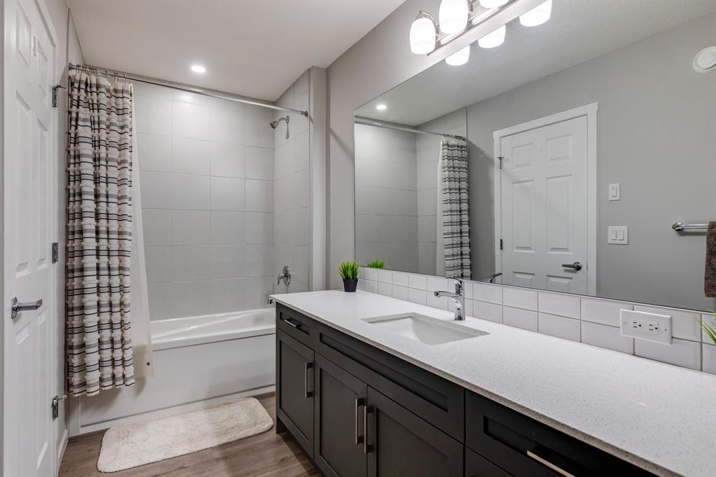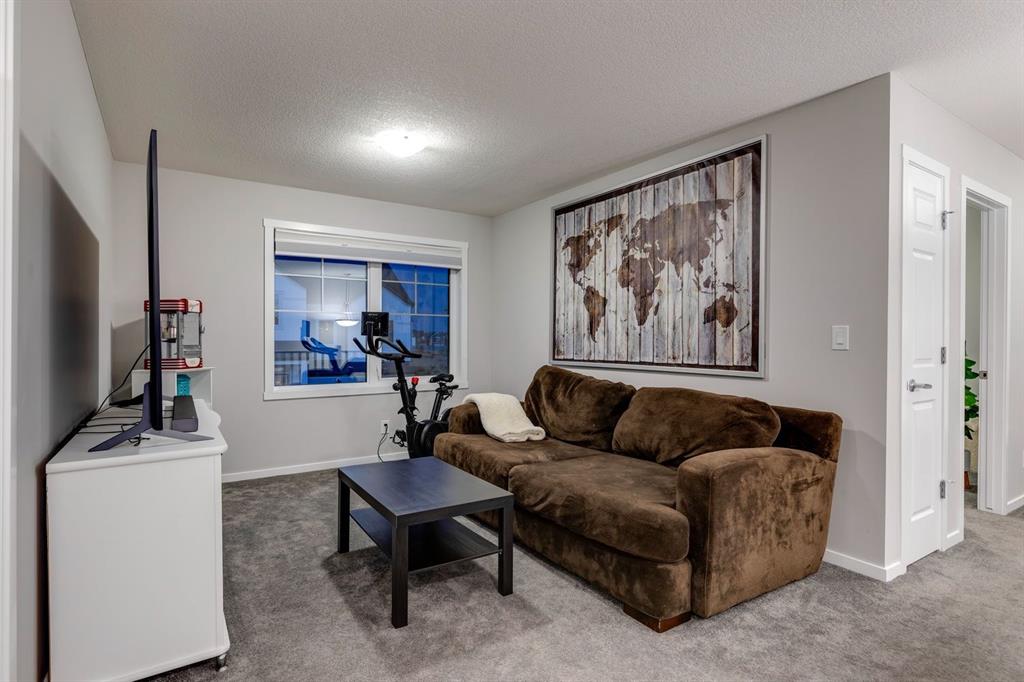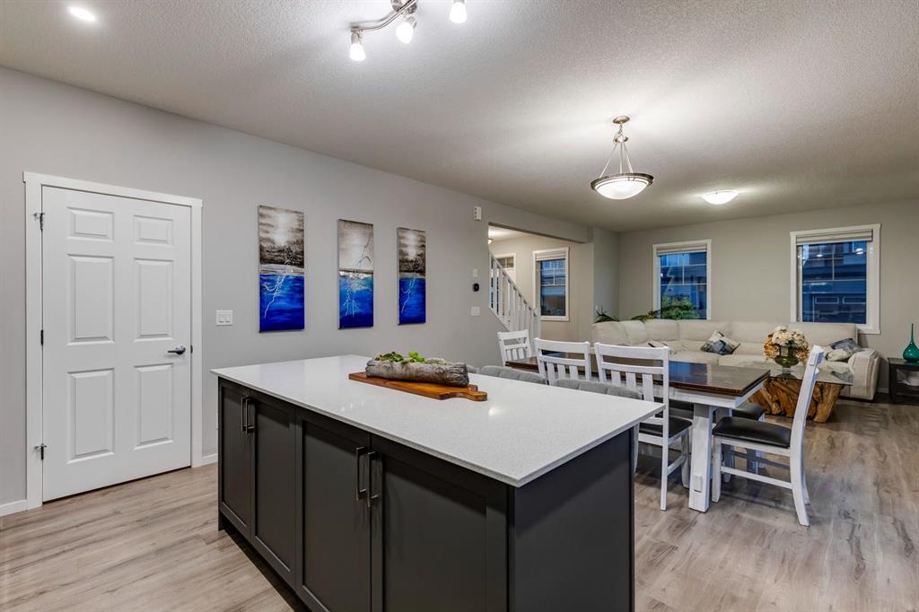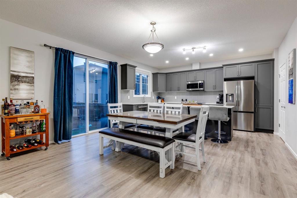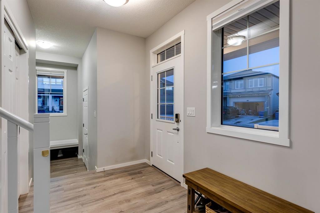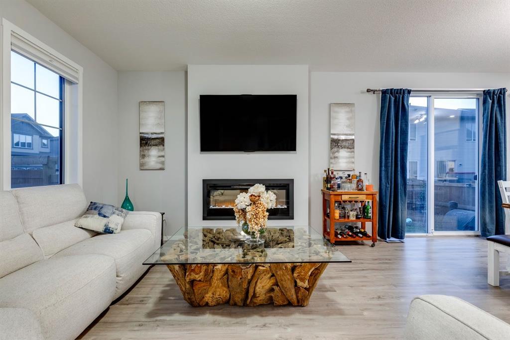 A gorgeous, almost-new home tucked on a quiet corner lot in one of Airdrie's most sought-after communities. With a desirable west-facing backyard that captures the afternoon and evening sun, this turnkey property is thoughtfully designed and loaded with upgrades inside and out. From the moment you arrive, the striking exterior stands out with Gemstone soffit lighting, a welcoming front veranda, and stylish architectural details that make a strong first impression. Step inside to find high-end luxury vinyl plank flooring, soaring 9-foot ceilings, and a bright, open-concept floor plan filled with natural light streaming through the many windows. At the heart of the home, the chef-inspired kitchen impresses with elegant matte grey cabinetry, sparkling quartz countertops, a large central island with seating, and premium appliances. The thoughtful design continues with ~ convenient side entrance, perfect for future basement development or private access. Relax and entertain in the spacious living area featuring a sleek linear fireplace framed by custom finishes - ideal for cozy evenings. Upstairs, a generous bonus room offers additional living space for movie nights, a playroom, or a home office. The home features three well-sized bedrooms, including a tranquil primary retreat with a beautifully finished en suite and walk-in closet. Upper-level laundry adds everyday convenience and includes upper level laundry. Outside, the fully fenced west-facing yard is ready for summer fun, complete with a storage shed and plenty of room to garden, play, or relax in the sunshine. Central air conditioning keeps the home cool and comfortable year-round. Located in a family-friendly area, this home is close to all levels of schools, parks, and everyday amenities, with easy highway access for commuters. Future development plans include new schools and another expanded Genesis Place recreation facility, making this an even more attractive long-term investment. Thoughtfully upgraded and meticulously maintained, 572 Southwinds Close SW offers a perfect blend of style, function, and value. Whether you're a growing family or a buyer seeking a move-in-ready home with modern finishes, this property delivers on every level.