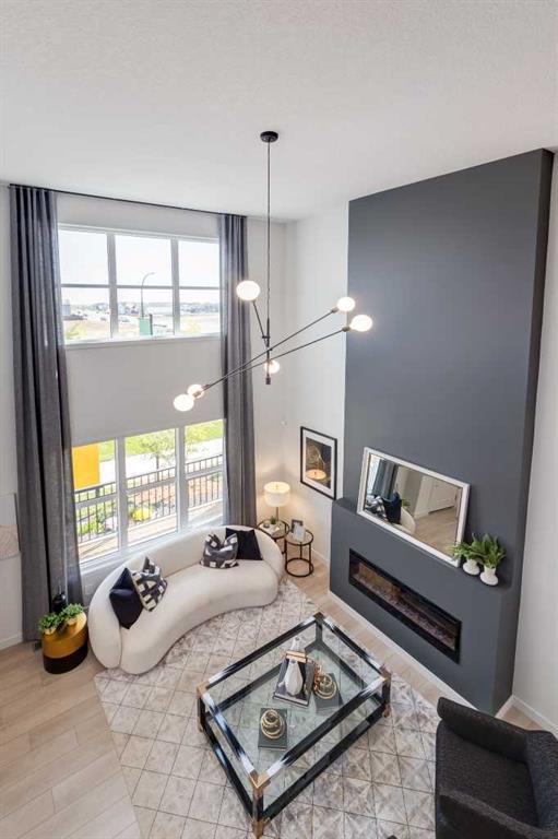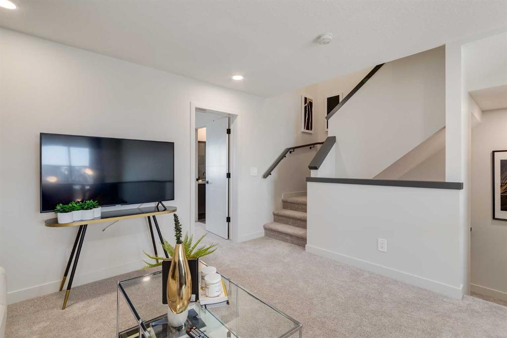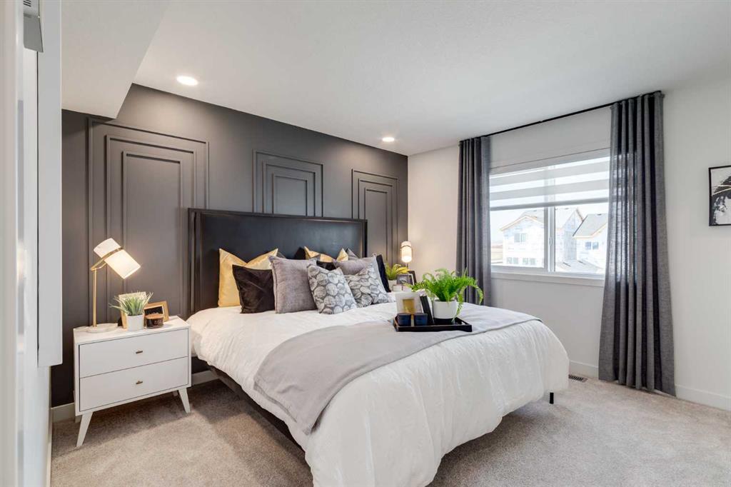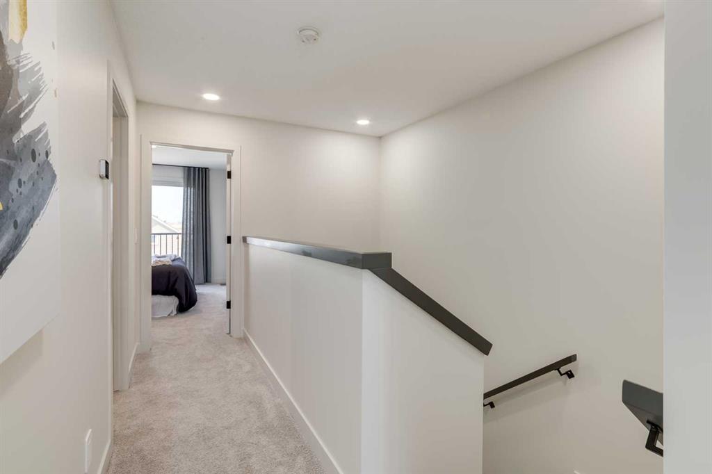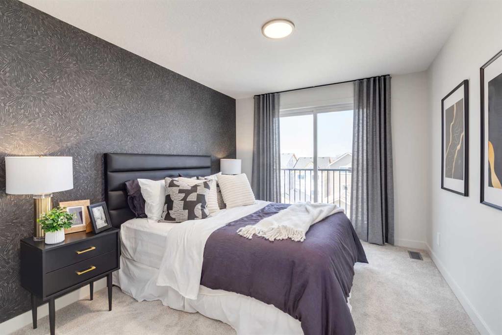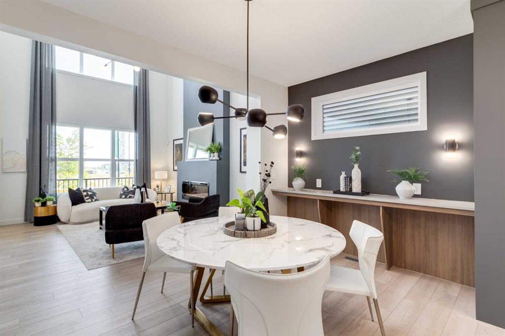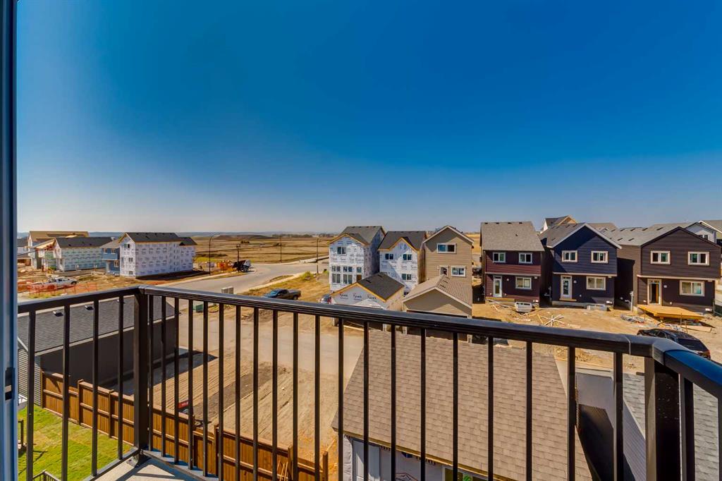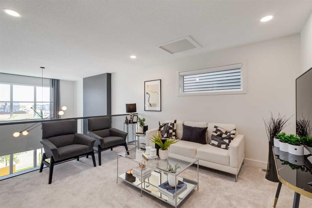 THIS HOME SPENT ITS FIRST YEARS IN THE SPOTLIGHT AS A HOMES BY AVI SHOWHOME. NOW IT’S READY TO TRADE DISPLAY LIFE FOR REAL LIFE WITH ITS FIRST OWNER. The living room itself rises TWO STOREYS HIGH, anchored by a bold painted feature wall with an ELECTRIC FIREPLACE and clean mantle ledge. Windows stack one above another, pulling daylight into every corner. GLASS RAILING from the bonus room above keeps the sightlines open, so even upstairs you feel part of the action. In the kitchen, the details go beyond builder-basic: QUARTZ COUNTERS, a Silgranit undermount sink, GAS RANGE under a CUSTOM HOOD, and a backsplash that climbs full-height around the window. The dining area includes a BUILT-IN CONSOLE that doubles as a hosting tool — the perfect place to serve, set out, or even pull up a stool for extra seating. From here, meals move easily onto the 20’ REAR DECK where the gas line is ready to go. A POCKET OFFICE near the front door gives work and study their own spot, while MUDROOM CABINETRY shoulders the chaos of backpacks, boots, and grocery bags. Upstairs, the bonus room overlooks the living room below. Just outside the laundry room, a wall of FLOATING SHELVES AND BUILT-INS keeps household essentials organized and close at hand. The laundry itself stays simple and contained, while the master offers its own retreat with a walk-in closet and ensuite. The THIRD FLOOR adds two more bedrooms and a bath with a double vanity, plus the rear bedroom includes a WEST-FACING BALCONY — one more way this home builds outdoor living into daily life. And here’s where the “former showhome” part really matters: the extras are already finished. DESIGNER WINDOW COVERINGS are up, UPGRADED LIGHTING is installed, AIR CONDITIONING is running, SPRINKLERS are in the yard, and the landscaping is done. Out back, a full-sized 20’X20’ DETACHED GARAGE is ready, and the curb appeal is set with a wide front porch. No waiting for sod, no living with temporary blinds, no upgrading light fixtures on weekends. This is Rangeview by Section 23, Calgary’s first garden-to-table community. Streets are shaped by orchards, gardens, and gathering spaces, so connection feels built-in from the start. Most new builds begin with a to-do list. This one begins with a head start. Come see how it feels to MOVE INTO A SHOWHOME that’s finally ready to be lived in.