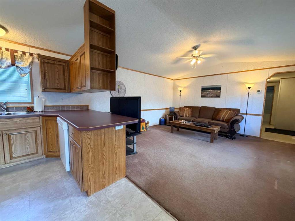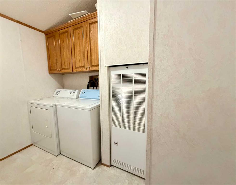 Former SRI show home, this 2007, 16 x 76' mobile is located on a rented lot in Rocky Mountain Estates (formerly Killian Mobile Home Park). Features include a central living, dining and kitchen area with large windows and plenty of cabinet and counter space. There's also an oversized pantry conveniently located next the the fridge and back hall. The master bedroom, four piece ensuite and large walk in closet are at the far end with two more bedrooms and a full bathroom on the front side. The separate laundry room is located just in from the back door with extra storage space. Custom built metal stairs at the front door plus there's an rv plug and sewer drain on the west side of the home where there's plenty of off street parking for your rv. Available for a quick possession.