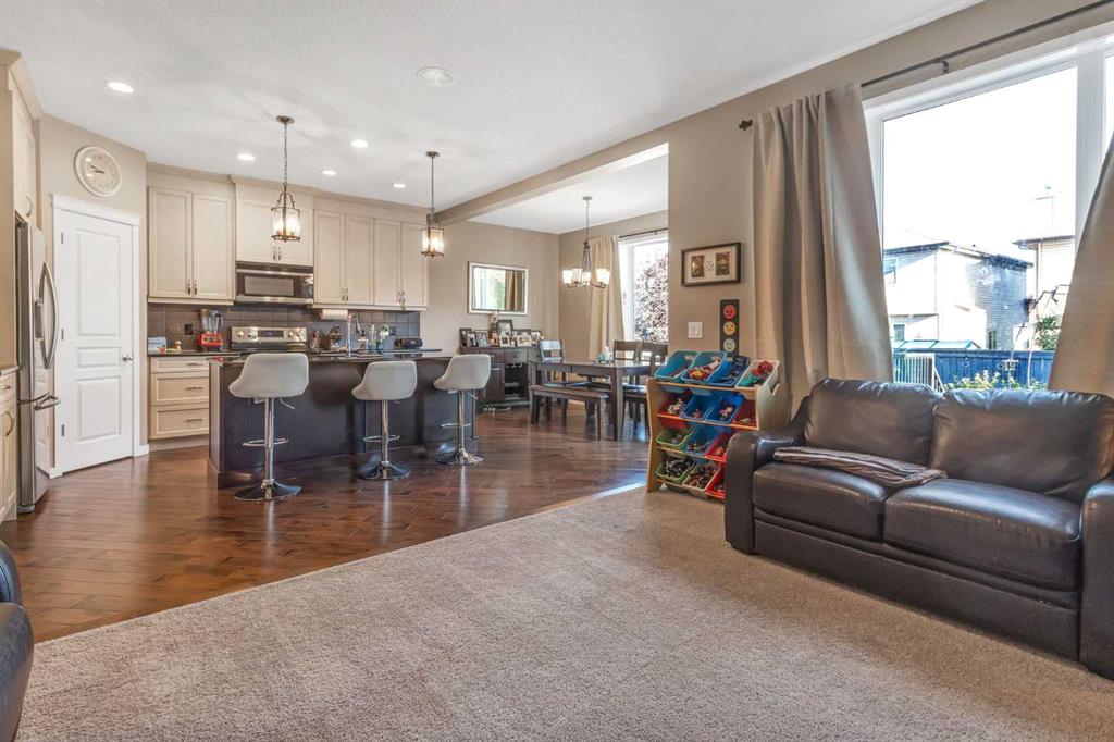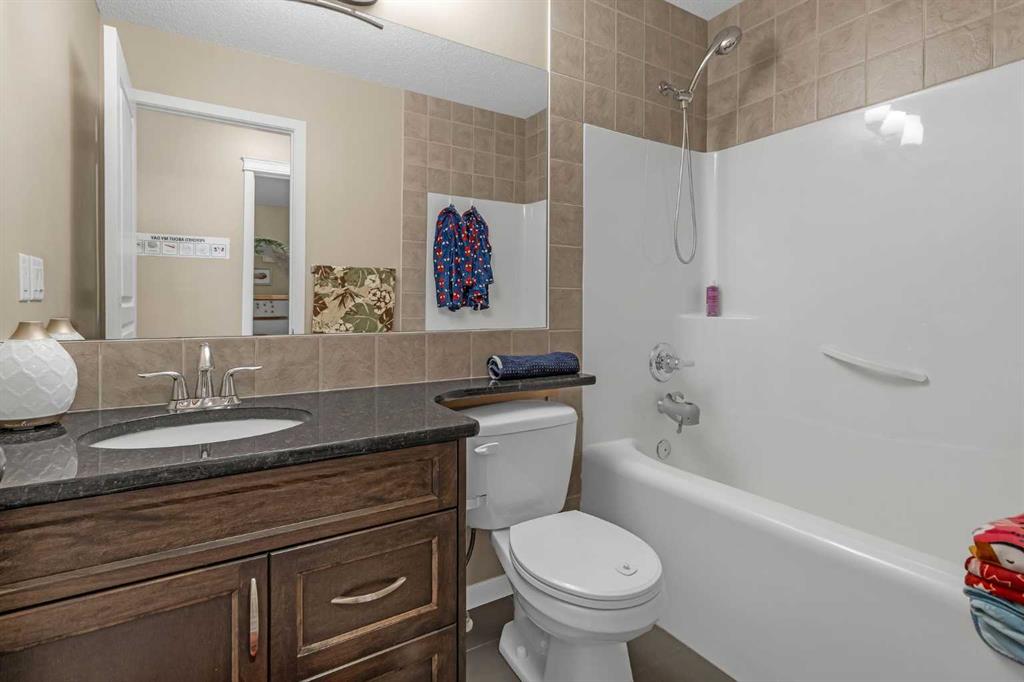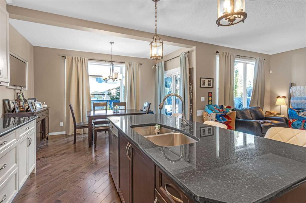 Welcome to 6 Auburn Glen Common SE, a fully developed 4 bedroom family home in the sought after lake community of Auburn Bay offering over 3,000 square feet of space. The front exterior blends clean lines with wood accents and tasteful stone detailing that continues to the covered entry. Step into a foyer with soaring ceilings that open to the second story, setting the tone for the bright and welcoming interior. Hardwood floors and elegant upgraded lighting fixtures guide you through the open main level where a kitchen, dining area, and living room flow seamlessly together for everyday living and entertaining. The kitchen features a large granite island with an extended breakfast ledge, full height cabinetry, stylish pendant lighting, a corner pantry, and stainless-steel appliances including a newer Bosch dishwasher. The living room centers around a striking stone gas fireplace, and the dining area provides plenty of space for enjoying formal meals or hosting friends. A main floor office offers a quiet place to work and study, while a half bath and mudroom with laundry and utility sink complete this level. Upstairs you will find the spacious primary retreat with a new triple pane window that keeps the space comfortable and quiet, a walk-in closet, and a five-piece ensuite with dual granite vanities, a large corner soaker tub, and a standalone shower. Two additional bedrooms and another full bathroom provide room for the whole family. The generous bonus room filled with natural light is perfect for movie nights or an extra play area. The finished lower level offers the same quality as the rest of the home. It includes a large recreation room that works perfectly as a home gym, yoga space, or an extra kid's hangout, along with a fourth bedroom and a three-piece bath with a shower and granite counters. Outside, the backyard is set up for both play and leisure with a spacious deck and a versatile concrete pad that works just as well for a trampoline as it does for sidewalk-chalk art or a cozy lower seating area, plus a hot tub ready for year-round enjoyment. Additional highlights include granite counters throughout the home, central air conditioning, a Nest thermostat for efficient climate control, central-vac, and an exposed aggregate driveway and walkway that enhance the curb appeal. Set on a friendly street with the best neighbours, and just minutes from schools, parks, shopping, dog park, the South Health Campus, and so many more amenities, this home offers the year-round lifestyle of Auburn Bay with lake access for swimming, skating, and community events. Book your showing today!