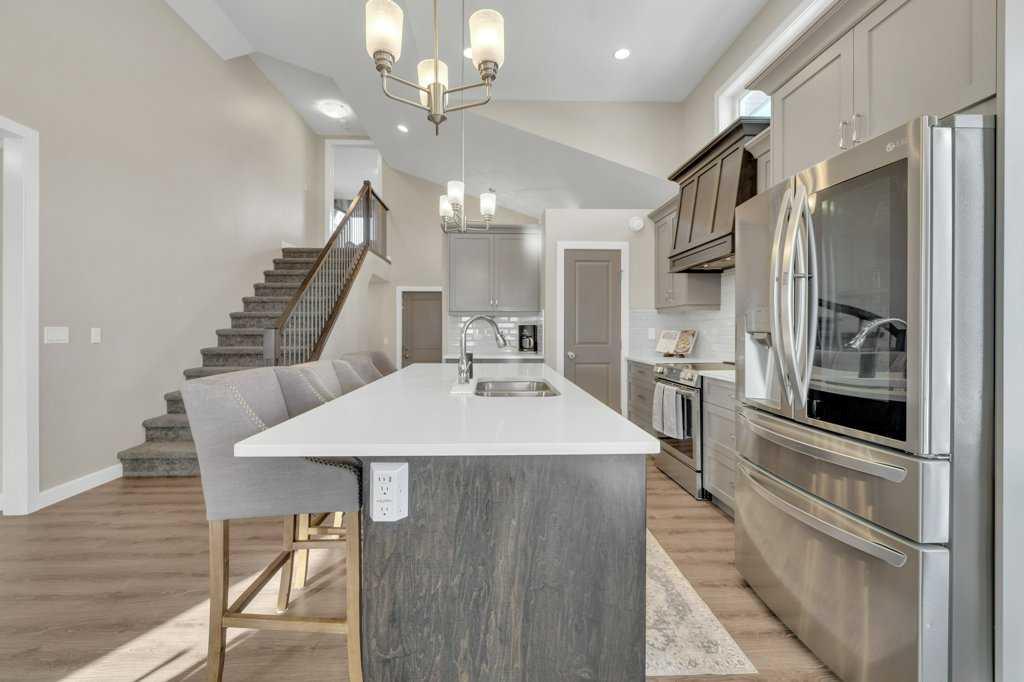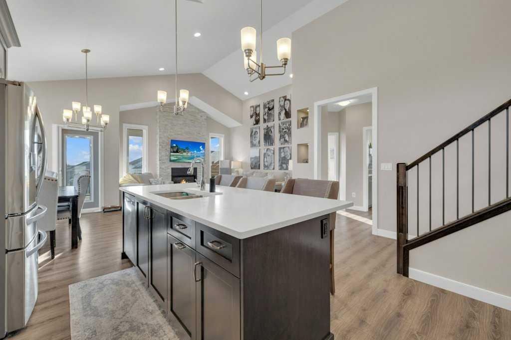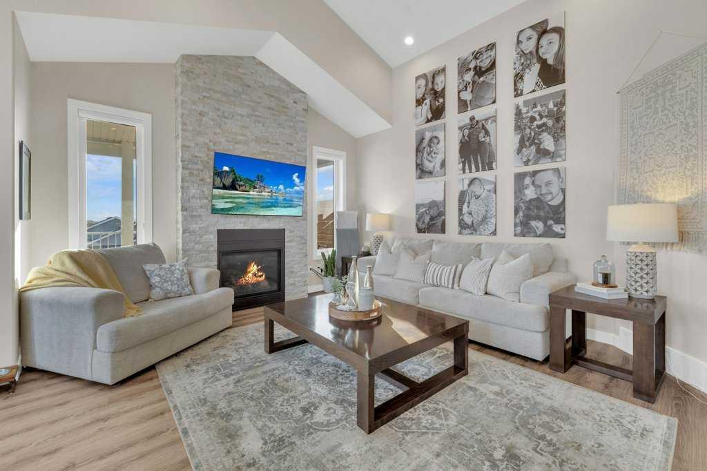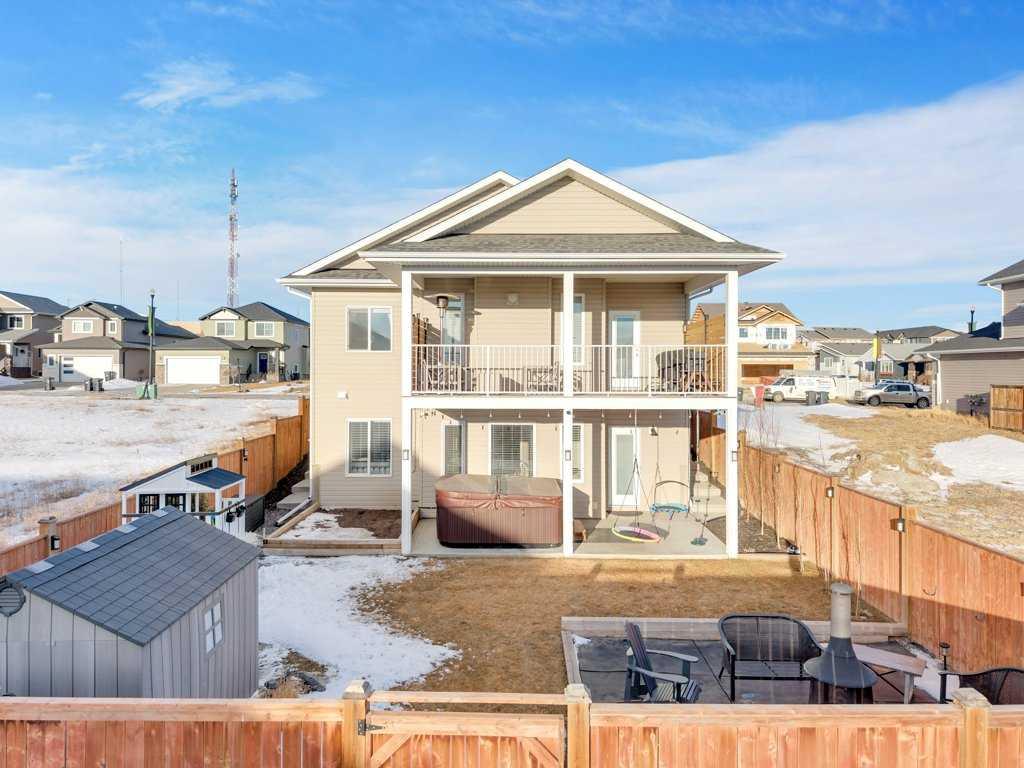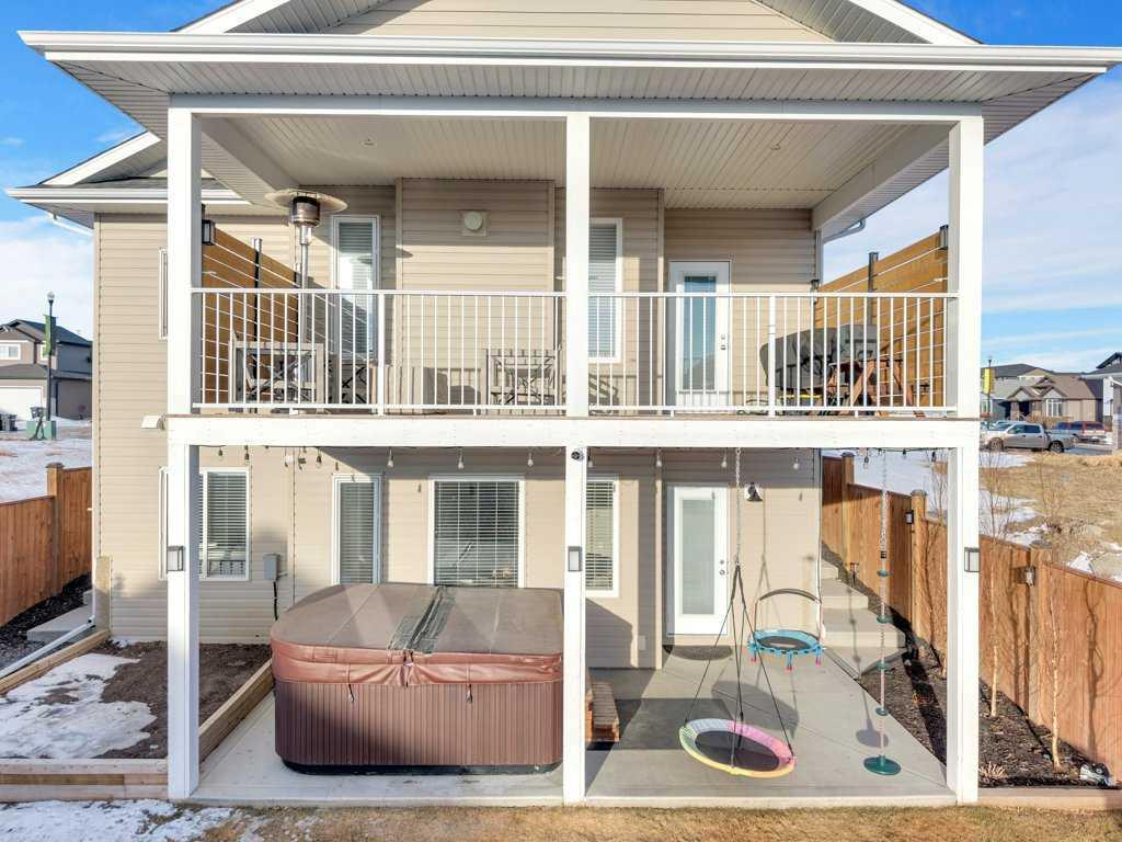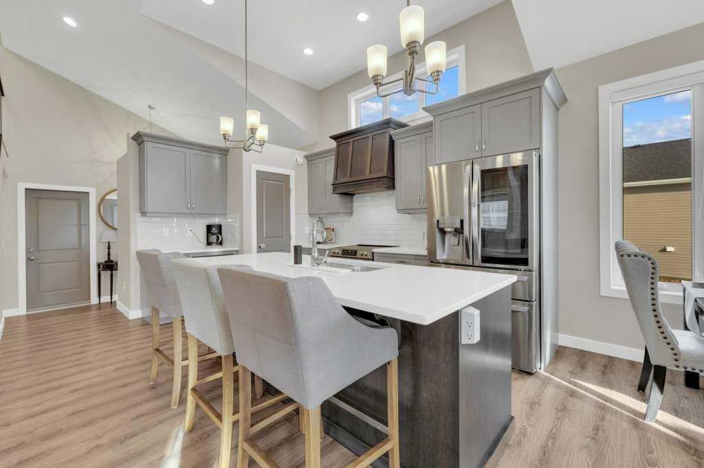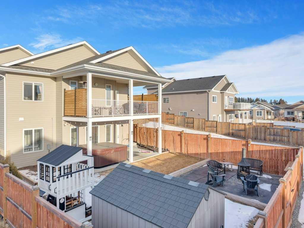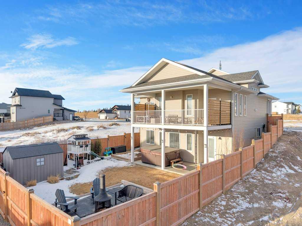 Classy in Crestview! Welcome to this spacious and beautifully designed Havanbuilt 5 bedroom, 3 bathroom modified bi-level that perfectly blends style, comfort, and functionality. Inside, soaring vaulted ceilings and large windows create a bright and welcoming atmosphere throughout the main living spaces. The heart of the home is the thoughtfully designed with the kitchen featuring a charming dormer window, elegant quartz countertops, a custom range hood, large walk in pantry, stainless steel appliances (all less than two years old)—perfect for both everyday living and entertaining, and the adjacent living and dining spaces create a warm and inviting atmosphere for the family. The living room is the focal point in this beauty, with a beautiful gas fireplace and floor to ceiling rock wall! The spacious primary bedroom is its own private retreat, tucked away on the upper level, and offers tons of natural light, a walk in closet, and a luxurious ensuite featuring a double vanity, tiled shower, and a relaxing soaker tub. Two additional bedrooms and a full bathroom complete the main level, along with a convenient main-floor laundry room with quartz countertops and sink adding practicality to everyday living. The fully developed lower level walkout adds incredible living space, offering two additional bedrooms—both with walk-in closets—plus a full bathroom, making it ideal for guests, teens, or extended family. The utility room is also large and offers tons of storage for the growing family. Additional features include a widened driveway, A/C, upgraded window coverings, insulated bedrooms for soundproofing and some solid wood doors throughout the home. Step outside to your beautifully landscaped backyard oasis! The yard has been professionally maintained with Green Drop lawn care and includes tons of solar lighting, a garden bed, fire pit, play structure for the kids, and a shed on a concrete pad. Poured concrete stairs run along both sides of the house for easy access for your guests for those summertime bonfires. The fully fenced yard has three points of access, including back alley access too! Outdoor living is truly exceptional with a fully covered upper AND lower deck, perfect for relaxing or entertaining, plus a lower concrete patio featuring a 10’ x 10’ hot tub (included)—creating the ultimate space to unwind year-round. The location is also great as this property is located not far from Sylvan Lake's miles of walking trails, the disc golf course, schools, parks/playgrounds, Meadowlands Golf Course, and it is just a short drive out to HWY 11 and HWY 20. An opportunity to own a rare, highly upgraded modified bi-level in pristine condition with 5 bedrooms, and perfectly balances comfort, style, and exceptional outdoor living.