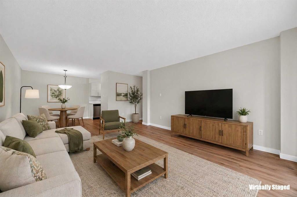 Welcome to Hays Farm in the established southwest community of Haysboro. This updated 705 sq. ft. one-bedroom condo offers comfortable living in a quiet, park-like complex surrounded by mature trees and landscaped green spaces. This apartment condo features new laminate flooring throughout, new baseboards, and has been freshly painted, creating a bright, clean, move-in-ready interior. Other renovations include new light fixtures, new toilet, refinished countertops, new bathroom sink and new faucets in both the bathroom and kitchen. The functional layout provides a spacious living area, efficient kitchen, and a generously sized bedroom. Step outside onto your private deck overlooking the complex’s outdoor swimming pool, a perfect spot to relax during warm summer days. The laundry room is just steps away from #602 and the assigned parking stall #153 can be seen close by from your balcony Hays Farm offers excellent amenities including a seasonal outdoor pool, tennis courts, sauna, bike storage room and clubhouse, creating a community atmosphere that’s hard to find at this price point. Located within walking distance to Heritage LRT Station and close to Macleod Trail, Chinook Centre, shopping, restaurants, and major commuter routes, this home offers outstanding convenience for first-time buyers, downsizers, or investors.