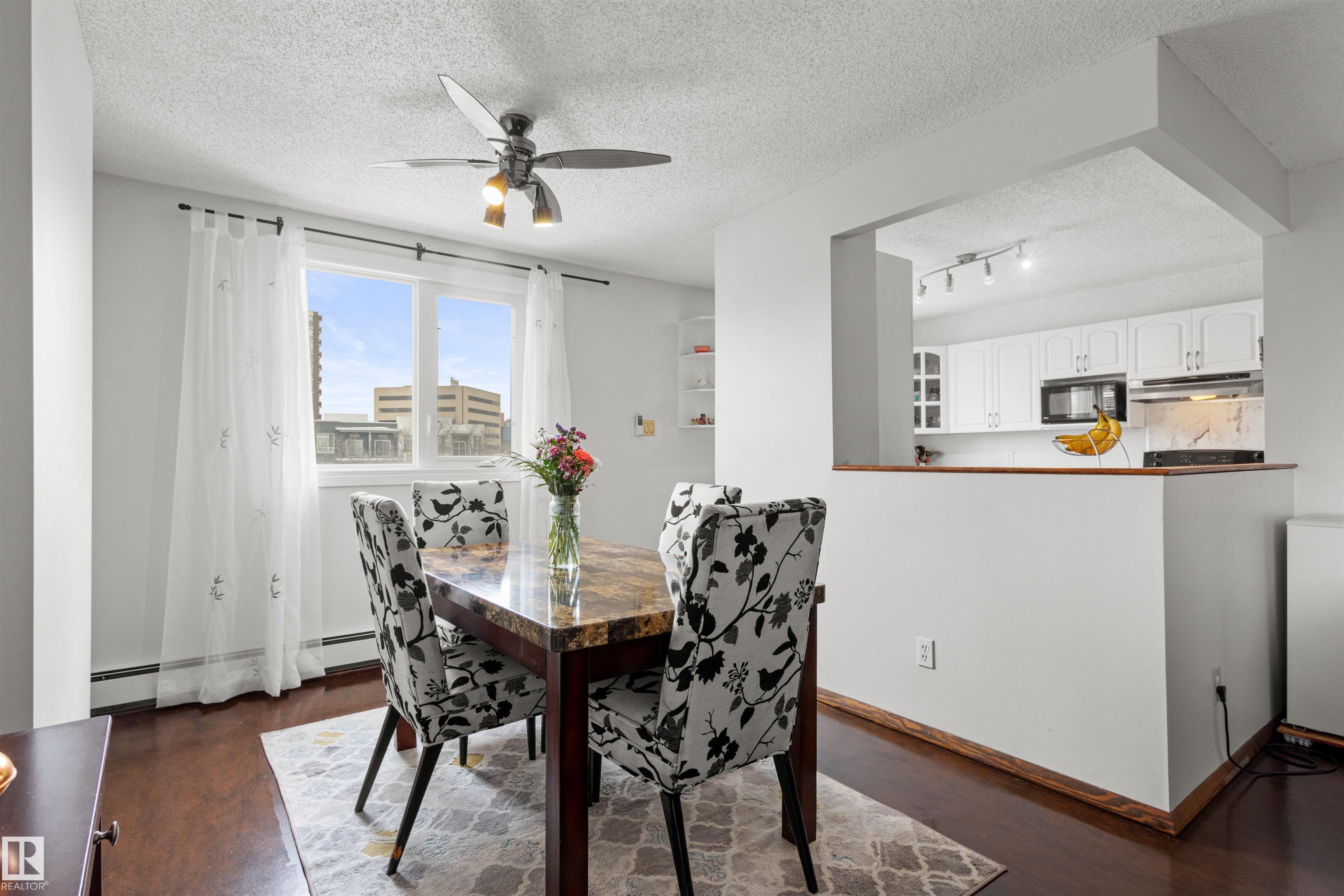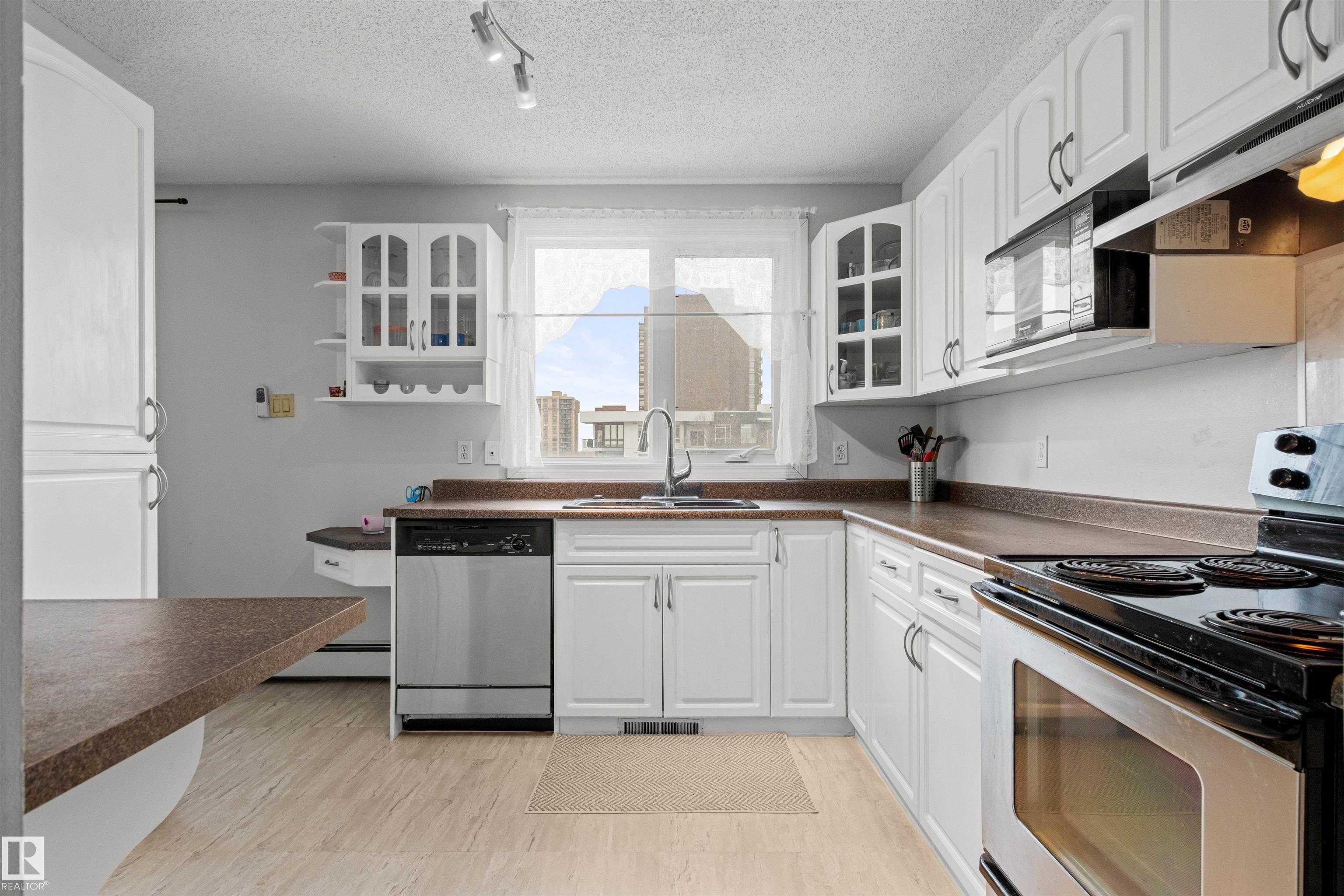 In the heart of Downtown, step into modern city living with this 2 bed-2 full bath condo with over 1057 Sq Ft of comfortable living space. 2 UNDERGROUND PARKING Tandem Stalls with personal Bike Rack! Bright Corner Unit! Most desirable floorplan in the complex. The spacious kitchen, with its Large Breakfast Island will bring out your inner chef, with plenty of cupboard and counter space to create to your hearts content. Step out onto the west facing balcony where you'll be greeted by the treelined view! Perfect venue to sip your morning coffee or enjoy the Beautiful sunsets with a glass of wine. Spacious Primary Bedroom with 4 piece ensuite and walk thru closet! This home features In-suite Laundry room with plenty of extra storage space! The building amenities include a Social Room with pool table, exercise room with sauna. Situated just steps from the beautiful River Valley, LRT, walking trails, Roger's Place and the Ice district, cafes, groceries, shops, U of A and MacEwan University, and So Much More!