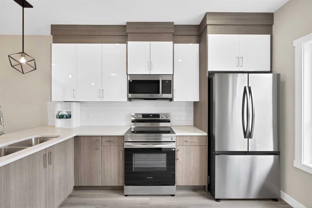 ?Welcome to this elegantly designed three-storey townhouse that blends modern style with functional living. This thoughtfully planned home offers three spacious bedrooms, each with its own private ensuite—making it ideal for families or multi-generational living. The entry level features a welcoming foyer and a versatile bedroom that can serve as a comfortable guest suite or a convenient home office. The main floor is bright and inviting, filled with natural light streaming through large windows that enhance the open-concept layout. The contemporary kitchen is equipped with stainless steel appliances, sleek lighting, and a practical breakfast bar, perfect for casual dining or entertaining guests. A cozy balcony extends the living space outdoors, while a conveniently located powder room adds to the home’s comfort and functionality. Upstairs, two generous primary bedrooms each offer private ensuites, with one suite featuring a spacious walk-in closet and a dual vanity that elevates the sense of luxury. A stacked laundry closet on this level adds everyday convenience. Additional highlights include a single attached garage, low condo fees, future nearby green space, and ample visitor parking. With easy access to Stoney Trail and nearby amenities, this home combines modern comfort, versatile design, and a highly desirable location—ready for you to move in and enjoy.