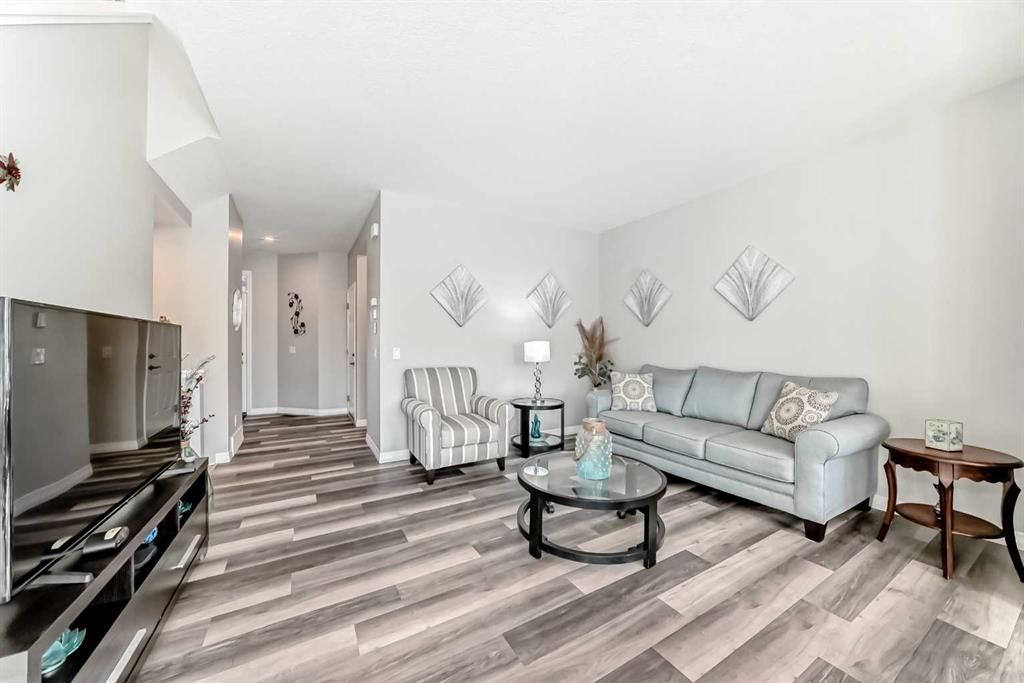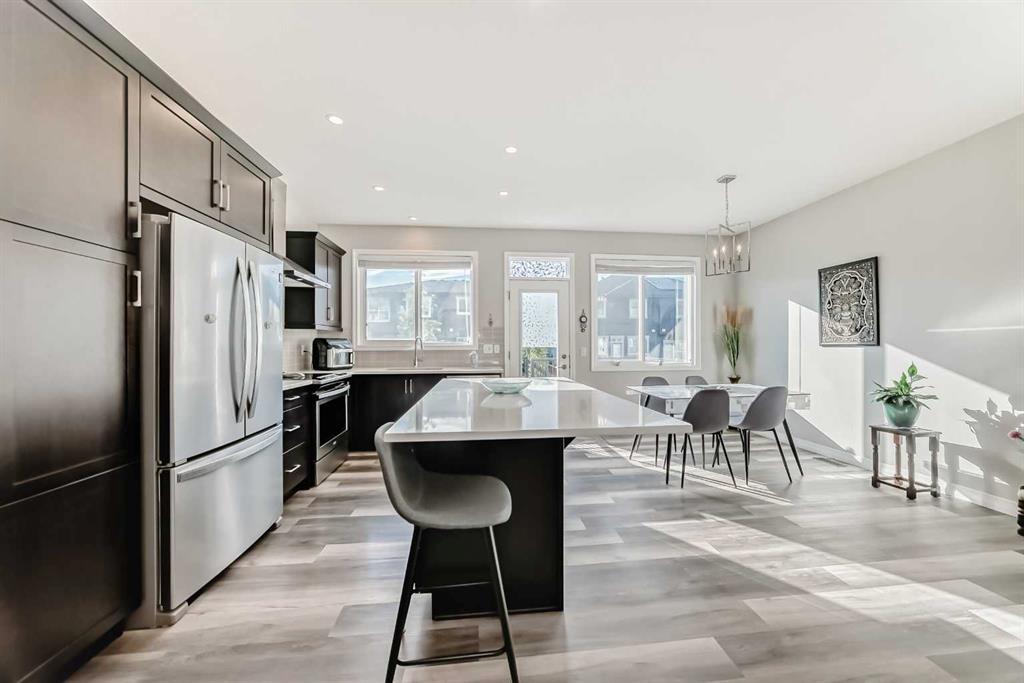 OPEN HOUSE SATURDAY OCT 4, 2-4pm. Beautifully maintained semi-detached home in the desirable community of Kings Heights, offering the perfect blend of style, comfort and convenience. Featuring an OPEN-CONCEPT MAIN FLOOR with a bright living room, spacious dining area, and stylish kitchen complete with quartz countertops, breakfast bar, espresso cabinetry and laminate flooring throughout. The dining area opens onto a LARGE WEST-FACING DECK, perfect for summer barbeques and evening sunsets. Upstairs you’ll find 3 generously sized bedrooms, including a private primary retreat with a 3-piece ensuite. A versatile bonus room adds space for movie nights or a home office, while the UPPER-LEVEL LAUNDRY and additional 4-piece bathroom make everyday living a breeze. The undeveloped basement awaits your personal touch. The backyard is your own private oasis. Enjoy a FULLY-FENCED, LANDSCAPED, LOW MAINTENANCE BACKYARD surrounded by trees. Additional features of the home include CUSTOM BLINDS THROUGHOUT, SOLAR PANELS, WATER SOFTENER, lots of windows and a SINGLE-ATTACHED GARAGE. King’s Heights is a vibrant, family-oriented neighborhood offering endless conveniences. The community offers pathways, playgrounds, dog parks and tranquil ponds. The recently completed 40 Avenue overpass provides direct access to Deerfoot Trail, making commuting easier than ever. Amenities like shopping, dining, schools and services in Airdrie as well as Cross Iron Mills & Costco are in close proximity. Don’t miss this opportunity to get into a move-in ready home. Book your viewing appointment today!
