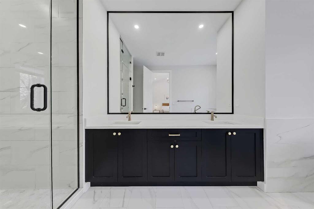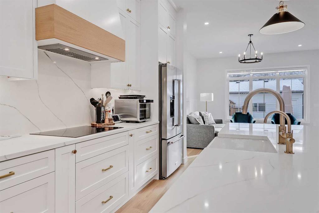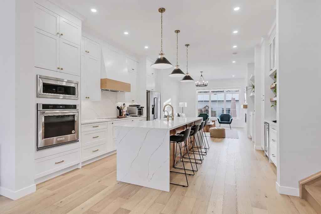 Set on a quiet, tree-lined street in Windsor Park, this semi-detached home delivers a refined blend of modern design, family-friendly function, and inner-city convenience. From the bright open-concept main floor to the spa-inspired primary suite and fully developed basement, every level has been thoughtfully designed to feel elevated yet comfortable. A chef-style kitchen with standout finishes, custom built-ins, a detached garage, and a private fenced SOUTH backyard come together to create a home that truly works for real life. The main floor is flooded with natural light and finished with wide-plank hardwood flooring throughout. The living room is anchored by custom built-ins, wainscotting, electronic blinds, and a sleek gas fireplace, creating a warm and inviting focal point. The kitchen is a true showpiece, featuring full-height white cabinetry with oak accents, quartz countertops, premium stainless steel appliances, including an INDUCTION cooktop, INSTANT HOT WATER tap, and a large island with seating. A statement apron-front farmhouse sink adds both character and function, while open shelving and thoughtful storage keep the space feeling clean and intentional. The open dining area sits beside oversized windows overlooking the front yard, making the entire main floor feel bright, connected, and ideal for entertaining. Upstairs, the primary bedroom offers a calm, private retreat with large windows, custom closet storage, and a luxurious ensuite. The ensuite is beautifully appointed with dual vanities, a freestanding soaker tub, and a glass-enclosed STEAM shower finished with timeless tile. Two additional bedrooms are bright & perfectly suited for kids with custom wall details & quick access to the modern 4-pc main bath. A spacious bonus room offers ample space to spread out and the laundry room completes this space. The fully developed basement adds exceptional flexibility with a spacious family room, built-in media wall & wet bar, creating an ideal space for movie nights or casual entertaining. A dedicated home GYM space and a fully equipped private OFFICE w/ built-in desk & storage are perfect for any family, while the additional bedroom and full bathroom make the lower level comfortable and functional. Outside, the fenced SOUTH backyard offers a low-maintenance outdoor space with a concrete patio and direct access to the detached garage. Windsor Park is one of Calgary’s most established inner-city communities, known for its mature tree canopy, wide streets, and strong sense of neighbourhood. You’re minutes from Britannia Plaza, Chinook Centre, Glenmore Trail, and Elbow Drive, making daily commuting and errands effortless. Nearby parks, playgrounds, and pathways offer easy access to green space, while respected schools, transit options, and quick connections to downtown add everyday convenience. It’s a location that blends quiet residential living with exceptional access to the city. Polished inner-city living in a location that continues to deliver.