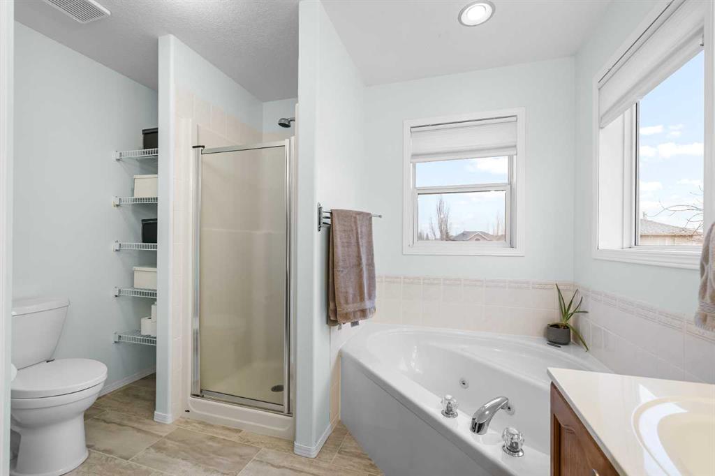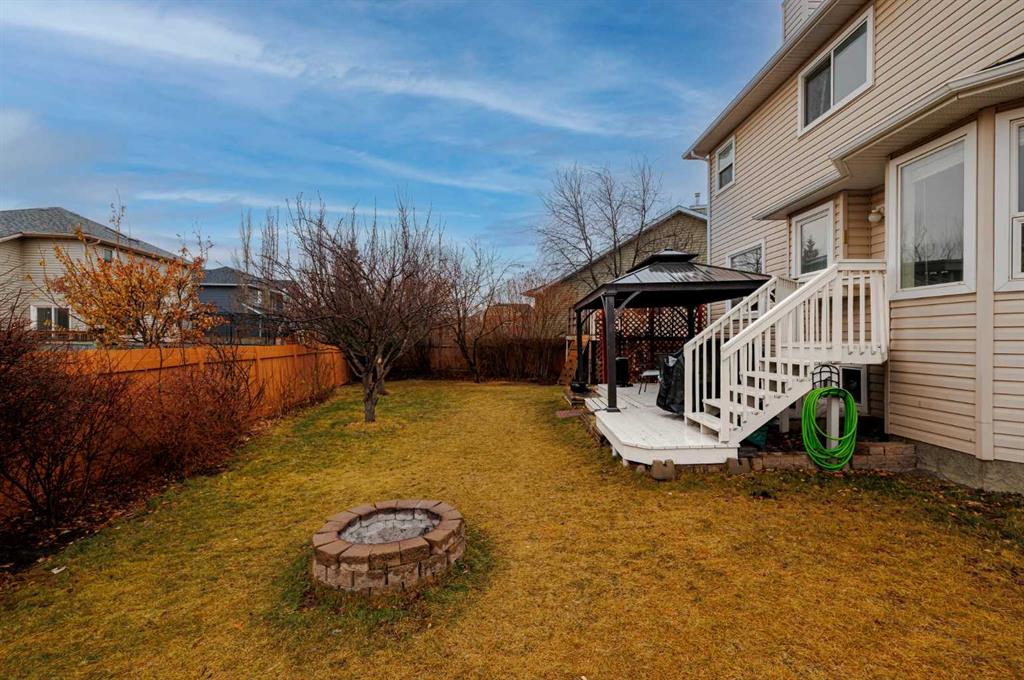 This spacious family home in the popular community of the Canals offers a wonderful layout, thoughtful updates and a generous backyard - all within walking distance of neighbourhood schools. Fully developed, with 5 bedrooms, 3.5 bathrooms and ample living space spread across three levels. The main floor has a welcoming front entry that leads to a private office framed by a large window overlooking the front yard. A formal dining room sits nearby and can be used to suit a variety of needs, whether hosting gatherings, or for day-to-day activities. The centrally located kitchen features abundant counter and cabinet space, island and corner pantry. The kitchen flows easily into the bright dining nook overlooking the backyard. From here, the space opens into the great room, where a stunning gas fireplace creates a warm focal point. Upstairs, the primary suite offers a comfortable retreat with a five-piece ensuite that includes a dual-sink vanity and a relaxing soaker tub, as well as a walk-in closet. Directly beside the primary bedroom is a den suited for reading, work, or quiet reflection. Three additional bedrooms and a four-piece bathroom complete the upper level. The fully finished basement extends the home’s versatility with an open recreation area, additional bedroom, bathroom and storage room. The attached double garage leads into a mudroom with closet and laundry area. Outside, the home sits on a large, pie-shaped private lot enriched with many mature trees, established garden spaces, and a charming tree house for children to enjoy! An impressive deck complete with a gazebo provides a sheltered outdoor spot for relaxing or entertaining through the seasons. Recent improvements include central A/C, fresh paint and new flooring, bringing a clean and updated feel throughout the home. The Canals community in Airdrie is known for its convenient pathways, numerous amenities and quick access to schools - making it a sought-after area for families. This home is perfectly located walking distance to Ralph McCall School, Our Lady of Peace School and C.W. Perry School. Take advantage of your opportunity to see this incredible property in person - book your showing today! Be sure to check out the floorplans and 3D tour for a closer look before your visit.