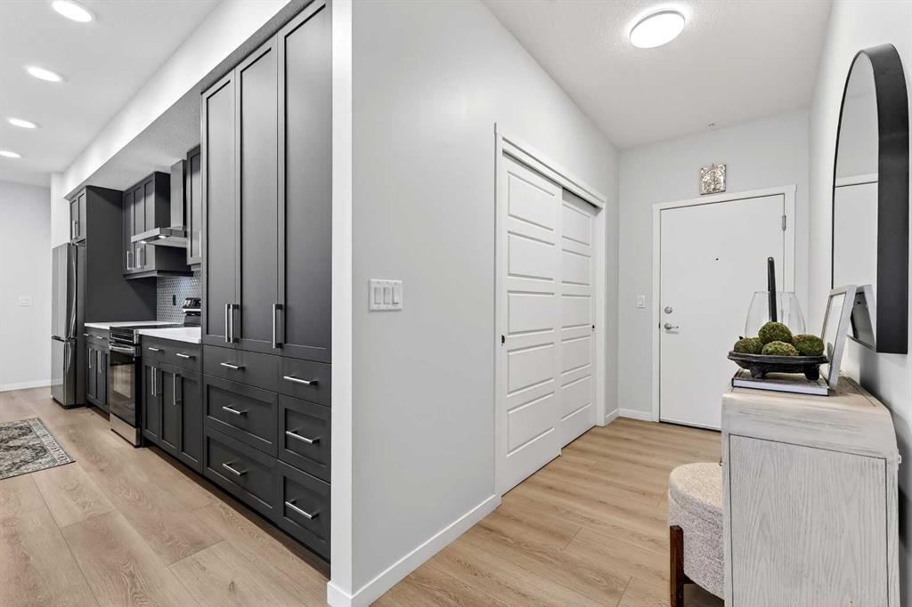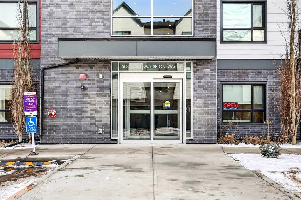 An EXCEPTIONAL OPPORTUNITY to own a LIKE-NEW, HIGH END, LUXURY condo for less than the cost of comparable new construction. Welcome to Seton Serenity by award-winning Cedarglen Living, where this beautifully upgraded 2 bedroom, 2 bathroom residence offers over $23,000 in thoughtful upgrades and a refined, move-in-ready lifestyle. The open-concept layout features 9' ceilings, luxury vinyl plank flooring in the main living space, triple-glazed Low-E windows, sound-reducing membrane between floors, and a striking electric fireplace anchoring the living space. The kitchen is a true highlight with an island extension, built-in pantry, upgraded appliances, quartz countertops, upgraded sink, full-height tile backsplash, soft-close cabinetry, cabinet valance lighting, and sleek roller blinds throughout. The spacious primary bedroom includes a walk-in closet and a luxurious ensuite with raised vanities, upgraded toilets, full-height tile, and an elegant LED mirror, while the well-positioned second bedroom offers added privacy near the second full bathroom. Additional features include stacked washer and dryer adding more in-suite storage, stylish barn door detail, extra fob, clear glass balcony railing, BBQ gas line, energy recovery ventilator (ERV), and titled secured underground parking. A rare and valuable bonus: approved short-term rental businesses are permitted under current bylaws, making this an excellent opportunity for homeowners and investors seeking a luxury rental near South Health Campus, one of Calgary's largest employment hubs. Enjoy unbeatable walkability to the world's largest YMCA, South Health Campus, shops, restaurants, cafés, and Seton HOA amenities. Pet and rental friendly, this extensively upgraded condo delivers the luxury of new construction without the wait, uncertainty, or added cost.
