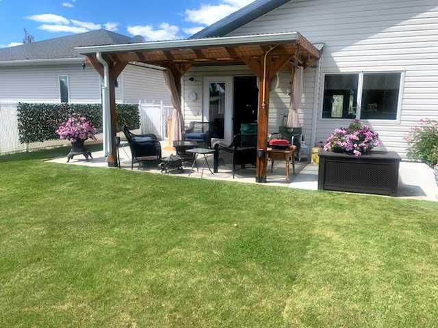 If your looking for one floor living, with no steps, this is it, Open concept living , dining and kitchen with cathedral ceiling in the main part of the home. The newer gas fire place with stone facing makes for a very cozy environment on those cold winter days, spacious kitchen with large island and pantry and newer solid surface counters makes clean up a breeze. The large master suite includes a nice size walk in closet and a large 3 piece bath. Just down the hall is another bedroom and another 3 piece bath, 1 bath has a shower and the other has a tub. to round out this great 1 level living there is a den and a 1.5 car garage. Outside the upgrades continue with a new roof (1 year old), new concrete side walks all the way around to the beautiful sun soaked back yard patio with a covered pergola. The back yard is totally fenced to keep your pets safe and backs onto walking trails and green space, also includes a storage shed . This property is nicely landscaped and very well taken care of, double wide concrete driveway, yearly services done on mechanical, water heater is 8 years old, short possession is possible, so come have a look, you wont be disappointed in this lovely home.