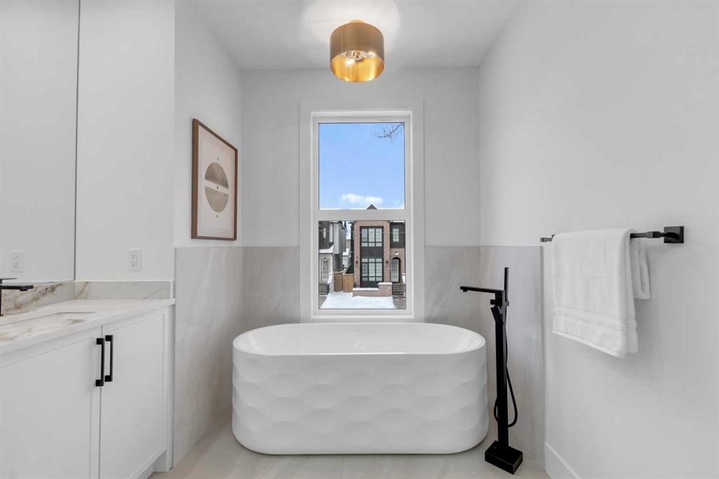This MOVE-IN READY semi-detached home in MOUNT PLEASANT delivers that rare mix of thoughtful design, modern luxury, and everyday comfort. Wide-plank hardwood, custom built-ins, and oversized windows set the tone, and the open flow through the main floor makes the home feel both expansive and incredibly functional. You enter through a spacious foyer with a full front closet and sightlines straight through to the living room. An OFFICE sits just off the entry, tucked away enough for privacy while still connected to the main level. The living room sits at the front with a gorgeous feature fireplace and built-in shelving that brings a clean, designer feel to the space. Large windows open to mature street trees, giving the room a soft, natural backdrop. The dining area sits comfortably between the living room and kitchen, sized for hosting without feeling overly formal, with an incredible custom built-in full wall serving space with decorative storage and stunning inset lighting. The kitchen is where everything really comes together. Full-height custom cabinetry, quartz counters, designer lighting, and a HIGH-END APPLIANCE PACKAGE & POT FILLER make the room feel elevated yet approachable. A massive island with seating keeps the space social, and sliding glass doors to the SOUTH back patio fill the space with natural light and make indoor & outdoor entertaining a breeze! Just off the kitchen, the MUDROOM includes custom storage and easy access to the backyard and garage, keeping daily life organized. A stylish 2-piece bath completes the main floor. Upstairs, the PRIMARY SUITE feels like a true retreat, bright and spacious with room for a full furniture layout, while the walk-in closet is neatly designed for maximum usability. The ensuite delivers a spa-like feel with a large designer soaker tub, dual sinks, and an oversized walk-in shower. Two additional bedrooms sit across the hall, each with great closet space and large windows. The main 5-piece bathroom features dual sinks and modern finishes, making it ideal for a busy household. A full laundry room on this level adds convenience and extra storage. The lower level offers even more flexibility with an EXTENDED BASEMENT LEGAL SUITE w/ 3-BED, 2-BATH. With a full KITCHEN, large rec room, 3 bedrooms, 2 bathrooms, laundry & plenty of storage, this level opens the door to multigenerational living, long-term guests, or additional rental income. The layout is practical, the rooms are well-sized, and the finishes are clean & modern. And the location ties it all together. You’re in the heart of a walkable, established community surrounded by tree-lined streets. Confederation Park, Kensington, and the downtown core are all within easy reach. Quick access to 14th Street, Crowchild Trail & major transit routes makes commuting simple, while nearby cafes, local restaurants, playgrounds, and green spaces create that everyday convenience everyone’s looking for. *photos from show suite some finishes may vary
