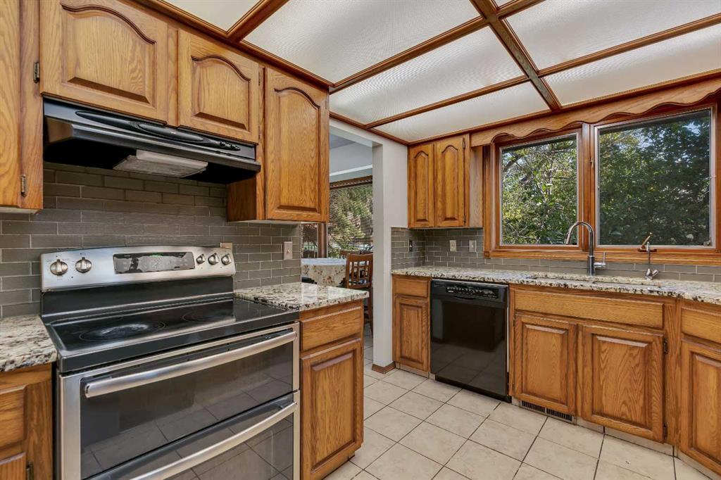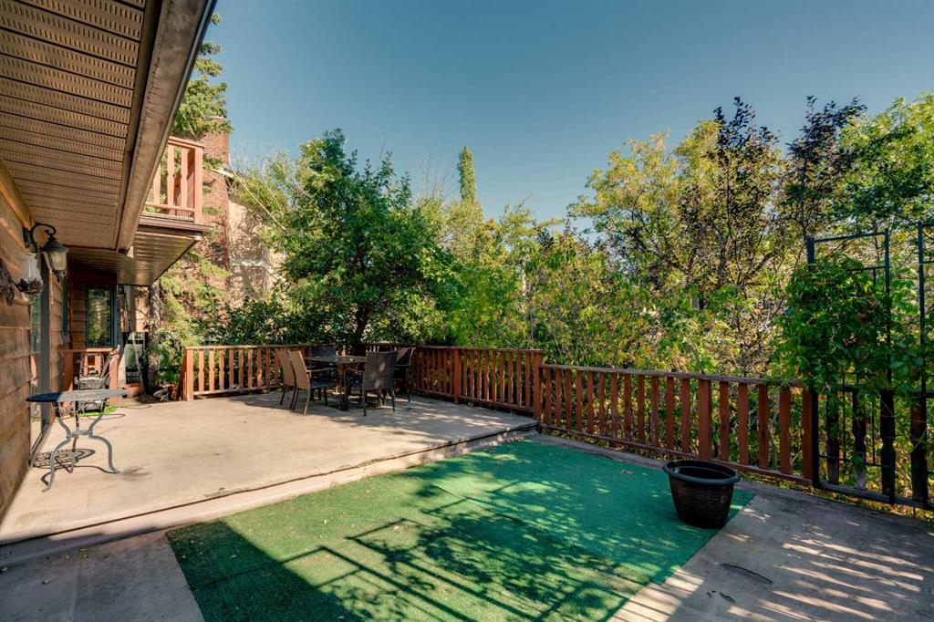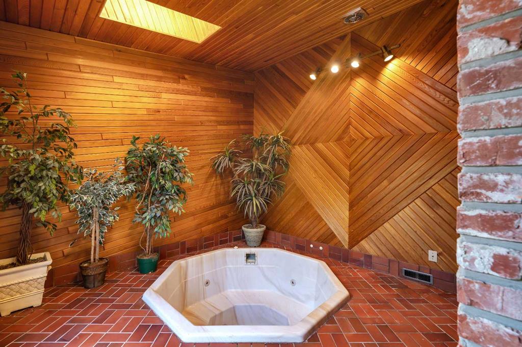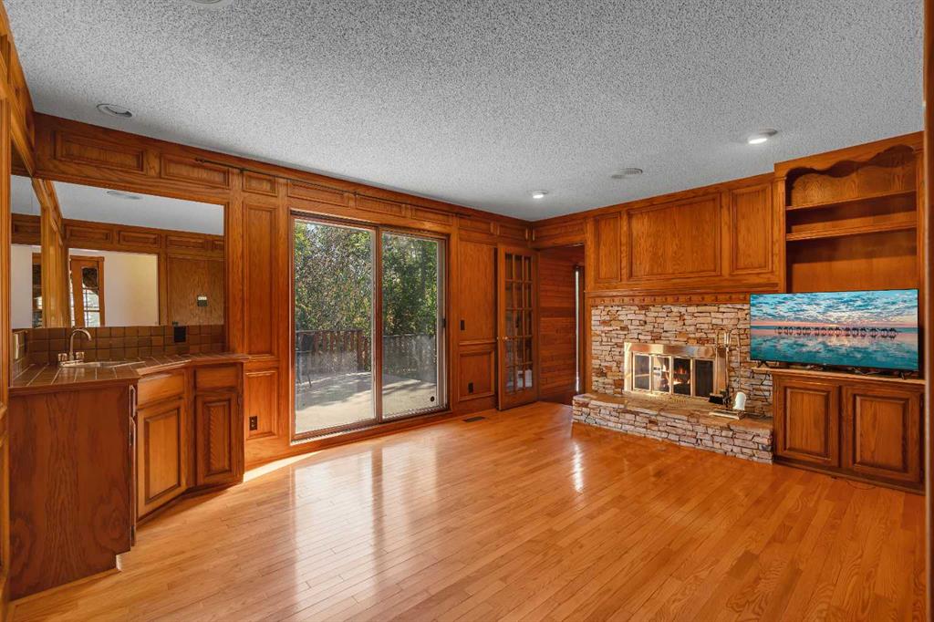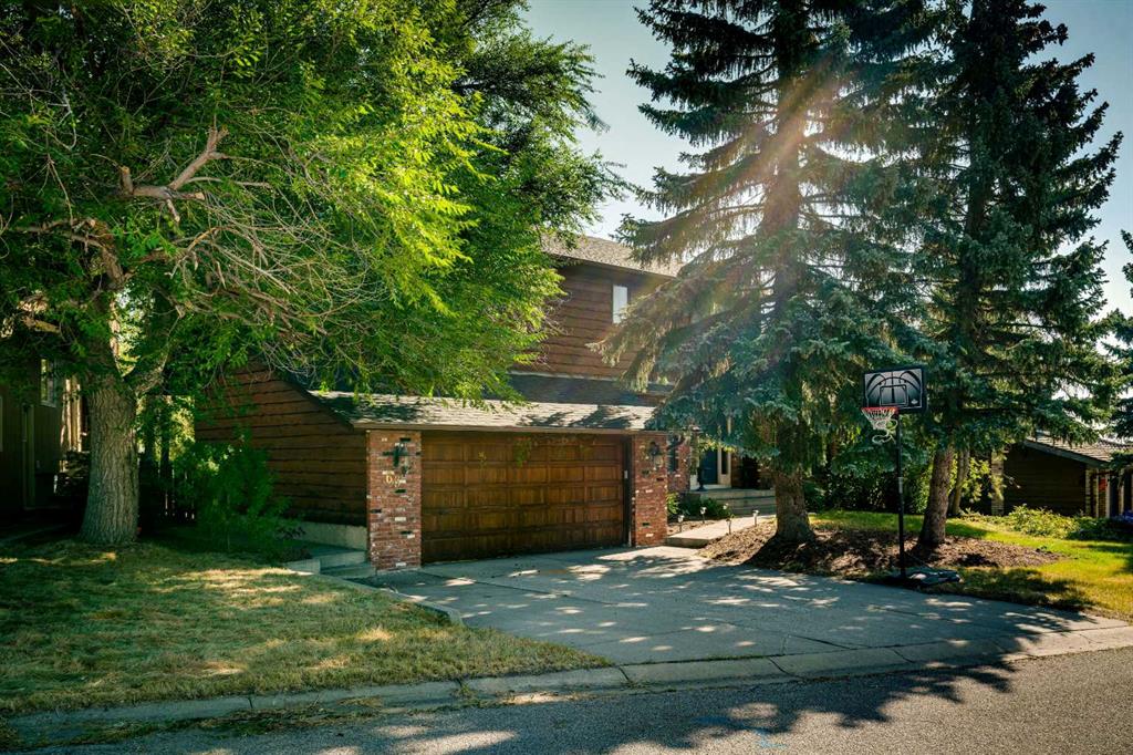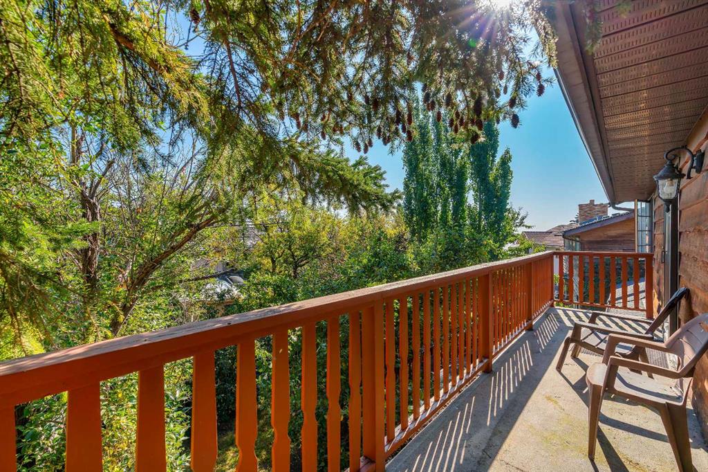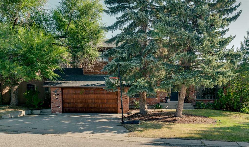 WELCOME TO 63 EDGEHILL CRESCENT NW | ESTATE HOME ON AN EXPANSIVE, PRIVATE LOT | An exceptional opportunity awaits to own a truly unique and charming estate home at the very top of prestigious Edgehill Estates II. Set on an impressively wide front lot on an extremely quiet street with no sidewalk to shovel, this property combines timeless character, rare privacy, and abundant space inside and out. Surrounded by mature trees, including evergreens that lend a cottage-like wooded feel, every window frames greenery while also providing shade and comfort in summer. With over 3600 sq ft of finished living space, the home offers an expansive floor plan designed for family living and entertaining. Step into the stately foyer, with direct access to both the formal dining and living rooms, each showcasing large gridded picture windows that flood the spaces with natural light. The spacious kitchen features granite countertops, abundant cabinetry, and a large breakfast nook with a bay window overlooking the backyard. From here, the home flows naturally into the warm family room, complete with hardwood floors, custom built-ins, a stone fireplace, and wet bar. Off this space lies one of the home’s most unique highlights: a cedar-clad hot tub room with two skylights and a patio door to the deck, offering an amazing retreat. A 2-piece bath and laundry complete the main floor. Upstairs are four generous bedrooms, including a primary retreat with a large walk-in closet, granite-topped ensuite, and direct access to an extra-long balcony. With two sliding doors, this balcony spans the width of the home and provides a beautiful tree top view. A smaller wood-paneled bedroom, also opening onto the balcony, is ideal for a private home office. A second full bath with a double vanity and granite counters serves the level. The fully finished basement extends the living space with a massive recreation room, fireplace with built-in shelving, a very spacious fifth bedroom, full bath, and ample storage. In total, the home features four sliding patio doors, two on the main floor leading to the oversized back deck and two upstairs to the balcony. Creating a seamless indoor-outdoor connection. Outside, the oversized lot offers outstanding curb appeal, extensive garden beds for the avid gardener, and a private backyard oasis perfect for gatherings or quiet relaxation. Recent upgrades include a newer roof (2024) and water tank (2021). Additional highlights include expensive cedar siding that enhances the home’s unique charm, a double attached garage with multiple access points, and a setting just steps from Nose Hill Park, top-ranked schools, and all the amenities of Edgemont. This is more than a house, it is a rare chance to own a private estate home on one of the quietest streets in Edgemont. Book your showing today and experience it for yourself!