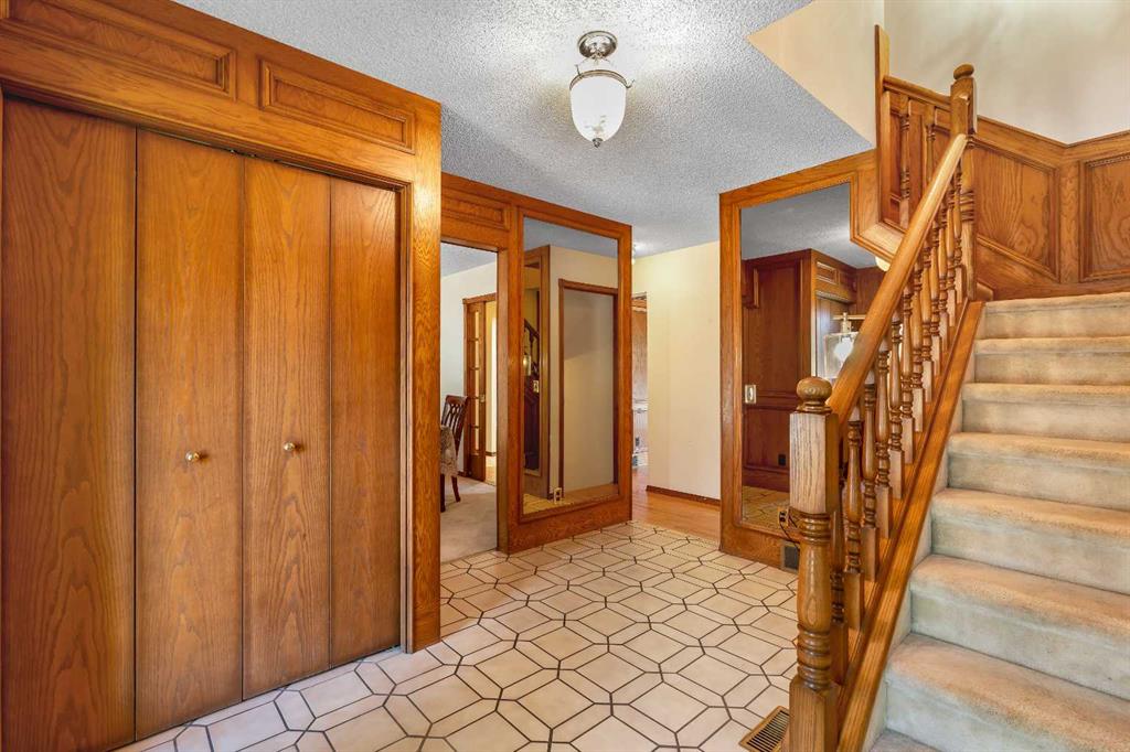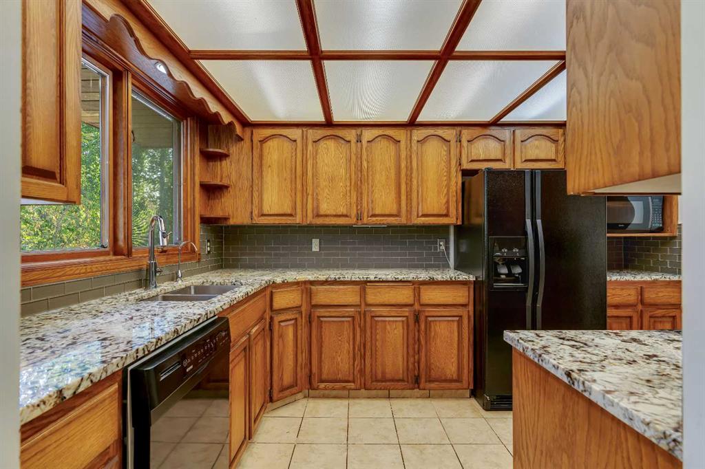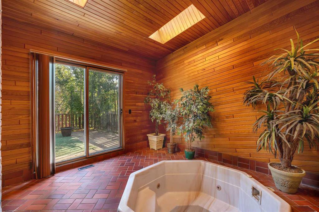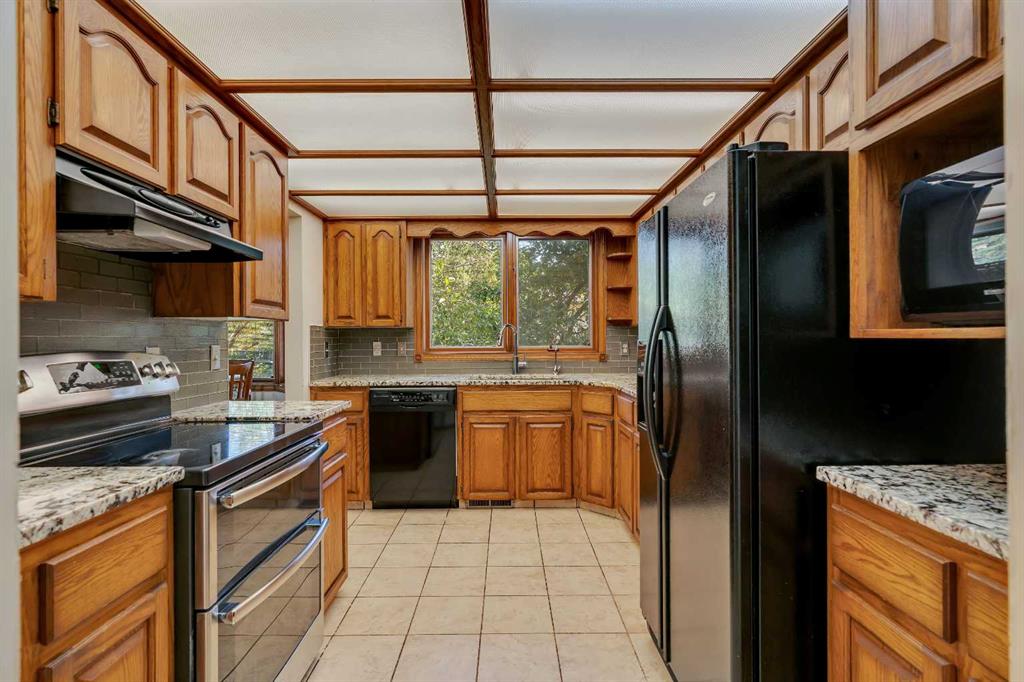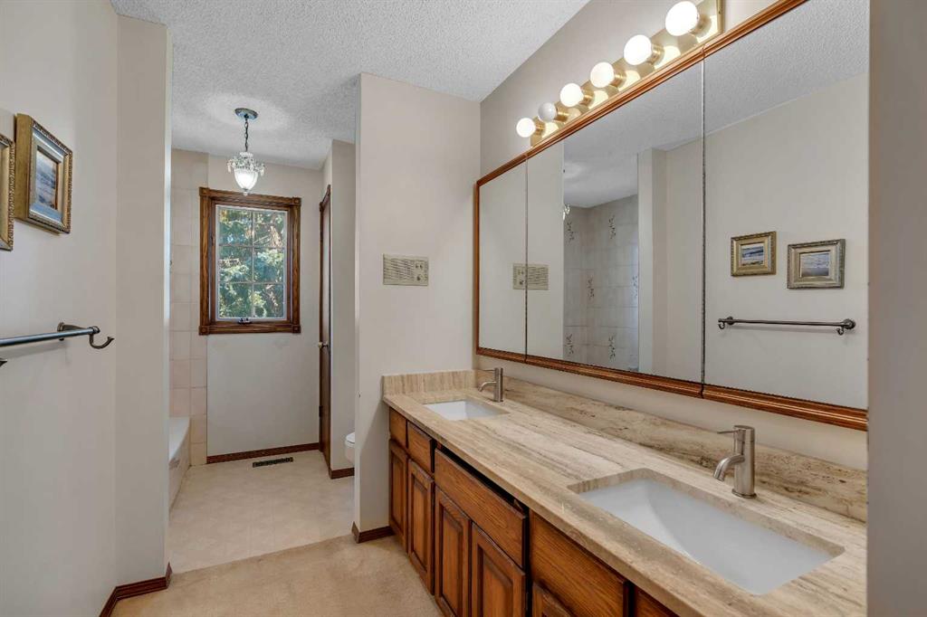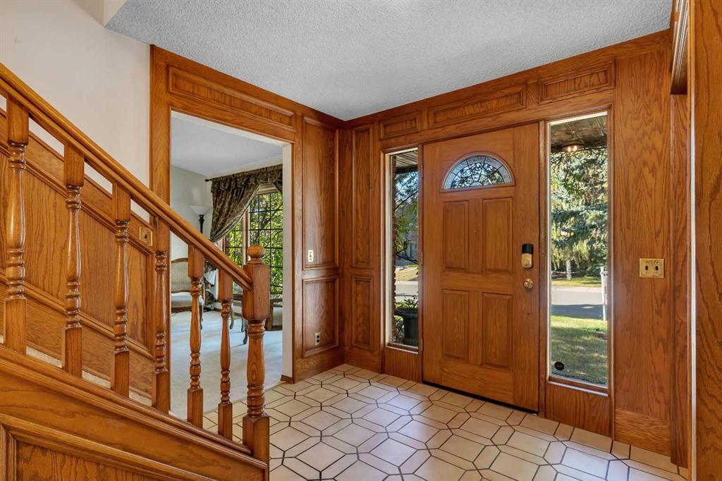 WELCOME TO 63 EDGEHILL CRESCENT NW | ESTATE HOME ON AN EXPANSIVE, PRIVATE LOT | An exceptional opportunity awaits to own a truly unique and charming estate home at the very top of prestigious Edgehill Estates II. Set on an impressively wide front lot on an extremely quiet street with no sidewalk to shovel, this property combines timeless character, rare privacy, and abundant space inside and out. Surrounded by mature trees, including evergreens that lend a cottage-like wooded feel, every window frames greenery while also providing shade and comfort in summer. With over 3600 sq ft of finished living space, the home offers an expansive floor plan designed for family living and entertaining. Step into the stately foyer, with direct access to both the formal dining and living rooms, each showcasing large gridded picture windows that flood the spaces with natural light. The spacious kitchen features granite countertops, abundant cabinetry, and a large breakfast nook with a bay window overlooking the backyard. From here, the home flows naturally into the warm family room, complete with hardwood floors, custom built-ins, a stone fireplace, and wet bar. Off this space lies one of the home’s most unique highlights: a cedar-clad hot tub room with two skylights and a patio door to the deck, offering an amazing retreat. A 2-piece bath and laundry complete the main floor. Upstairs are four generous bedrooms, including a primary retreat with a large walk-in closet, granite-topped ensuite, and direct access to an extra-long balcony. With two sliding doors, this balcony spans the width of the home and provides a beautiful tree top view. A smaller wood-paneled bedroom, also opening onto the balcony, is ideal for a private home office. A second full bath with a double vanity and granite counters serves the level. The fully finished basement extends the living space with a massive recreation room, fireplace with built-in shelving, a very spacious fifth bedroom, full bath, and ample storage. In total, the home features four sliding patio doors, two on the main floor leading to the oversized back deck and two upstairs to the balcony. Creating a seamless indoor-outdoor connection. Outside, the oversized lot offers outstanding curb appeal, extensive garden beds for the avid gardener, and a private backyard oasis perfect for gatherings or quiet relaxation. Recent upgrades include a newer roof (2024) and water tank (2021). Additional highlights include expensive cedar siding that enhances the home’s unique charm, a double attached garage with multiple access points, and a setting just steps from Nose Hill Park, top-ranked schools, and all the amenities of Edgemont. This is more than a house, it is a rare chance to own a private estate home on one of the quietest streets in Edgemont. Book your showing today and experience it for yourself!