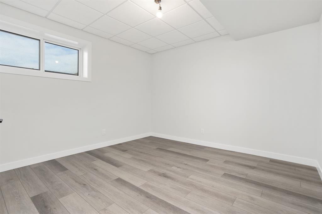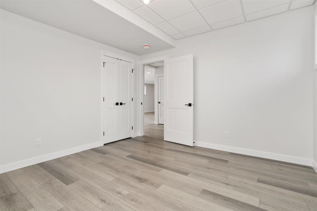 Brand New Build from Battle River Homes. Fully Finished Up and Down! Only 2 steps from the Garage to the main level! Great Bungalow layout with Oversized Rear Garage 25x24/29 with epoxy floors, a floor drain, hot/cold taps, gas rough-in, space for working area and finished to perfection. ICF Foundation, Basement In-floor Heat, Triple Pane Windows, AC, Built-in Central Vac with retractable hose. Excellent Curb Appeal with an Inviting Front Covered Veranda. Step inside and take in this new floorplan from Battle River Homes - open concept arrangement sees a front facing living room with cozy electric fireplace with wood accents and mantle, central kitchen and rear dining area that overlooks a private 10x12 no maintenance deck and yard space. 9ft ceilings on the main with 10ft coffered in the living room. Gorgeous kitchen with White Maple Cabinetry, Quartz counters with waterfall edge anchored by a richly stained 8'7 central island with eating bar. Very accommodating eating area with room for the whole family and your favorite dining set - there's also a handy pantry. Excellent Primary Bedroom suite with private 4pc ensuite, double sink with quartz counters, a fully tiled shower with bench seat and a 6x9'2 Walk-in Closet! The main floor also sees a 2nd bedroom at the front - excellent for guests or as a hobby room, an additional 4pc bath and laundry in the mudroom. Basement comes fully completed in vinyl plank and sees a huge 38ft long family room, 2 additional bedrooms and a 4pc bath. A wonderful Bungalow floorplan with minimal exterior upkeep. You'll Love It!.