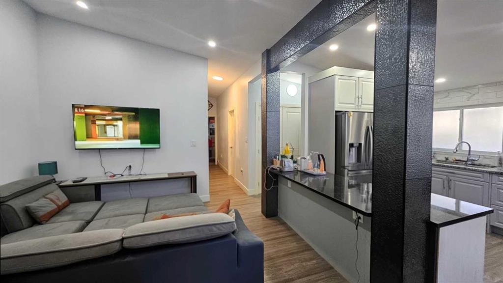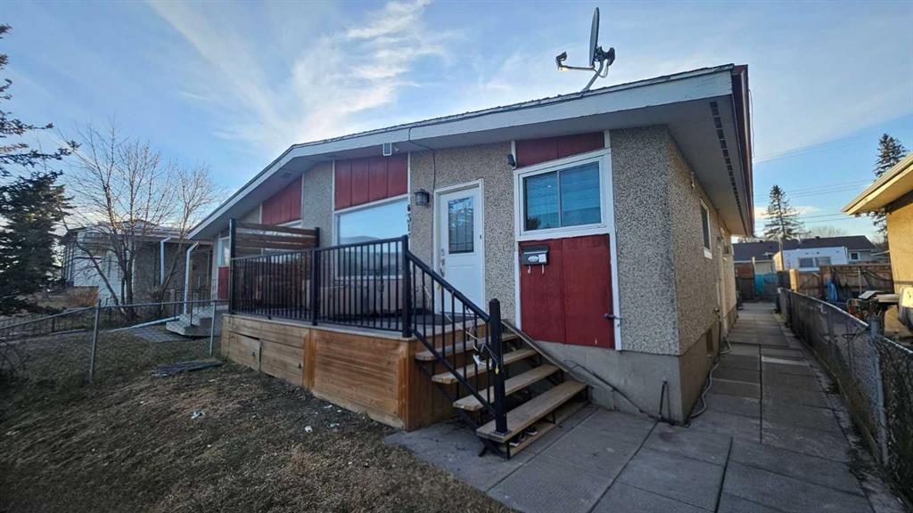Bungalow-style duplex featuring a fully renovated main floor and a separate illegal suite in the basment with its own entrance. The main level offers approximately 1,000 sq ft with 3 bedrooms, 2 full bathrooms, a bright living area, and an laundry room. The renovated kitchen showcases beautiful cabinetry and stone countertops, with a completed dishwasher rough-in for easy installation. The home also includes a front deck with railing and wide steps, adding great curb appeal and a welcoming entry. The lower level includes a illegal suite with a private entrance, 2 large bedrooms, 1 full bathroom, a kitchen with dining area, and its own laundry room. The lower unit is currently rented to a family who will be vacating by April 20, 2026. The property provides two rear parking stalls off the back lane. The location is close to the future Green Line LRT, with schools, Superstore, medical clinic, bank, library, and recreation centre all within walking distance.