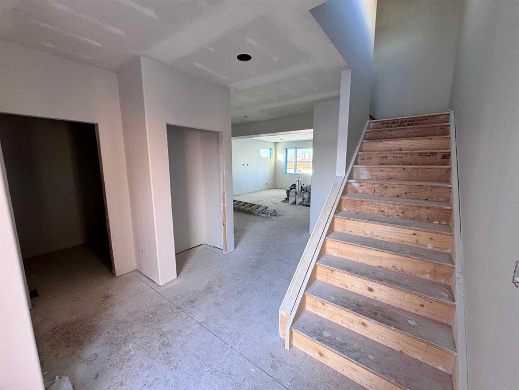 Brand New Two Storey Built by Battle River Homes! Great Location - Southside Camrose - close to walking trails and steps away from the newly opened Catholic High School. Incredible Family Floor plan featuring a bright and open main-floor plan with 9ft ceilings, vinyl plank flooring and tons of extra windows for all your natural light. You'll love the traditional front living room, great dining area with room to expand plus an incredible kitchen that sees quartz counters, large central island with eating bar, white cabinetry and a full 5'6x5'6 walk-in pantry. Balancing out the main level is a rear entry with 2pc and access out to 12'6x13 no maintenance deck and back yard. Upper level has 3 great sized bedrooms with the 2 spare rooms giving plenty of space for bedroom sets and a nook for desk/dresser option. The Primary Bedroom is a stunner with extra windows, a 7'2x7'2 walk-in closet and a private 4pc ensuite with dual sinks and full shower with tile and bench seating. A full 4pc bath plus a dedicated laundry room round out the upper level - a fantastic perk of this home. ICF Basement - unfinished - lays out well for additional bedroom, living area, future bathroom and storage. Paved Back Lane gives access to the Attached 25x27 Rear Garage - Fully Finished with high ceilings, epoxy floors, extra windows, view to the front street and a floor drain. Another Quality Built Home from Battle River Homes! *Under Construction - Projected end of January Completion*