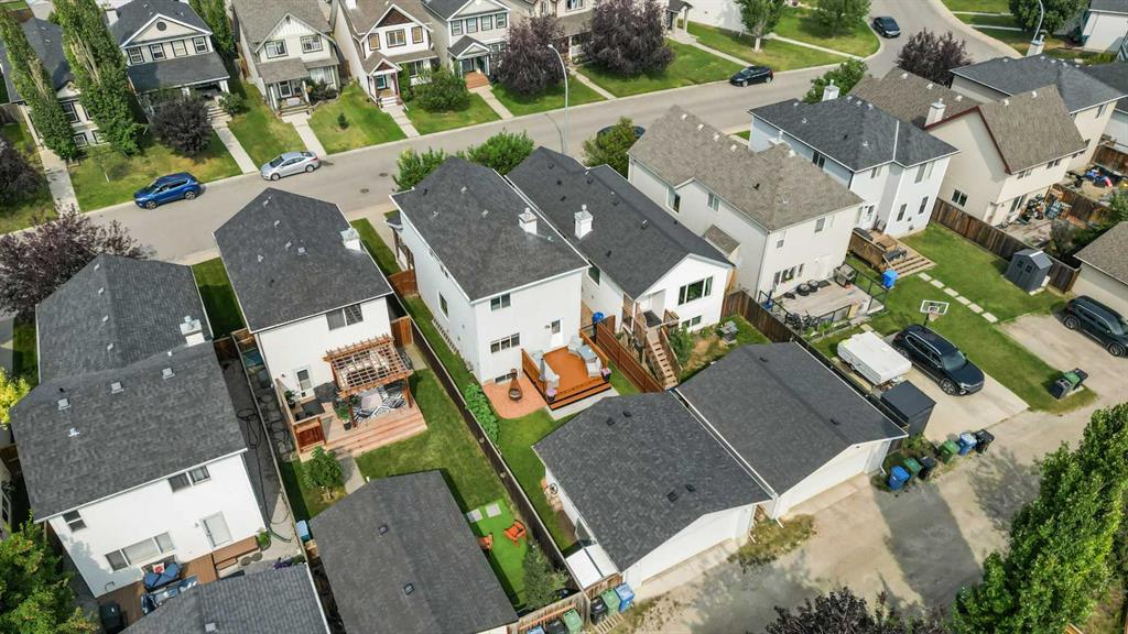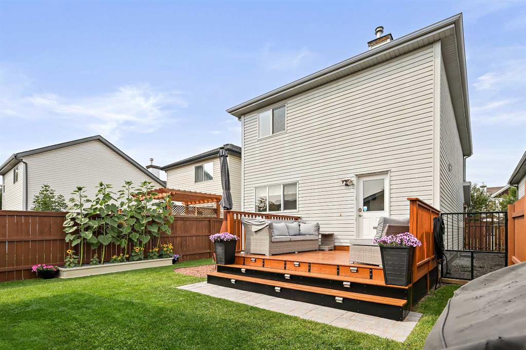 **BRAND NEW ROOF!**Fall in love with this immaculately maintained 2-storey home located in the mature, family-friendly community of Copperfield. Perfectly positioned on a quiet street and within walking distance to two beautiful parks and nearby McIvor amenities, this home delivers charm, function, and a true sense of community. Boasting 3 bedrooms, 2.5 bathrooms, and an oversized double detached garage, this home offers almost 1,500 sq. ft. of thoughtfully designed living space—plus a backyard oasis you’ll never want to leave. Step inside and immediately notice the care and attention these home owners have poured into every detail. The entire interior has been freshly repainted, including doors, baseboards, and trim, giving the home a bright, crisp feel. The spacious living room features a beautifully re-tiled and painted fireplace, stylish floating shelves, and a wall-mounted TV bracket ready for movie nights. The renovated kitchen is a showstopper, featuring a brand-new tile backsplash, all new stainless steel appliances (oven, fridge with waterline, microwave with built-in hood fan, and dishwasher), and sleek stainless base trim. A cozy dining space with huge over sized feature window inviting an abundance of natural daylight in, making this home perfect for family dinners and entertaining. Upstairs, the primary suite is a true retreat with dual walk-in closets, a four-piece ensuite with a soaker tub and handheld sprayer, and even a TV wall mount. Two additional bedrooms and a second full bathroom complete this level. The backyard is a dream—a large brand-new deck with railings, fresh sod, custom stonework, two umbrella mounts, a matching metal shed with landing, a new metal gate, and a custom fire pit create the perfect outdoor entertaining space. The garage has a brand-new roof and plenty of room for vehicles, storage, and projects. Additional features include: Front veranda for morning coffee, new smoke detectors throughout, new Telus security system and in-ground sprinkler system for easy lawn care. This home is truly move-in ready, packed with upgrades, and overflowing with character. Don’t miss the chance to call this beautiful Copperfield home yours!