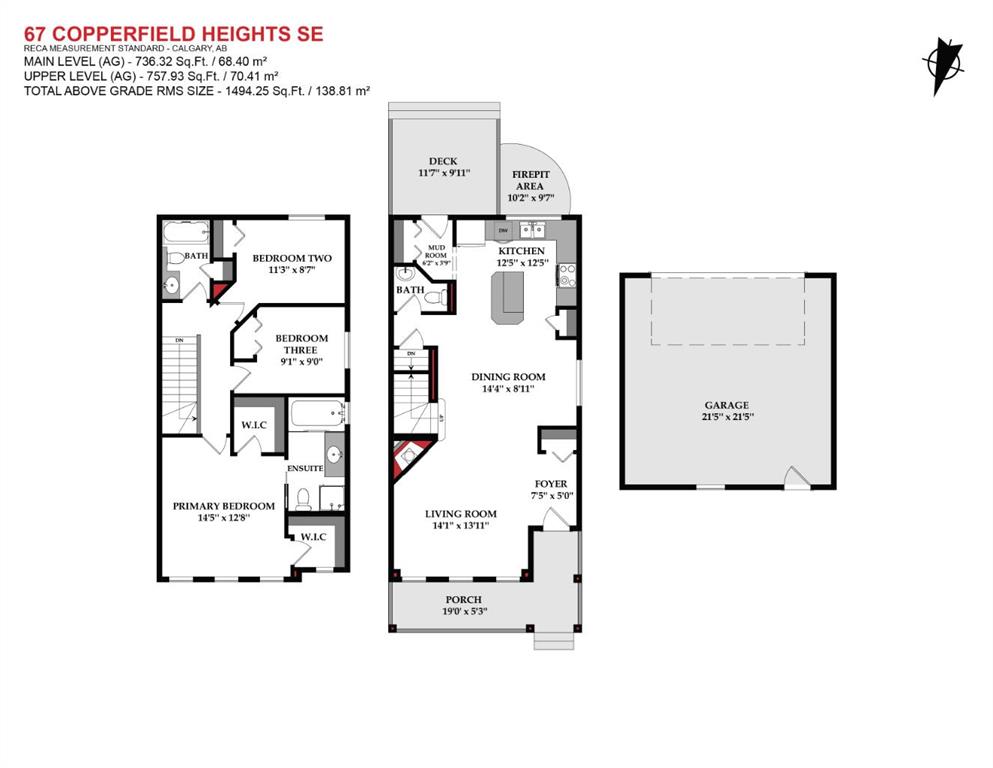 | Bedroom - Primary | 14`5" x 12`8" | Upper |