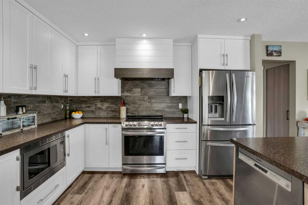 Open House: Saturday 12-2 PM & Sunday 1-3 PM Homes along the creek are a rare find, and today is your lucky day! You won't want to miss this bungalow situated on a spacious corner lot, just across the street from scenic walking paths along Nose Creek—from the house, you’ll enjoy stunning views of the creek! As you step inside, prepare to be impressed. The first feature that stands out is the AMAZING kitchen, boasting an oversized island with an eating area. With built-in outlets right at the center, this thoughtfully designed kitchen makes cooking and baking a breeze. The open-concept living area is flooded with natural light, ensuring you’ll never lack for Vitamin D! Everything in this home has been updated, including: New windows, Contemporary light fixtures, Gorgeous laminate flooring throughout, a Beautiful white kitchen with stainless steel appliances, featuring a Bosch dishwasher, and Inuction stove, oversized Fridge, a bar fridge and a built in microwave! Down the hall, you’ll discover two generously sized bedrooms, alongside a primary bedroom that easily accommodates a king-sized bed. The primary suite includes a walk-in closet and a stylish barn door that leads to a beautifully renovated main floor bathroom, complete with a deep soaker tub, double vanity, and charming shiplap walls. The craftsmanship of this home must be seen in person to be truly appreciated. The basement is framed and ready for your personal touch, featuring two new windows for a future bedroom, a convenient two-piece bathroom, and a spacious rec room area with a cozy corner fireplace. Laundry is located in the basement, equipped with an oversized washer and dryer, an additional fridge, and a deep freeze—this space is full of potential for future equity! The yard is fully fenced and includes an oversized double detached garage (21x25). If that’s not enough, there’s ample space on one side currently housing a shed and a summer pool setup, which could easily accommodate your trailer. The other side of the garage offers even more room for parking or storage, making it perfect for all your toys! Plus, being on a corner lot ensures plenty of street parking. The cherry on top is the side yard overlooking the creek, featuring a two-tier patio—with a hot tub and gazebo included—providing a stunning view of nature that you will truly cherish. The gemstone lighting on the house and garage adds an enchanting glow to this beautiful property. Come fall in love; I know you will!