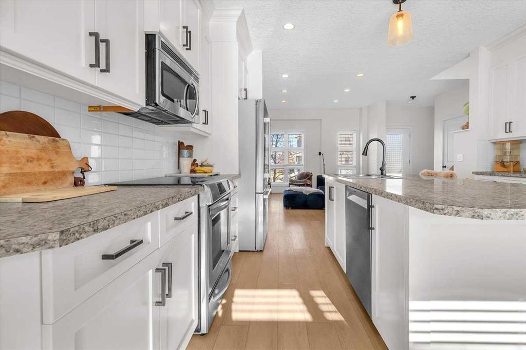 **OPEN HOUSE November 1st & 2nd from Noon-2Pm** Style, Sophistication, and Location – This Home Has It All! Welcome to this stunning two-storey in the heart of Walden, offering over 1,700 sq. ft. of beautifully developed living space. From the moment you step inside, you’ll appreciate the renovated kitchen with full-height cabinetry, newer appliances and modern finishes—a perfect blend of function and style. The main floor features 9-foot ceilings, stylish flooring, and an open-concept layout that’s bright, inviting, and ideal for entertaining. Upstairs, you’ll find comfortable bedrooms and a fresh, modern feel throughout. The fully finished basement—also with 9-foot ceilings—adds even more living space for family, hobbies, or guests. Outside, enjoy your low maintenance private backyard oasis with a massive 24x24 garage that offers incredible storage and creates a cozy, sheltered setting for summer BBQs. This home is truly move-in ready, with a newer roof, and central air conditioning. Located close to parks, pathways, schools, transit, and shopping, this home delivers on style, comfort, and convenience. Welcome home. Welcome to Walden!
