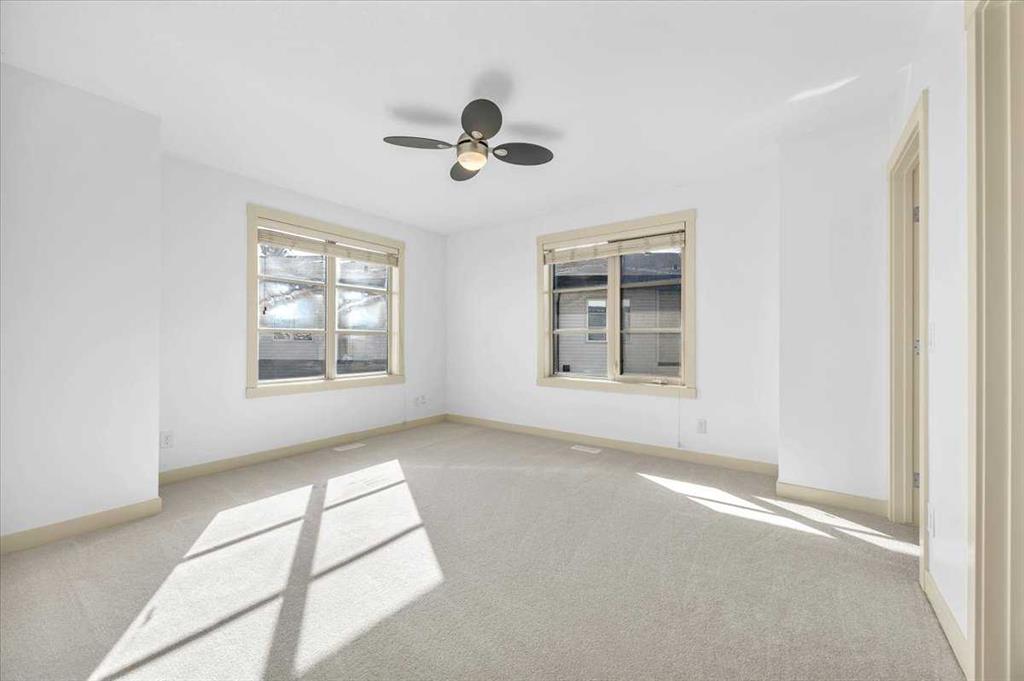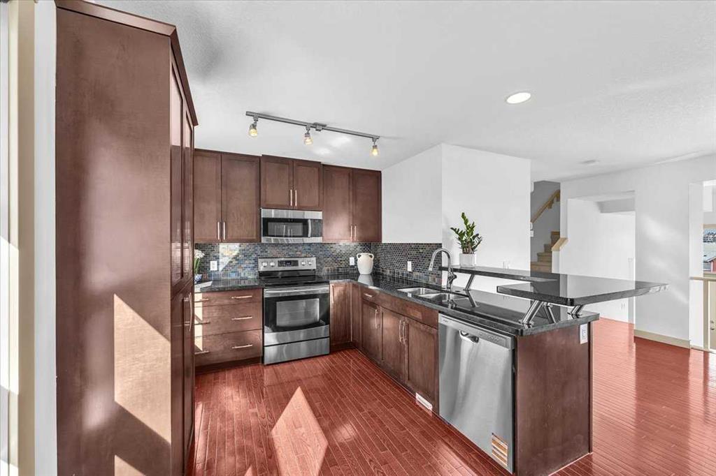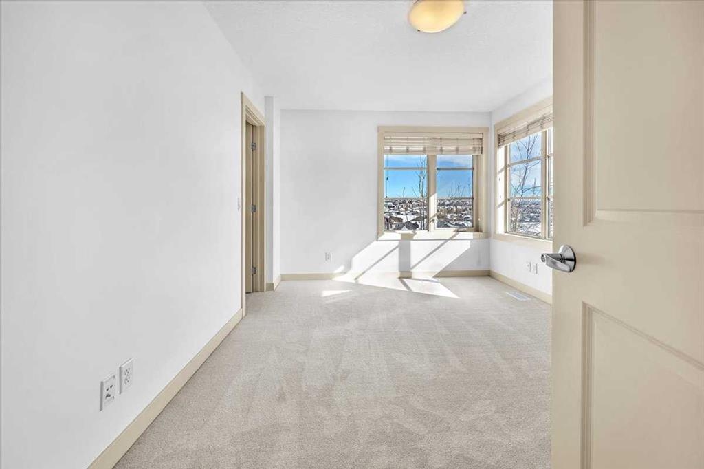 Welcome to Mosaic of Aspen Hills, an upscale townhome community nestled in the highly sought-after Aspen Woods. This bright and beautifully refreshed townhome offers an ideal layout, exceptional natural light, and an unbeatable west Calgary location. The open-concept main floor is highlighted by dramatic two-storey windows that flood the home with natural light. The spacious kitchen features granite countertops, stainless steel appliances, a pantry, ample cabinetry, desk area, and a large eat-up island perfect for casual dining or entertaining. The adjacent dining area provides flexible space for hosting or everyday living. Hardwood flooring runs throughout the main and second level, adding warmth and elegance. Upstairs you’ll find two generously sized primary suites, each complete with full ensuite bathrooms and walk-in closets—a rare and highly functional layout. The upper-level laundry and oversized landing area add everyday convenience. Additional features include an attached double garage and an unfinished basement offering excellent storage or future development potential. This home has been professionally cleaned, freshly painted, and features brand new carpet, making it completely move-in ready. Enjoy living just minutes from boutique shopping and dining at Aspen Landing Shopping Centre, recreation at Westside Recreation Centre, top-rated private and public schools, scenic pathways, playgrounds, and quick access to 17th Avenue, Stoney Trail and the CTrain. Turnkey living in one of Calgary’s most desirable west-side communities. Book your showing today!