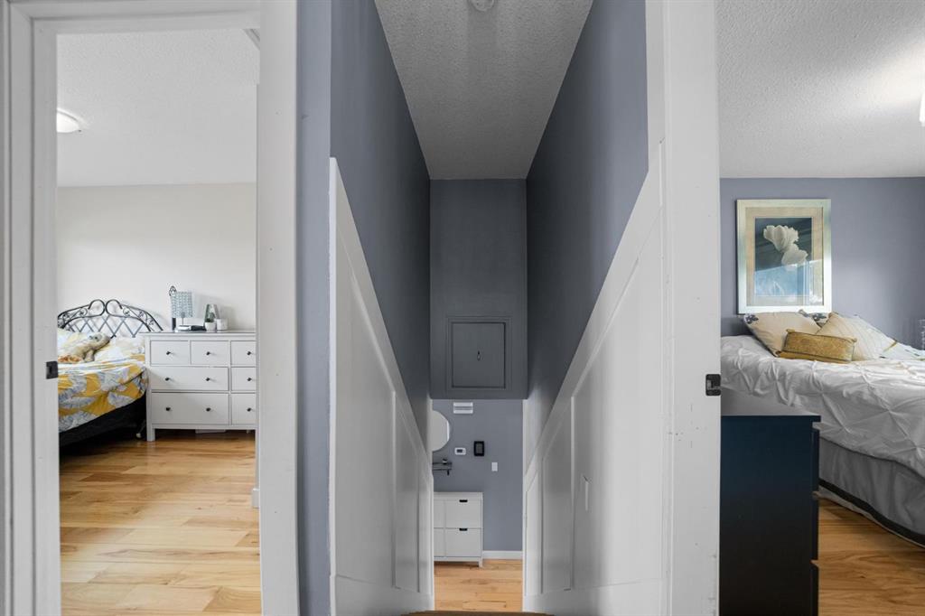 Welcome to this beautifully fully renovated 4 level split, perfectly situated in a quiet crescent in a sought- after family friendly neighbourhood. Backyard is a huge pie shaped lot with convenient back alley access with views almost directly to best playground in town. It also has back access gate for RV parking. You are greeted into this 1600+ square foot home with a front porch- perfect for morning coffee and watching kids play.This bright and inviting layout is ideal for everyday living and entertaining, highlighted by a spacious kitchen with double oven, granite counters, built- in wine rack, tons of pantry storage with roll out shelves, and 5 burner cooktop. This level also features designated dining area and large front living room all complete with beautiful hardwood floors. Upstairs you'll find 3 bedrooms and a full bathroom, with primary retreat complete with updated 3 piece ensuite and walk-in closet. Just off the kitchen, enjoy the cozy living area with a gas fireplace and a perfectly built-in desk. This level also offers direct garage access, convenient laundry, a newly finished 2 piece bathroom, and an additional bedroom. The fully developed lower level adds even more living space, featuring another bedroom, a full bathroom, and large recreation area with wood burning fireplace (with gas already hooked up and ready to use) This home also has abundance of storage. Outside, the fully-fenced yard provides privacy and space for kids, pets, and entertaining, all whole being conveniently located close to shopping, parks, and playgrounds. This is the perfect blend of comfort, style, and locations- ready for you to move-in and enjoy!