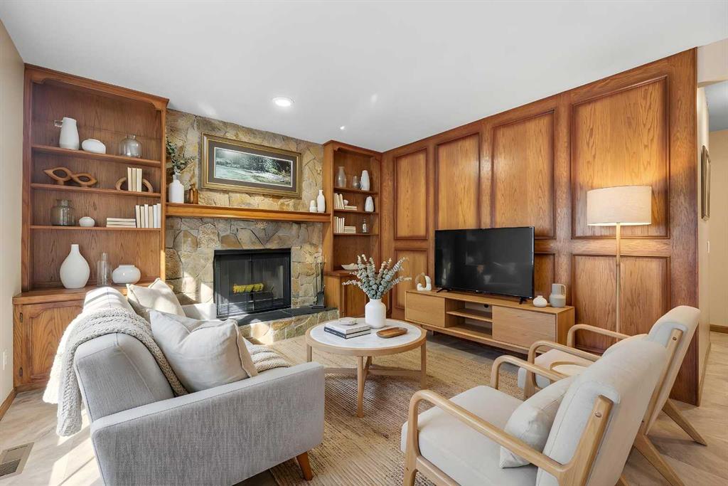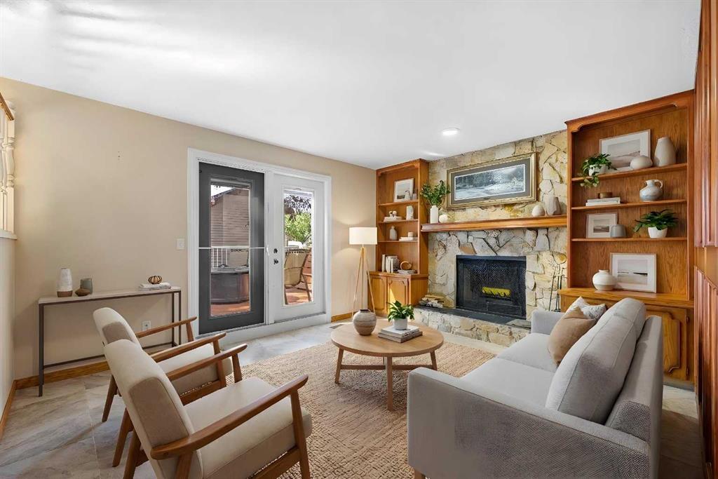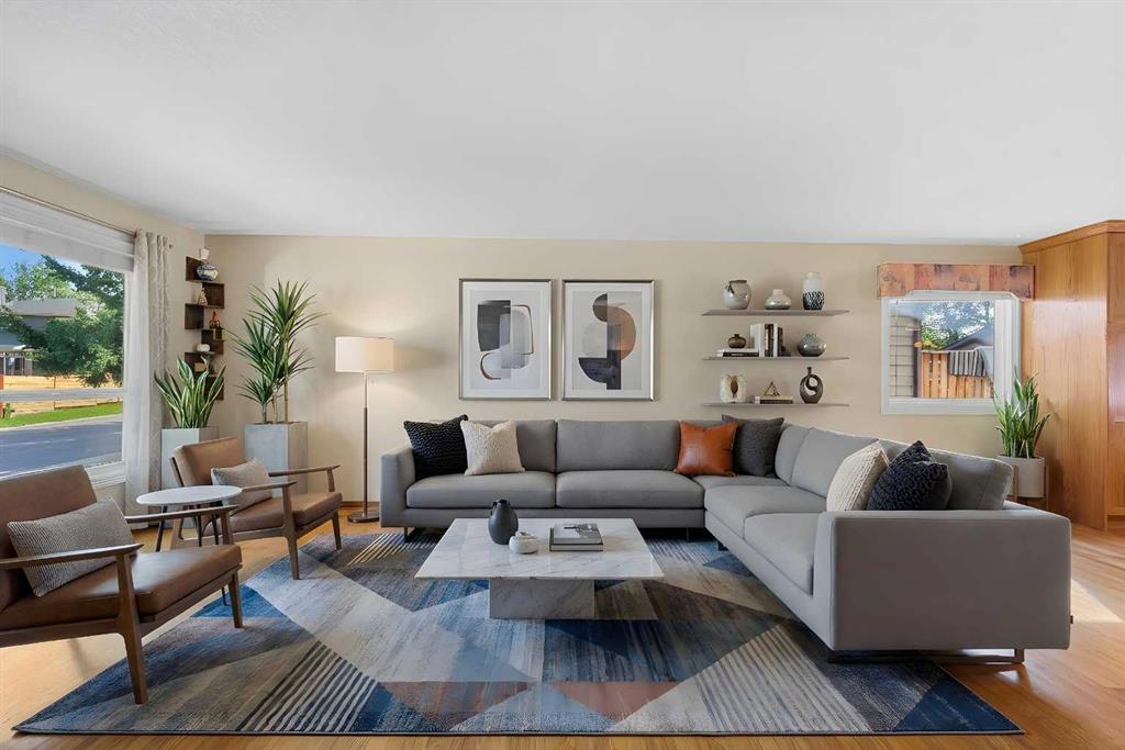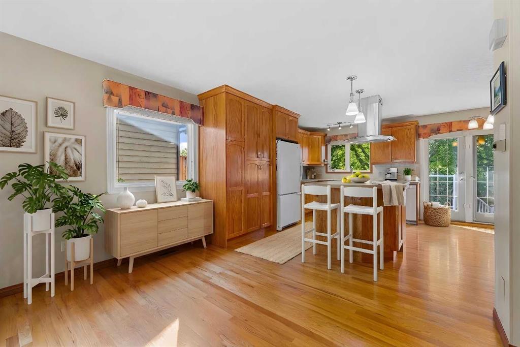 OPEN HOUSE SATURDAY March 14, 2:30 - 4:30 PM & SUNDAY MARCH 15, 2 - 4 PM. Step inside this bright and beautifully reconfigured 4-level split, where thoughtful updates and inviting living spaces create the perfect blend of comfort and style. You’ll love the real hardwood floors, updated lighting, and newer windows that fill every room with natural light. Elegant French doors add a touch of sophistication and seamless flow throughout the home. The open-concept oak kitchen is an entertainer’s dream, featuring a center island with eating bar, ample cabinetry with built-in pot drawers, a pantry, and a charming corner china cabinet that enhances the adjacent dining area. Personalize your custom kitchen - refinish or stain with a colour that makes it your own. Retreat to the spacious primary suite, complete with double closets and a beautifully updated ensuite showcasing a large tiled stand-up shower and stone countertops—your own private spa experience. The walkout level, open to the dining area above, offers a cozy family space with a built-in feature wall and wood-burning fireplace, plus direct access to the attached garage. Step through the French doors to your west-facing backyard oasis—private, treed, and professionally landscaped. Enjoy outdoor living on the two-level Dura Deck, accessible from both the dining and family rooms—perfect for morning coffee or evening gatherings. A large shed with alley access features an oversized garage-style door, ideal for storing outdoor equipment, quads, or snowmobiles. The parking pad easily accommodates up to a 22-foot trailer, and both the house and shed feature new asphalt shingles for peace of mind. Downstairs, the spacious recreation room offers plenty of storage, including a crawl space, plus a laundry area with updated appliances and custom shelving. This home truly combines thoughtful design, functionality, and outdoor enjoyment—ready for you to move in and make it your own.