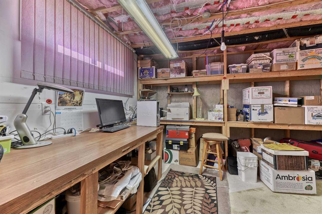 Welcome to this fantastic bungalow villa in the exclusive community of Scenic Acres Villas—just steps from bus stops and within walking distance to the LRT. This fully finished home is drenched in natural light and showcases soaring vaulted ceilings, three full bathrooms, and a sunny south-facing backyard with an extended deck and gas BBQ hook-up, perfect for enjoying warm afternoons. The main floor features gleaming hardwood laid on the diagonal, a bright office or den that could also serve as a second sitting room, and an expansive living room with vaulted ceilings and a cozy gas fireplace. The dining room is generous in size, making it ideal for family gatherings, while the eat-in kitchen offers upgraded appliances including an Ultraline gas stove, abundant granite counters, and a clever pull-out wood table that tucks away when not in use. The primary bedroom is a retreat with its walk-in closet and spa-like ensuite, complete with an oversized shower offering jets, colour therapy, and sound system. A convenient laundry nook with washer, dryer, and storage completes this level. The fully developed lower level provides excellent additional living space with a large third bedroom, a spacious rec or games room with an electric fireplace, a full bathroom, and two separate storage rooms. Hobbyists will also love the impressive workshop with 220 wiring. Additional highlights include built-in central vacuum, storage shelving in the garage, nearby visitor parking, and pet-friendly living with board approval. This exceptional property allows you to downsize without compromise in a bright, spacious villa in one of Northwest Calgary’s most desirable locations.