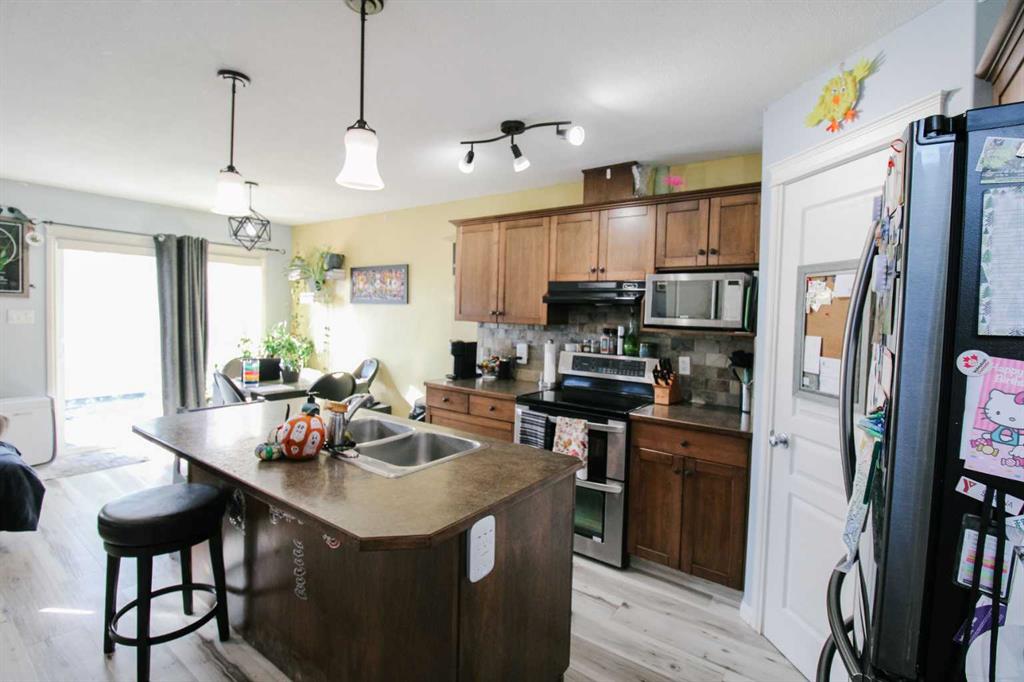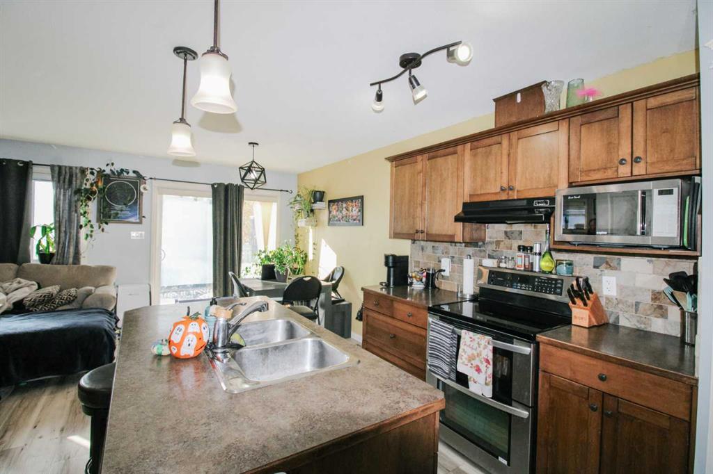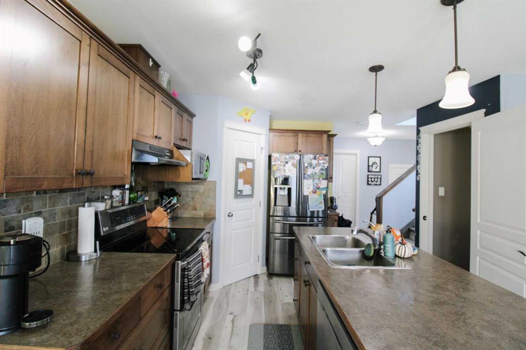 Welcome to this beautiful 4-bedroom, 3.5-bathroom half duplex, perfectly blending modern design with thoughtful details. Situated on a corner lot in a desirable and growing neighborhood, this home offers exceptional comfort and convenience — close to all amenities and new developments. Step inside to an open-concept main floor featuring a fully equipped kitchen with sleek finishes, seamlessly flowing into the bright living and dining areas — perfect for entertaining or relaxing with family. Upstairs, you’ll find two spacious bedrooms, a full bathroom, and a primary suite complete with a private ensuite and walk-in closet. The fully finished basement provides additional living space, a fourth bedroom, another full bathroom, and convenient laundry access. Outside, enjoy your large backyard with a private putting green(!), and garden area, ideal for both fun and relaxation. The home also features custom exterior lighting, underground sprinklers, and central air conditioning for year-round comfort. The attached double garage offers plenty of space and includes a 240-amp electrical service—perfect for EV charging or workshop needs. This property truly has it all — modern style, functional design, and outdoor living that stands out.