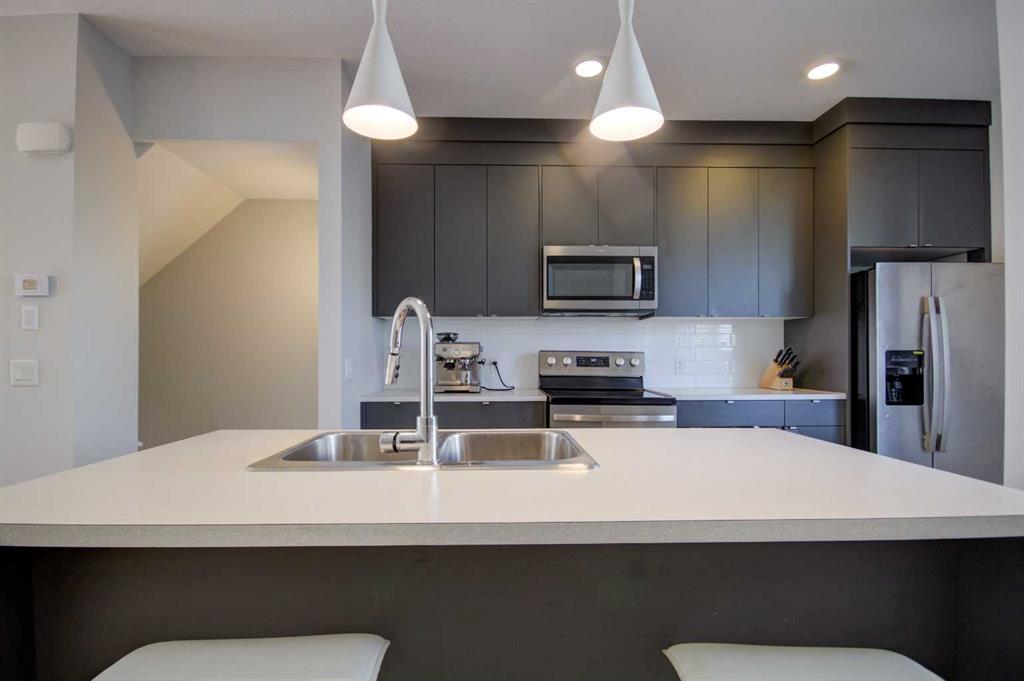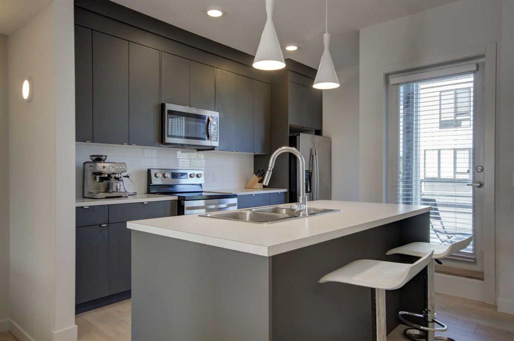 Experience modern living at its finest in this beautifully designed and FRESHLY PAINTED townhouse in one of the most desirable community of Bowness with around 1400 Sqfeet living area is the perfect choice for FIRST_TIME buyers or INVESTORS seeking a prime location. Enjoy breathtaking ridge VIEWS with easy access to downtown Calgary and the majestic Rockies and start your mornings on the sunny south-facing patio. A convenient bedroom and direct access to the ATTACHED GARAGE and the bathroom add everyday functionality and comfort or make use of the versatile front bedroom, ideal as a home office, gym, or cozy retreat. The OPEN_CONCEPT main level is filled with natural light, featuring a sleek kitchen with full-height cabinetry, stainless steel appliances, and a spacious island with seating — perfect for entertaining or casual dining. Step onto the private balcony, complete with a built-in BBQ gas line, for effortless outdoor cooking and relaxation. Upstairs, you’ll find two generously sized bedrooms, each with its own ensuite bathroom and dual closets, plus a stacked laundry area and linen storage for added convenience. This thoughtfully planned community offers visitor parking with EV charging, a children’s playground, and proximity to Bow Valley Crossing, Superstore, Trinity Hills, and the Calgary Farmers’ Market. With its MODERN DESIGN, practical layout, and unbeatable location, this home is an exceptional opportunity to live or invest in one of Calgary’s most desirable areas!