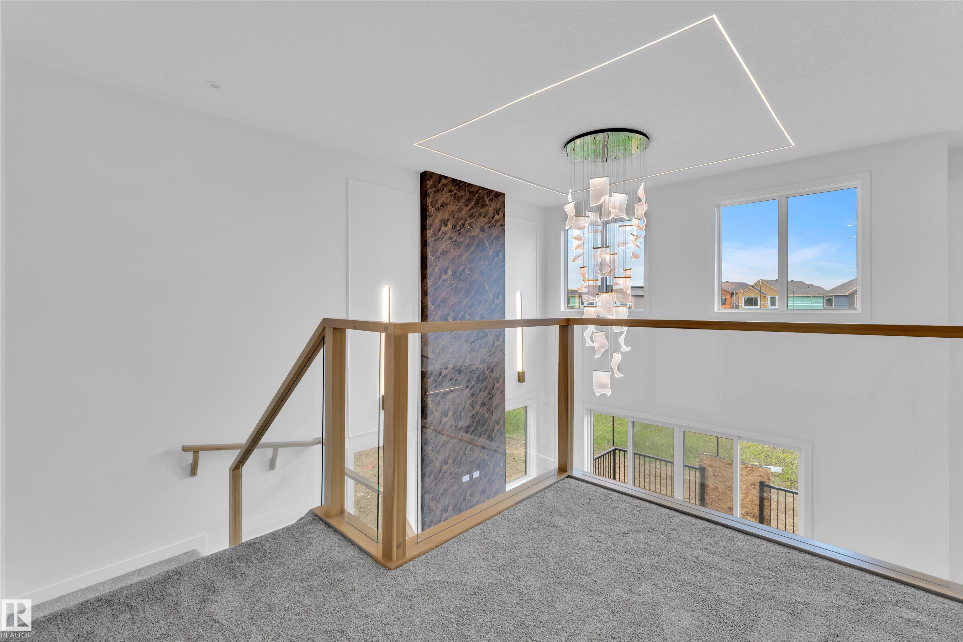 Backing to green | Pie shaped lot. Step into luxury with this fully upgraded custom TRIPLE car garage home with NO Neighbours at the back ! The main floor double door entry features a spacious MASTER bedroom WITH OPEN TO ABOVE, FIREPLACE , 5pc ENSUITE , W/I Closet & own private Deck. you will also find Den and additional 2 pc bathroom on main floor. The chef-inspired Open to Above Kitchen is a true masterpiece, complete with a unique center island .The open-concept living area showcases a custom STUNNING feature wall. The upper level you will find a spacious bonus room. Two bedrooms with their own separate closets & JACK/JILL Bathroom. Another bedroom with common bathroom. Laundry is conveniently located upstairs. The unfinished basement with 3 windows & separate entrance offers endless potential.
