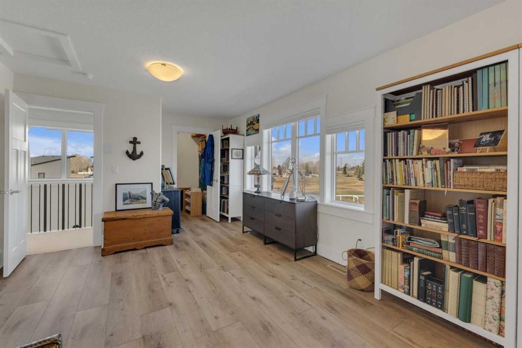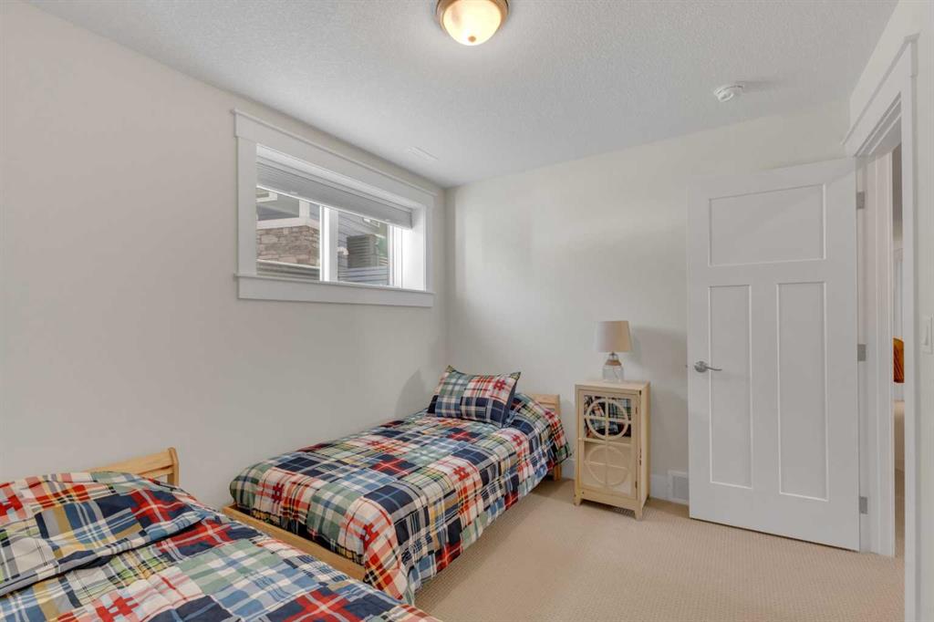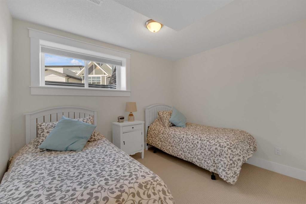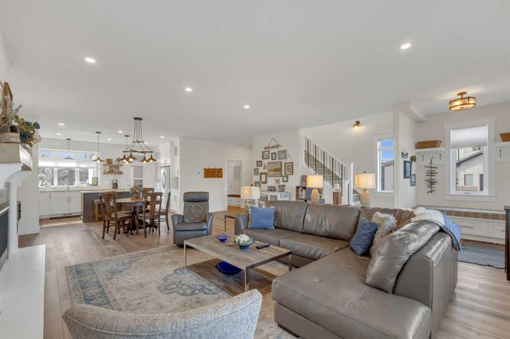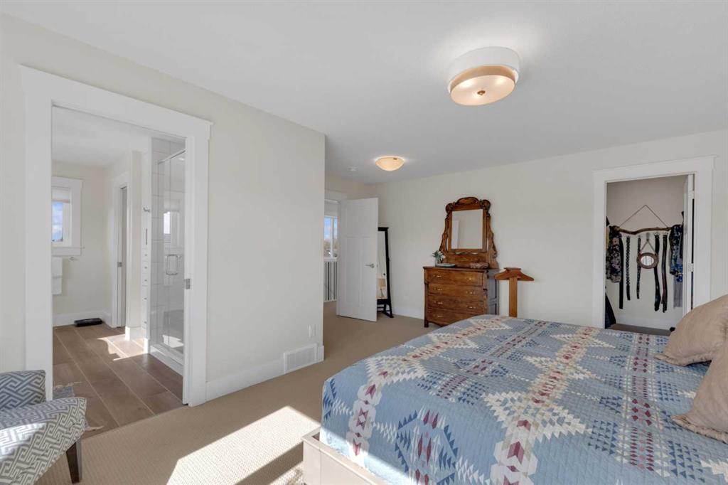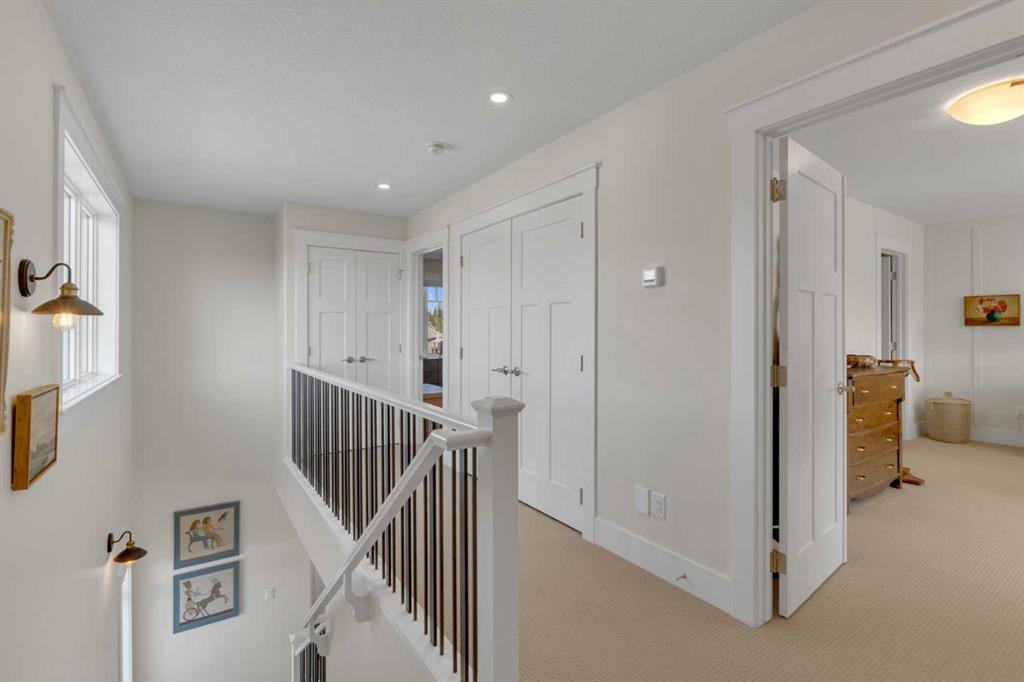 Custom-built 2-storey at Gleniffer Lake Resort offering a well-designed layout, quality finishes and thoughtful upgrades throughout. Built in 2021 with remaining new home warranty, this east-facing home is filled with natural light and provides flexible space for full-time living or a high-end recreational retreat. The main floor features an open-concept design with a bright living area anchored by a gas fireplace with full-height shiplap feature wall. The kitchen is finished with ceiling-height cabinetry, quartz countertops, full tile backsplash and a large island with seating. Additional highlights include a 5-burner gas cooktop, wall oven with built-in microwave, Blanco sink with retractable faucet, soft-close cabinetry and a central vacuum kick plate. Built-in benches at the front and back entries add everyday function. The main living area features smooth ceilings, with knockdown texture throughout the remainder of the home. Upstairs, the home offers two primary bedrooms, each with its own ensuite and walk-in closet. The main primary includes electric in-floor heat in the ensuite. In total, the home offers 5 bedrooms and 3.5 bathrooms, providing excellent flexibility for family and guests. The fully developed basement includes in-floor heating throughout and additional living space for recreation or hosting. A split furnace system with a dedicated upper-level zone and variable speed fan ensures comfort across all levels, supported by an HRV air exchange system. Outdoor living is just as well considered, with a covered rear deck featuring a gas fireplace and privacy draperies, plus a fire pit area and real grass in the front and back yards. Phantom screens on both front and rear doors allow for easy indoor-outdoor flow. The heated garage offers 12’ ceilings and approximately 550 sq ft of space, accommodating two vehicles and additional storage. A detached shed, designed to complement the home, provides even more storage options. The lot is positioned to allow parking for up to four vehicles. Additional features include upgraded luxury vinyl plank flooring, high-quality carpet with 10 lb underlay, LED pot lighting, wall sconces, central vacuum system and custom closet shelving. Located in Gleniffer Lake Resort & Country Club, this property offers access to golf, lake activities, trails and a strong sense of community, with the flexibility to enjoy it as either a full-time residence or a recreational retreat.
