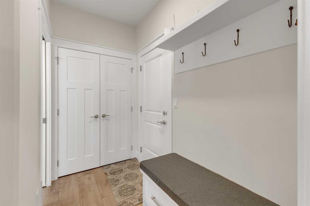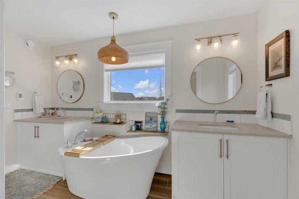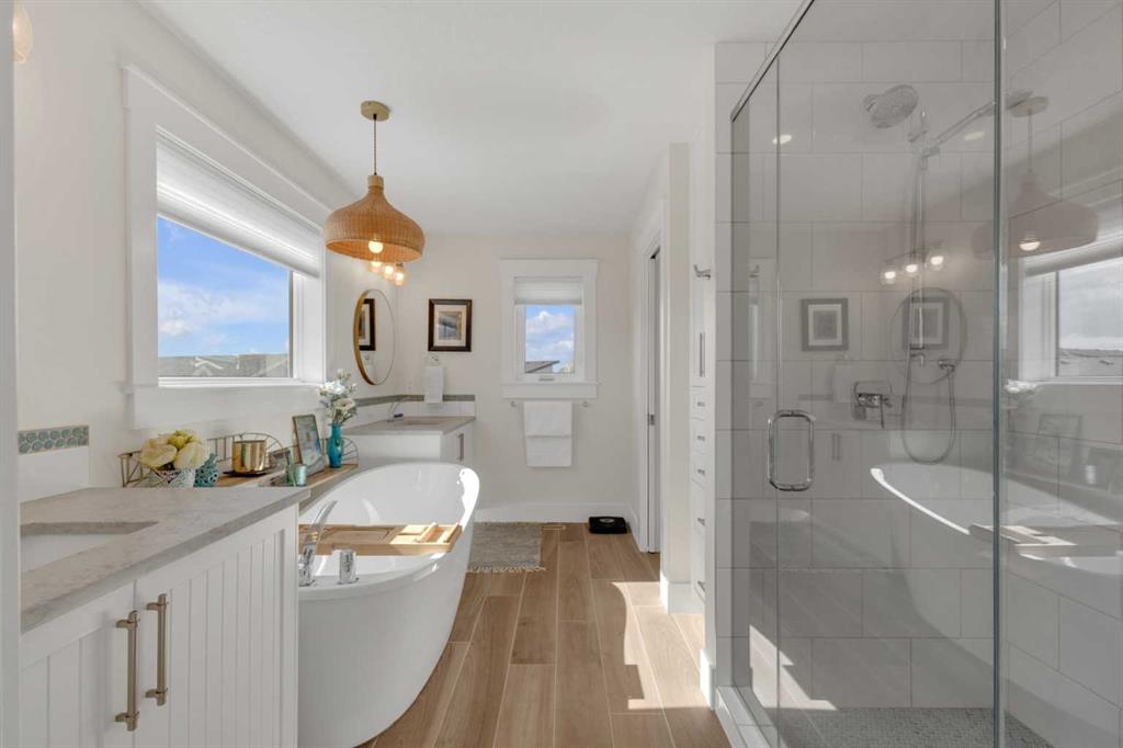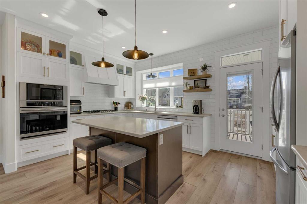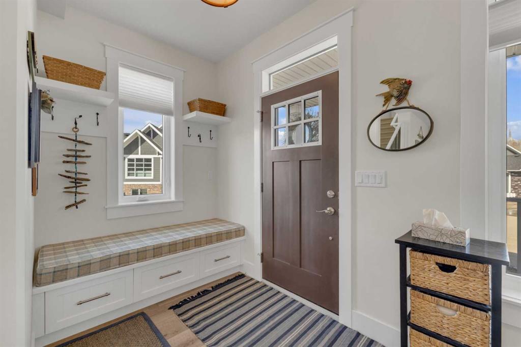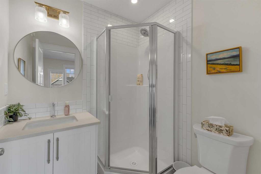 Custom-built 2-storey at Gleniffer Lake Resort offering a well-designed layout, quality finishes and thoughtful upgrades throughout. Built in 2021 with remaining new home warranty, this east-facing home is filled with natural light and provides flexible space for full-time living or a high-end recreational retreat. The main floor features an open-concept design with a bright living area anchored by a gas fireplace with full-height shiplap feature wall. The kitchen is finished with ceiling-height cabinetry, quartz countertops, full tile backsplash and a large island with seating. Additional highlights include a 5-burner gas cooktop, wall oven with built-in microwave, Blanco sink with retractable faucet, soft-close cabinetry and a central vacuum kick plate. Built-in benches at the front and back entries add everyday function. The main living area features smooth ceilings, with knockdown texture throughout the remainder of the home. Upstairs, the home offers two primary bedrooms, each with its own ensuite and walk-in closet. The main primary includes electric in-floor heat in the ensuite. In total, the home offers 5 bedrooms and 3.5 bathrooms, providing excellent flexibility for family and guests. The fully developed basement includes in-floor heating throughout and additional living space for recreation or hosting. A split furnace system with a dedicated upper-level zone and variable speed fan ensures comfort across all levels, supported by an HRV air exchange system. Outdoor living is just as well considered, with a covered rear deck featuring a gas fireplace and privacy draperies, plus a fire pit area and real grass in the front and back yards. Phantom screens on both front and rear doors allow for easy indoor-outdoor flow. The heated garage offers 12’ ceilings and approximately 550 sq ft of space, accommodating two vehicles and additional storage. A detached shed, designed to complement the home, provides even more storage options. The lot is positioned to allow parking for up to four vehicles. Additional features include upgraded luxury vinyl plank flooring, high-quality carpet with 10 lb underlay, LED pot lighting, wall sconces, central vacuum system and custom closet shelving. Located in Gleniffer Lake Resort & Country Club, this property offers access to golf, lake activities, trails and a strong sense of community, with the flexibility to enjoy it as either a full-time residence or a recreational retreat.