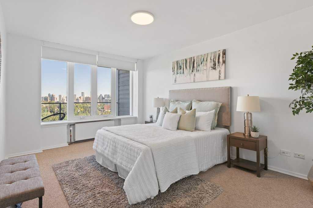 **OPEN HOUSE: SUNDAY NOV 2 | 2:00-4:00PM** Penthouse Living with Unmatched Views | Welcome to Unit 708 in Renfrew House—a rare penthouse offering perched high above Calgary in the prestigious Rideau Park community. This top-floor, 2-bedroom, 1-bathroom residence offers the perfect balance of timeless elegance, everyday functionality, and untapped potential for luxurious customization. Step inside to a sprawling open-concept living and dining area, bathed in natural light. The space invites both relaxation and entertainment, with seamless access to your private, full-length balcony showcasing uninterrupted panoramic views of the downtown skyline, the river valley, and even the distant Rocky Mountains—a front-row seat to Calgary’s most spectacular sunsets. The galley-style kitchen is fully functional as-is, yet holds limitless potential. Open it up to create a gourmet showpiece—ideal for hosting gatherings, late-night conversations, or quiet mornings with a view. The primary bedroom easily accommodates king-sized furnishings and offers tranquil retreat-like comfort. The second bedroom is a versatile space—perfect as a guest room, home office, or creative studio, complete with breathtaking sightlines that make even work-from-home days feel luxurious. Additional features include secure underground heated parking, a generously sized storage unit, and access to a well-managed, impeccably maintained building with serene green surroundings and a resort-like outdoor pool just steps away. Located mere minutes from Mission, 4th Street dining, the Elbow River pathways, and downtown Calgary, this penthouse marries the quiet elegance of Rideau Park with the pulse of urban living.
