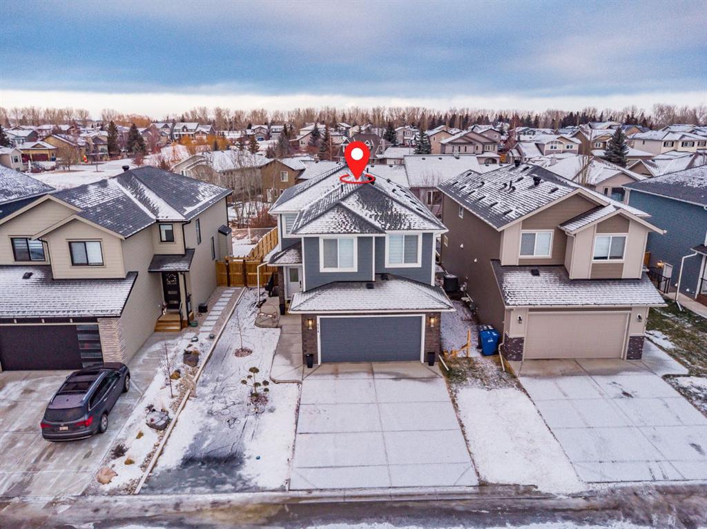Welcome to a thoughtfully designed family home where space, comfort, and everyday functionality come together, a newly built 2,071 sq ft residence located in Mandalay Estates, Carstairs. From the moment you enter, you’re greeted by a huge front foyer with striking tile flooring and an open-to-above feature, creating an impressive first impression. The main floor is thoughtfully designed with an open, functional layout, featuring a stylish kitchen with upgraded cabinetry, under-cabinet lighting, a gas stove, and a walk-through pantry that seamlessly connects to a spacious mudroom with built-in storage and thoughtfully designed drop zones, ideal for busy families and everyday organization. The inviting living room is anchored by a cozy gas fireplace, creating a warm and welcoming space for gathering. A main-floor office provides the perfect work-from-home setup or quiet flex space. Large windows and upgraded zebra blinds allow natural light to flow throughout. Upstairs, the home truly shines. A massive bonus room with tray ceilings offers the perfect space for family movie nights or a kids’ retreat, while the primary bedroom is thoughtfully separated for added privacy. The primary suite features a large walk-in closet with custom built-ins and a well-appointed 4-piece ensuite with dual sinks and a huge glass shower with built-in seating. Two additional generous bedrooms, a full bathroom, and a laundry room with added storage complete the upper level. Outside, enjoy a fully FENCED yard and deck, offering privacy and space for kids or pets, a rare bonus in newer homes. The heated double garage, stone exterior accents, and separate side entrance further set this home apart. The basement offers 9-foot ceilings and a separate side entrance, providing excellent potential for future development and the flexibility to design the space to suit your needs. Located close to schools, parks, the Carstairs Community Golf Course, Memorial Arena, campground, and with the convenience of a Loblaws grocery store right within the community, this home delivers both lifestyle and value. A thoughtfully upgraded, move-in-ready home with features that truly stand out, this is one you don’t want to miss.