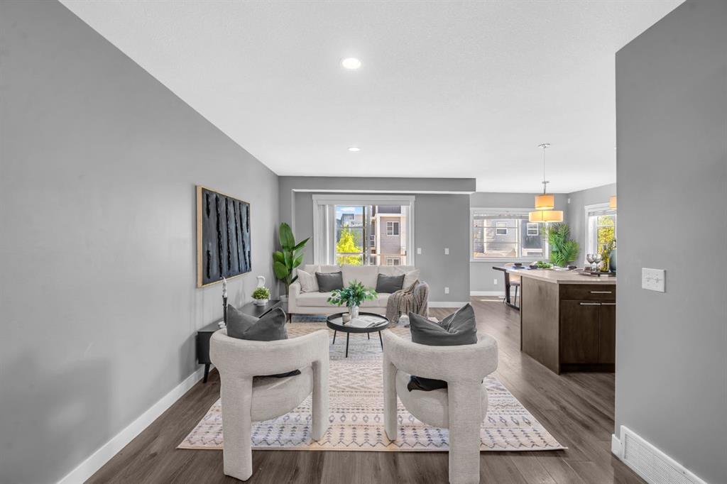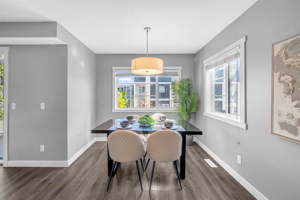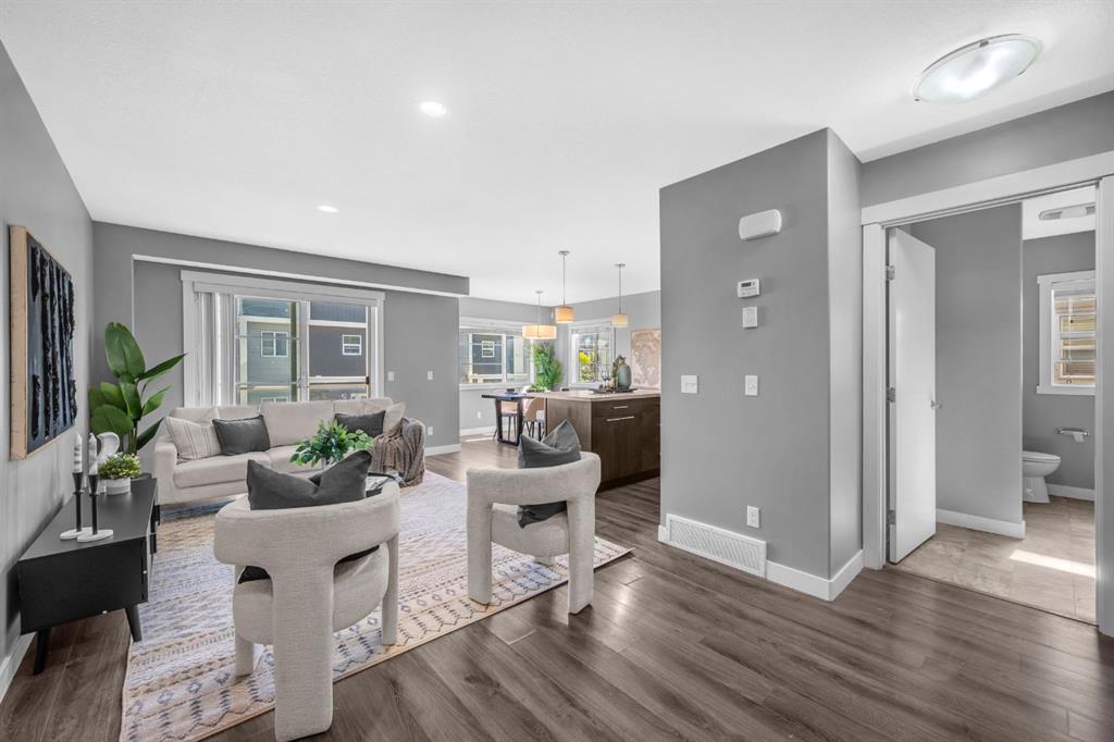 OPEN HOUSE NOV 2 12-2pm | Welcome to this beautifully maintained CORNER unit offering exceptional space and convenience in Redstone. Featuring 4 spacious bedrooms and 2.5 bathrooms, this home is perfect for families or anyone seeking extra room to grow. The bright, open layout is FRESHLY PAINTED and PROFESSIONALLY CLEANED, providing a true move-in ready experience. The main floor consists of a large foyer with access to the garage and bedroom. The second floor features a bright, open layout living area featuring a beautiful kitchen with upgraded stainless steel appliances and island. The open layout of the kitchen, sizeable centre island, dining room and living room make it perfect for entertaining. The huge patio area easily fits a small patio set to sit and relax with a natural gas line hook up ready for your bbq. The upper floor features a huge master bedroom with a VAULTED CEILINGS, walk-in closet and attached ensuite. There are 2 more spacious bedrooms and a full bathroom on the top floor. Enjoy the convenience of an attached single garage plus full driveway, giving you ample parking and storage. With its corner location, this home also benefits from extra windows and natural light throughout. Located in a very quiet location across a park in a family oriented community of Redstone! This home is close to all amenities like bus stop, stores, mall, airport, bus stop, groceries and easy access to Stoney Trail and Deerfoot. Steps away from a new shopping plaza opening on Redstone Blvd!