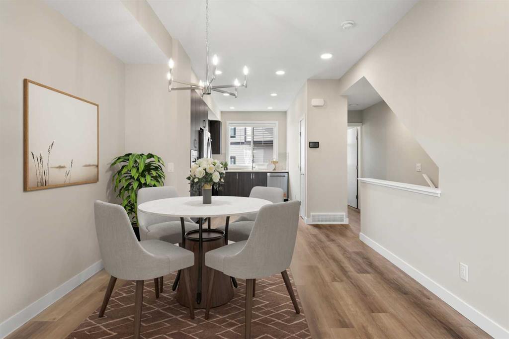 Welcome to Chelsea Court, a beautifully designed two-bedroom, two-and-a-half-bathroom townhome nestled in the heart of Chestermere’s vibrant Chelsea community. This modern residence offers over 1000 sqft of thoughtfully laid-out living space, with an open-concept main floor that seamlessly integrates the kitchen, dining area, and living room—perfect for entertaining and everyday comfort. Large windows flood the space with natural light, enhancing the sleek finishes and warm tones throughout. The well-appointed kitchen features quartz countertops, rich cabinetry and stainless steel appliances. A convenient half bath on the main level rounds out this floor. Upstairs, the primary bedroom includes a private four-piece ensuite bathroom and a spacious closet, while the second bedroom and another full ensuite provide flexibility for a guest room, home office, or flexible living space. Laundry facilities are also located on this level for added convenience. Externally, this home includes an attached double tandem garage and a private second-level balcony—ideal for quiet morning coffees or evening relaxation. Residents enjoy access to a thoughtfully planned community, complete with walking paths, wetlands, and green spaces, all just steps from your front door. Chelsea Court offers maintenance-free living in a welcoming resort-style neighbourhood only five minutes from Chestermere Lake, local schools, parks, shops, and restaurants. It’s also just a short drive to Calgary and the East Hills Shopping Centre, making it easy to enjoy urban amenities alongside a serene, small-town setting. This meticulously crafted townhome by award-winning Trico Homes reflects modern tastes and high-quality construction. With its designer finishes, intentional layout, and unbeatable location, it provides an ideal lifestyle for a wide range of buyers—including first-time homeowners, downsizers, professionals, or small families. Don’t miss your opportunity to settle into this fabulous Chelsea Court townhome—where everyday ease, style, and a vibrant community converge. ***Photos are from a completed unit - some finished may vary and the entry level measurements are added to the main level measurements***