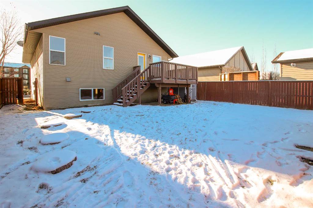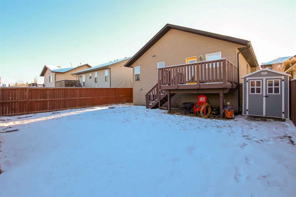 IMMEDIATE POSSESSION AVAILABLE ~ FULLY DEVELOPED 5 BEDROOM, 3 BATHROOM BI-LEVEL ~ LARGE OFF STREET PARKING PAD ~ Sunny foyer with high ceilings that open to the main level welcomes you ~ The living room features a cozy gas fireplace with a tile surround and TV niche above, and large south facing windows that overlook the front yard and allow for natural light to fill the main living space ~ Easily host large gatherings in the dining room with another large window and a built in phone desk ~ The kitchen offers an abundance of warm stained cabinets, full tile backsplash, ample counter space including a raised eating bar, window above the sink, wall pantry and garden door access to the deck and backyard ~ The primary bedroom can easily accommodate a king size bed plus multiple pieces of furniture, has a walk in closet with built in organizers and a 3 piece ensuite ~ 2 additional main floor bedrooms are conveniently located across from the 4 piece main bathroom ~ The fully finished basement with large above grade windows offers tons of additional space including a huge family room, 2 bedrooms - one bedroom has a walk in closet and cheater door to an oversized 4 piece bathroom, plus laundry and space for storage ~ The backyard is landscaped, has a garden shed, space for storage below the deck and is fully fenced with back alley access ~ large rear parking pad with potential RV parking/future garage development ~ Located steps to a large park with walking trails, playgrounds and sports courts, and walking distance to all other amenities including schools, Collicut Centre, excellent shopping, dining and medical.