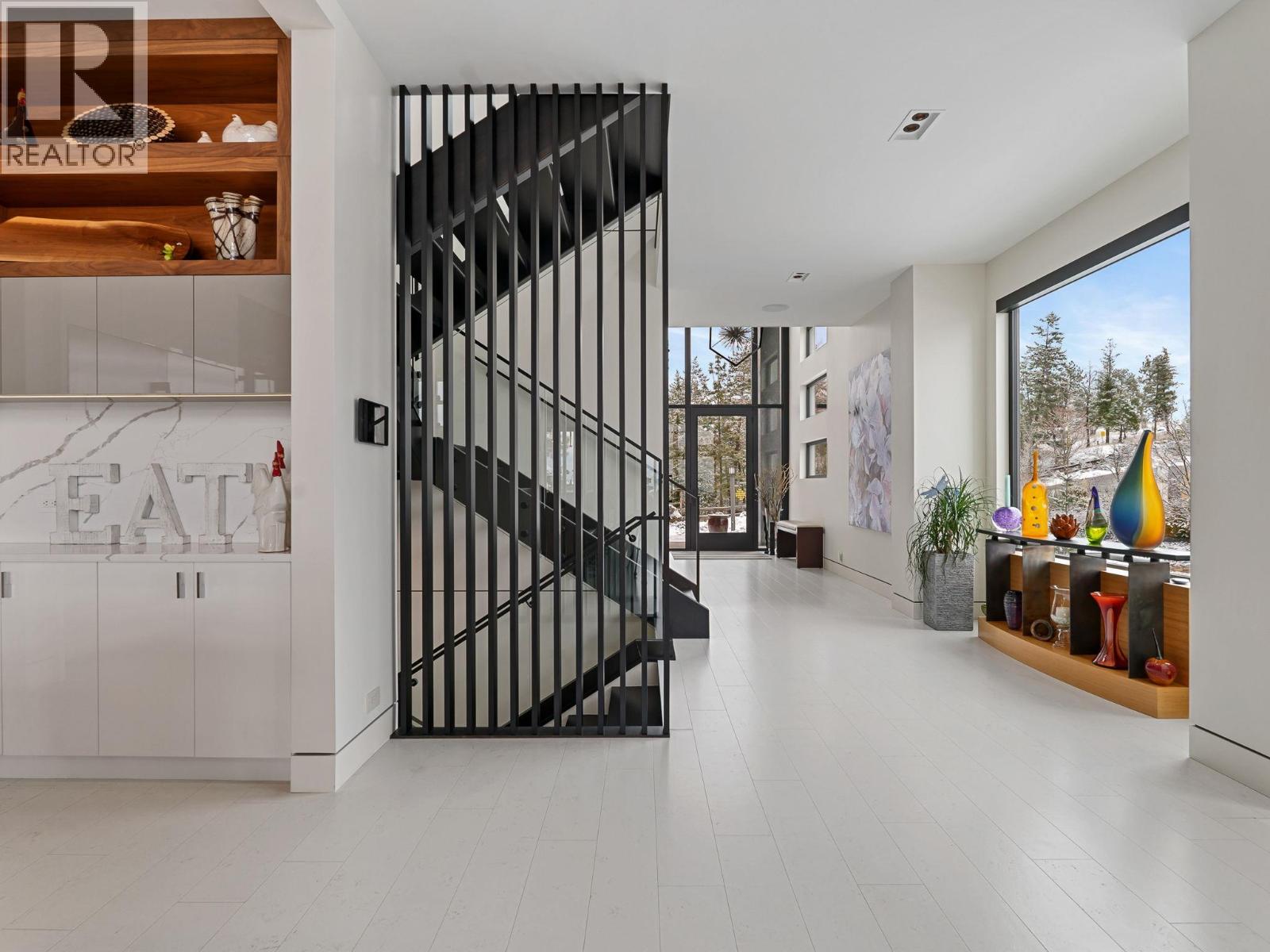 Nestled in the prestigious Highpointe community of Kelowna, this architectural masterpiece redefines modern luxury with views of the city, Okanagan Lake and surrounding mountains. This home is a visual showpiece, with striking geometric lines, floor-to-ceiling windows and meticulous landscaping. The interior boasts an impressive design, double-height ceilings, and seamless negative baseboards that exude elegance. The open-concept living space centers around a stunning linear fireplace, while the gourmet kitchen is a chef’s dream with high-end appliances, a waterfall-edge island, and a butler’s pantry for effortless entertaining. A custom elevator provides convenient access to all levels, and two separate garages accommodate up to 9 vehicles, perfect for car enthusiasts. Each bedroom is a private retreat with designer finishes and spa-like ensuites, including the luxurious primary suite with a walk-in closet and private outdoor access. The professionally landscaped exterior features a dazzling pool, an outdoor kitchen, and multi-tiered terraces, ideal for entertaining or relaxation. SMART home technology ensures convenience, and the property’s location offers both privacy and proximity to downtown Kelowna, world-class wineries, golf courses and recreational trails. This home is a statement of sophistication and lifestyle.
