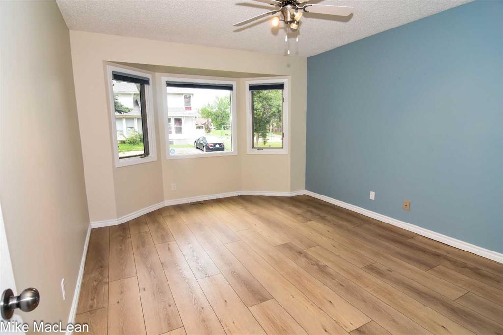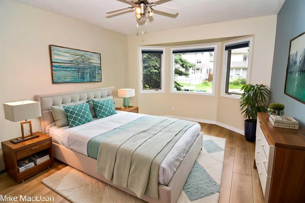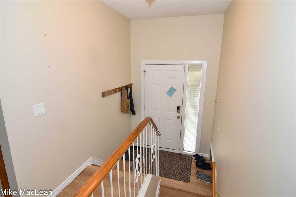 Absolutely immaculate one owner end unit bungalow home! Purchased brand new 48 years ago and lived in by the same owner and it shows!! Features include 1061 sq ft on the main floor with 3 bedrooms with a bay window in the primary bedroom. Kitchen is like new with a large dining area and built in china cabinet. Upgraded 4 piece main bath. Patio doors to a good sized composite deck. Vinyl plank flooring 5 years ago, window coverings 5 years ago and painted 5 years ago. Lower level has a family room, 4th bedroom, 1/2 bath and workshop plus tons of storage. Furnace changed in 2009, and tankless instant hot water. The landscaping is always maintained. The private yard has a beautiful brick patio with pergola and an oversized single garage. There is also room for extra parking beside. Nothing to do but move in! Call your Realtor now to book a showing.
