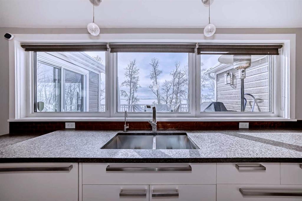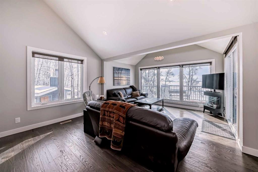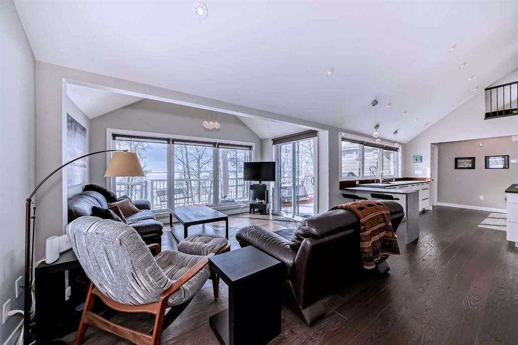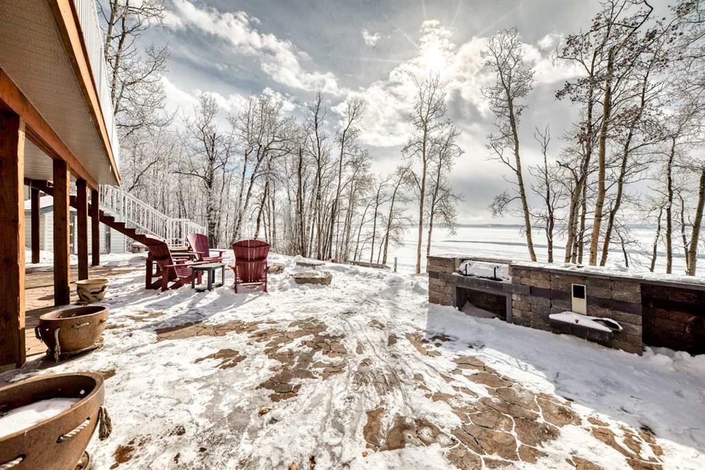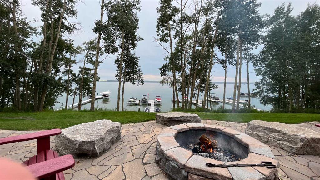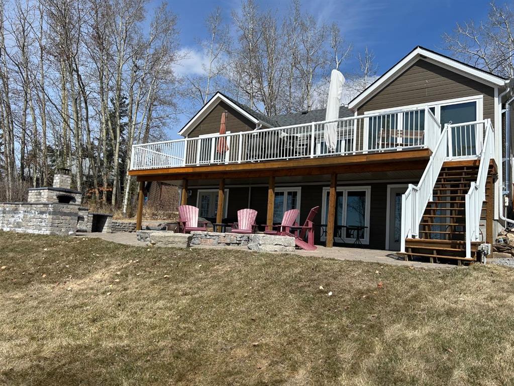 One of the finest, most pristine lots in the Summer Village of Sunbreaker Cove on Sylvan Lake offering “146 feet of lake frontage”. Designed to maximize year round comfort and enjoyment this home has it all: Vaulted ceilings, large windows, an abundance of natural light, lovely high-end finishings and upgrades. Enjoy the daily magnificent unobstructed Lake views from nearly every vantage point. This bright, thoughtfully and tastefully renovated open-concept layout creates a seamless flow across the main level and the fully developed walk-out lower level, ideal for relaxing and entertaining. A spacious dinning area, compliments the well-appointed kitchen with eating nook, complete with granite counter-tops, gas stove-top, convection microwave, bar fridge and a reverse osmosis water system. This home offers 3 generous size bedrooms, including a main level primary with a large window showcasing sweeping Lake views, substantial built in closets and space for a cozy reading chair. Thru the mudroom you can access a charming loft which adds character and flexibility to this space. The bright lower level features a large family room with in-floor heating, a wood-burning fireplace, and a versatile office nook that includes a Queen size fold out desk/bed offering extra sleeping options. The lower level has 2 bedrooms-one with a double log bunk bed, a full bathroom, nicely set up laundry room and a utility/storage room. Walk out to a private unique outdoor living space featuring a partially covered stone patio with a large fire pit and built-in outdoor kitchen complete with your own pizza oven. Imagine sitting around the fire pit overlooking your spacious yard adorned with fruit and ornamental trees enhanced by the stunning Lake views. This is the perfect setting for entertaining year round, sharing stories with friends and family under the stars. Adding to the appeal is a 1/3 ownership in the dock located directly in front of the property. Entering the property you will see a single car garage with room for storing all your lake toys and a car port with an asphalt driveway.