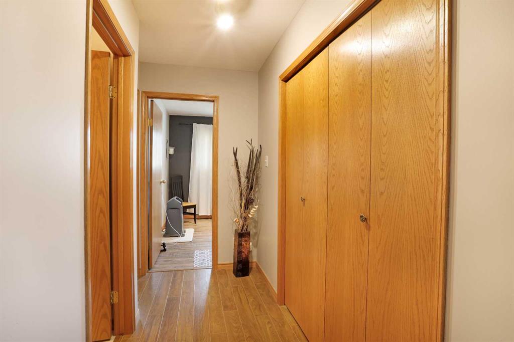 Welcome to 731 Parkland Drive East, Brooks - This home offers an open, inviting layout filled with natural light and stylish finishes that bring warmth and personality to every room. Enjoy your morning coffee in the cozy living room next to the gas fireplace, taking in the early morning sunrises through the east-facing bay window—a perfect way to start your day. The spacious front foyer opens into a bright living room featuring high ceilings with thick crown moldings. The kitchen is designed to impress and perform, with enough counter space and storage for two chefs. The adjacent dining area leads out to a sizable deck and a perfectly landscaped, fully fenced backyard. The recently renovated main floor primary bedroom and en-suite provide a great level of comfort, featuring a walk-in closet and a beautiful 4 piece bathroom with easy access to the oversized shower. For added accessibility, the wider hallways and primary bedroom door are designed for ease of use, and a chairlift is partially installed going downstairs. The main floor includes two additional bedrooms, a roomy main bathroom & main floor laundry, adding ease to daily living. The lower level boasts a recently updated bathroom, a large family room, and a huge storage area. There is plenty of room for additional bedrooms, if needed. Additional features include an attached garage, rv parking & no neighbours to the east of you overlooking a small pond. This a property you would be proud to call home.