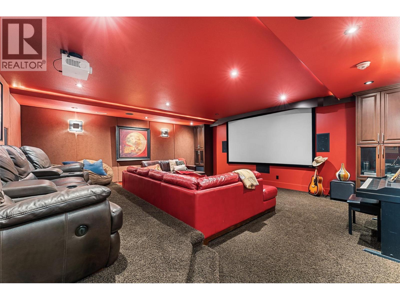 Unrivalled lake views stretch from Bear Creek to Peachland in this breathtaking Upper Mission residence. Showcasing over 5,500 sq. ft. of refined quality construction, this 5-bedroom, 5-bathroom estate is a masterclass in design, comfort, and craftsmanship and boasts lake views from all 3 levels. The main level offers effortless living with a grand great room, a chef-inspired kitchen with Thermador appliances and island seating for six, and a deluxe primary retreat featuring a spa-inspired ensuite with steam shower and private deck access. Automated with Control4 and designed for entertaining, enjoy the panoramic wraparound patio with fireplace above, or head to the lower level where a wet bar, theatre room, and spacious rec area await. Three additional bedrooms, each with ensuite access, open to a covered patio with a putting green, hot tub, tranquil water feature & private backyard. A vaulted loft with private balcony makes the perfect office or artist's escape. Thoughtful touches include a 4-car garage (2 deep), home-wide built-in speakers, and manicured, low-maintenance landscaping. Located only a couple mins from the new Upper Mission Shopping centre. This is lakeview living elevated—privacy, luxury, and lifestyle in perfect harmony.