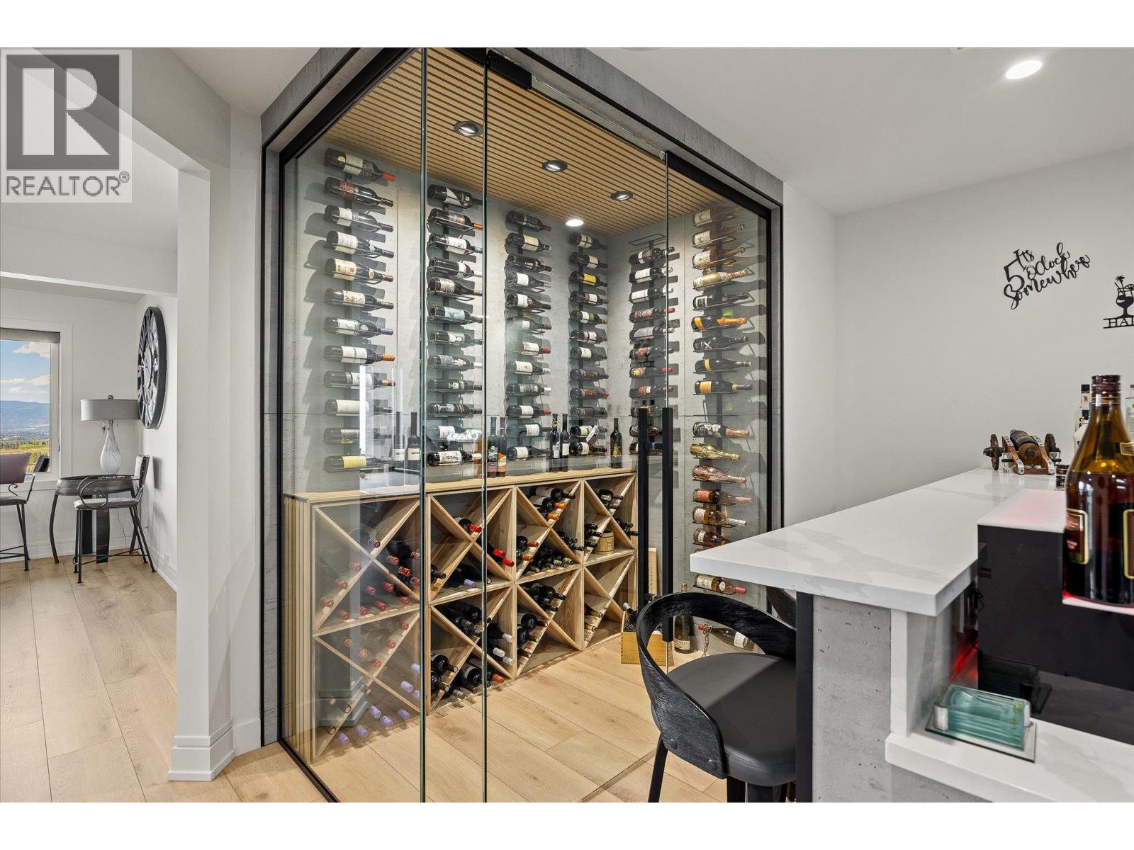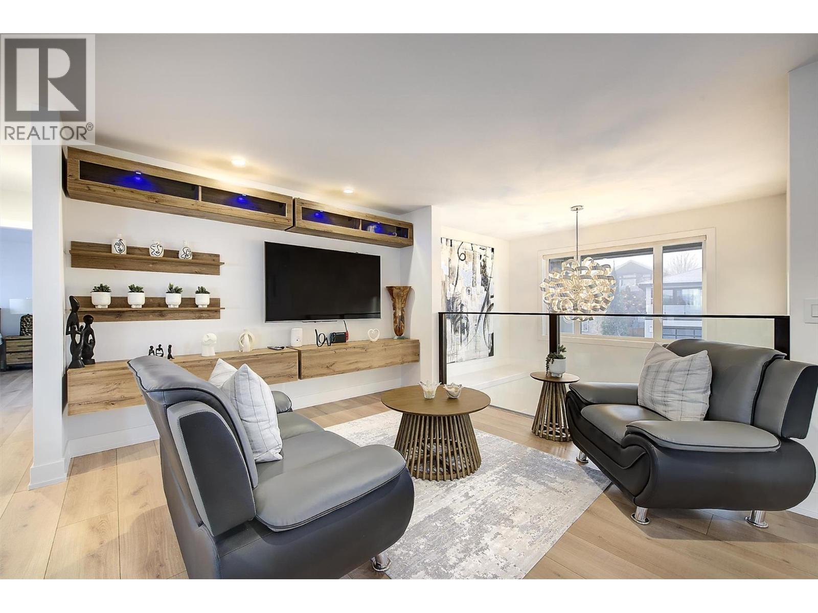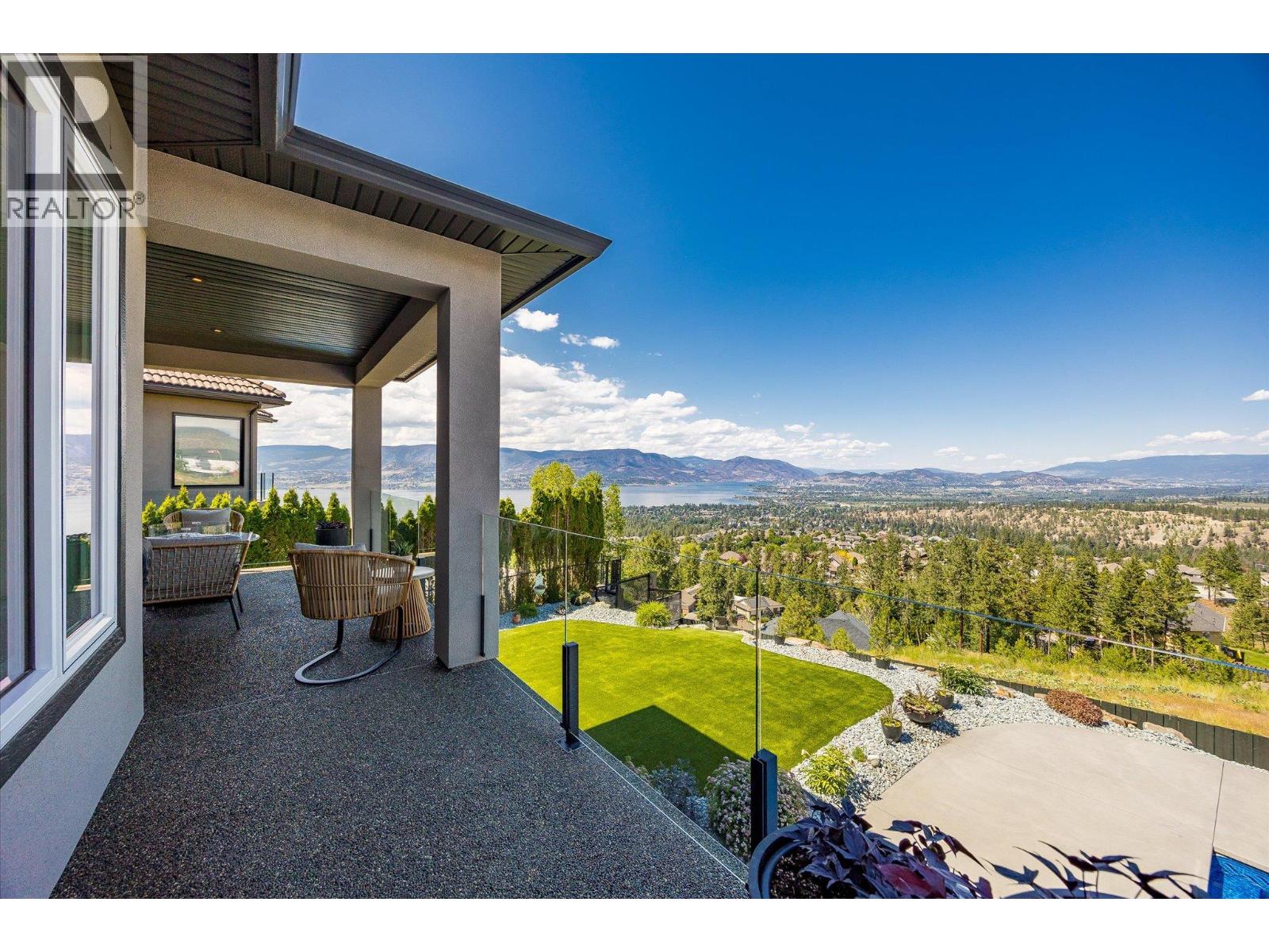 Step into elevated living in this beautifully re-imagined 5-bed + den, 4-bath residence, where luxury, comfort, and panoramic views converge. From the moment you arrive, the grand entry and soaring vaulted ceilings set the tone for a home designed to impress, while the chef’s kitchen, featuring premium appliances and a butler’s pantry, anchors the heart of the main level with style and function. Expansive windows frame breathtaking 180-degree vistas across the city of Kelowna and Okanagan Lake, creating an extraordinary backdrop for everyday living and entertaining. The primary retreat, privately positioned on the main floor, offers a serene escape complete with stunning lake views and a spa-inspired ensuite. Two additional spacious bedrooms upstairs offer comfort and privacy for family and guests. The walk-out lower level is an entertainer’s haven, thoughtfully designed with a refined whiskey tasting room, temperature-controlled wine cellar, sleek bar, generous recreation space, and a state-of-the-art theatre. Step outside to the private backyard and pool area, where the views become more spectacular and unforgettable. Completing this exceptional home are four garage spaces, including a double and tandem garage, with EV charging and abundant room for a boat or RV, along with extensive additional parking for guests. Every element of this residence blends elegance with practicality, offering an unparalleled lifestyle opportunity in one of Kelowna’s most desirable settings.