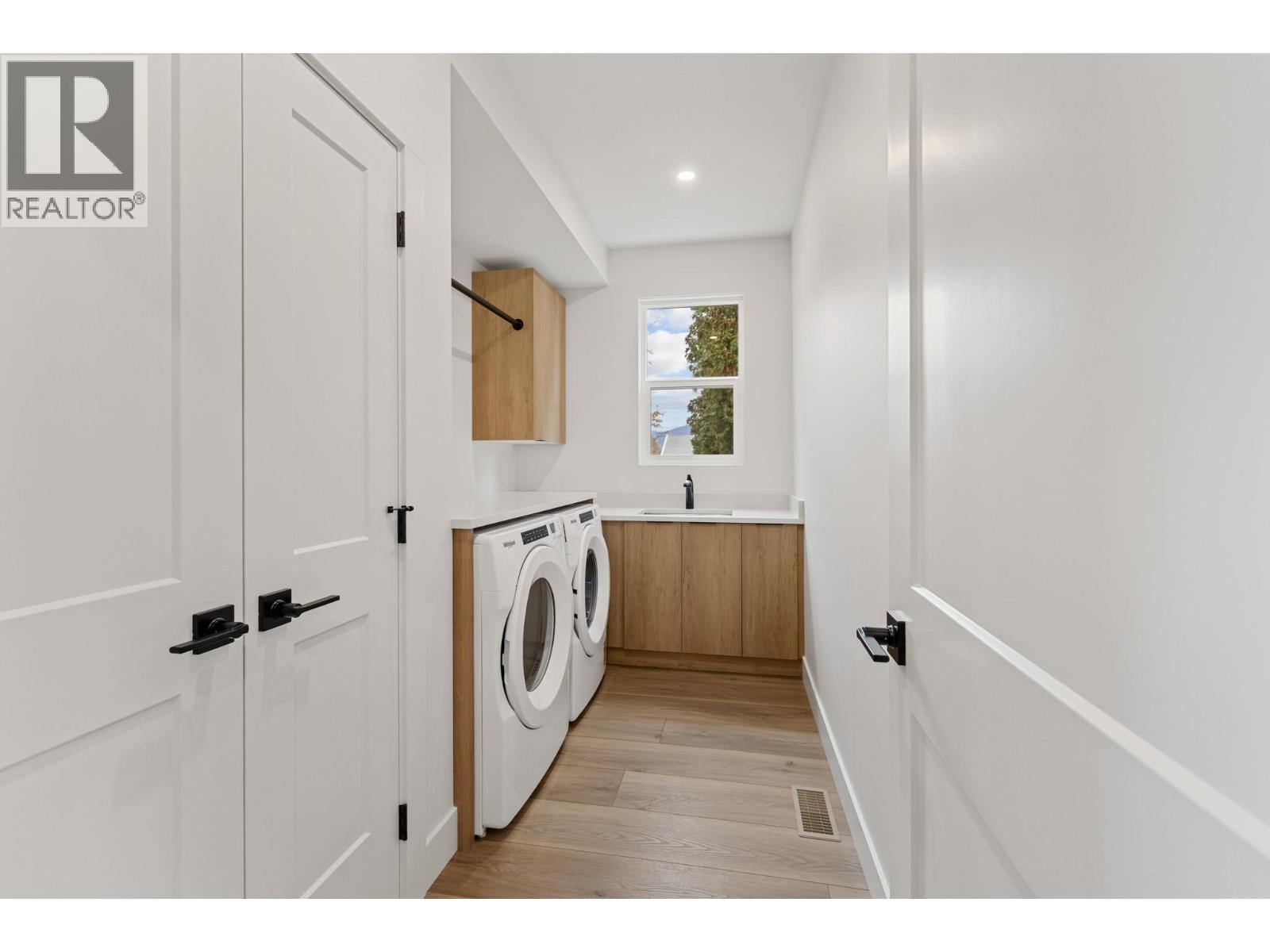 Stylish townhome steps away from Pandosy Village! This beautifully finished 3-bedroom + den, 4-bath home offers the perfect blend of modern design, smart functionality, and unbeatable walkability. The bright, open-concept main floor features a chef-inspired kitchen with a large corner pantry, oversized island with seating, and seamless flow into the dining area and welcoming great room with a cozy natural gas fireplace. Upstairs, the spacious primary suite offers a walk-in closet and spa-like ensuite with double vanity, freestanding tub, and walk-in shower. Two additional bedrooms, a full bathroom with double vanity, and a thoughtfully designed laundry room with brand-new LG washer and dryer, folding counter, sink, and extra storage complete the upper level. The top floor offers a versatile recreation space with vaulted ceilings, a sleek wet bar, and direct access to a large rooftop patio—perfect for entertaining, relaxing, or adding a hot tub. Located just two blocks from the beach, and a short walk away from shops, restaurants, and amenities of Pandosy Village, with easy access to Kelowna General Hospital, parks, and schools. Spacious, stylish, and ideally located—an exceptional opportunity to enjoy Kelowna’s vibrant lifestyle.