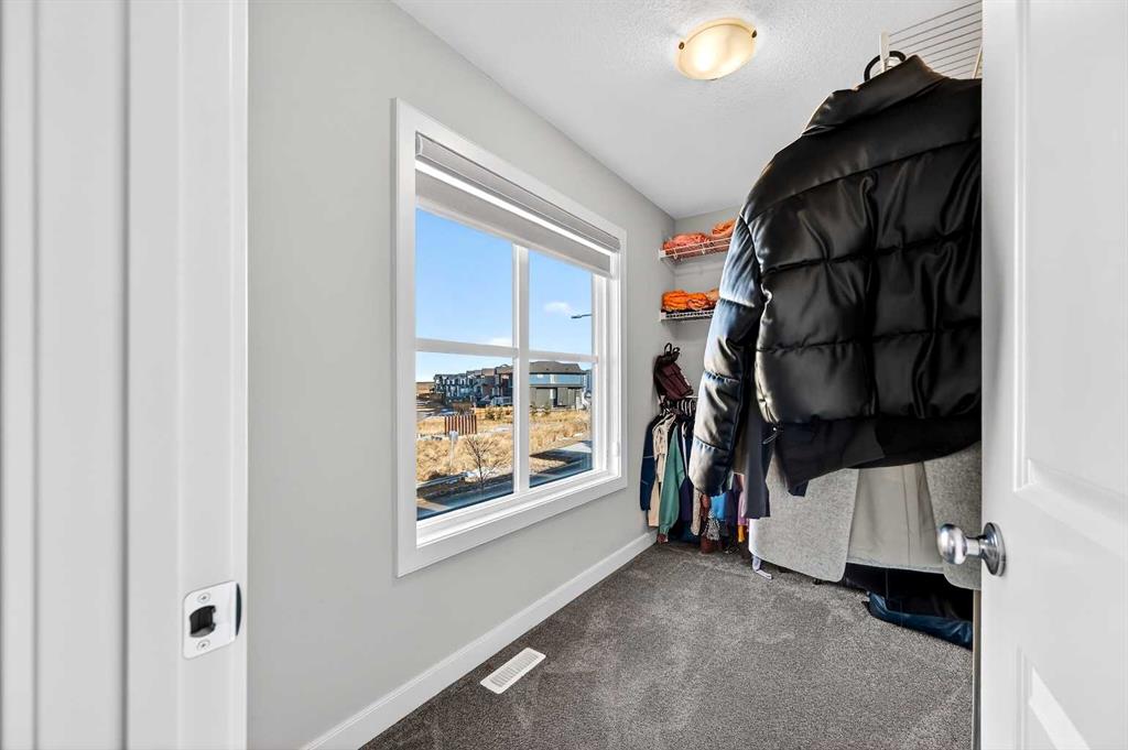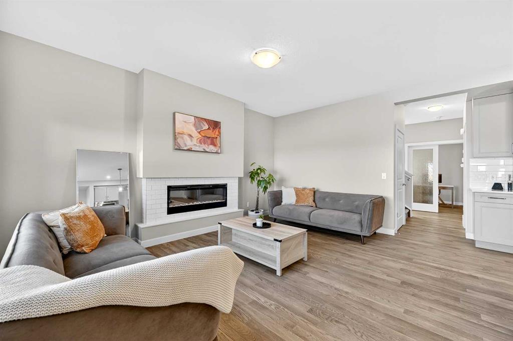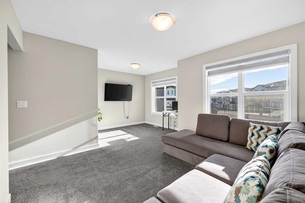 Welcome to 77 Belvedere Drive SE, a beautifully designed detached home that perfectly balances modern luxury with a functional layout, situated on a premium lot backing onto an undeveloped pathway system. The main floor features an open-concept chef’s kitchen boasting elegant grey cabinetry, quartz countertops, a gas range, and a massive island with a breakfast bar, all supported by a convenient walk-through pantry. Hardwood and tile flooring lead you to an inviting living room anchored by a sleek linear gas fireplace with a contemporary tile surround. This level also includes a versatile flex room—ideal for a home office or guest bedroom—and a rear mudroom with a built-in bench. Upstairs, a massive bonus room offers the perfect family retreat alongside three spacious bedrooms, including a primary suite with a walk-in closet and private ensuite. The second-floor laundry is fully upgraded with quartz counters and a built-in sink. This move-in-ready home comes complete with blinds and a clean, undeveloped basement that provides a blank canvas for your future storage or development needs. Residents will enjoy unparalleled convenience, located just minutes from the East Hills Shopping Centre—home to Costco, Walmart, and Cineplex and within easy reach of the Peter Lougheed Centre. Perfectly positioned for families, the home is designated for Abbeydale School, Dr. Gladys M. Egbert School, and Forest Lawn High School, with immediate access to Stoney Trail and 17th Ave SE for an effortless commute.