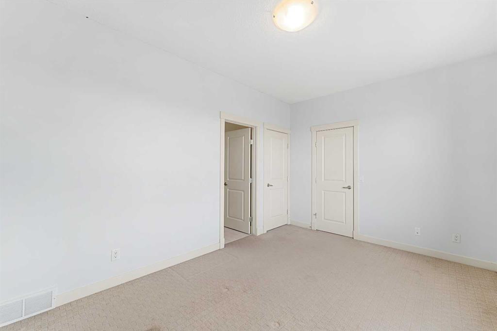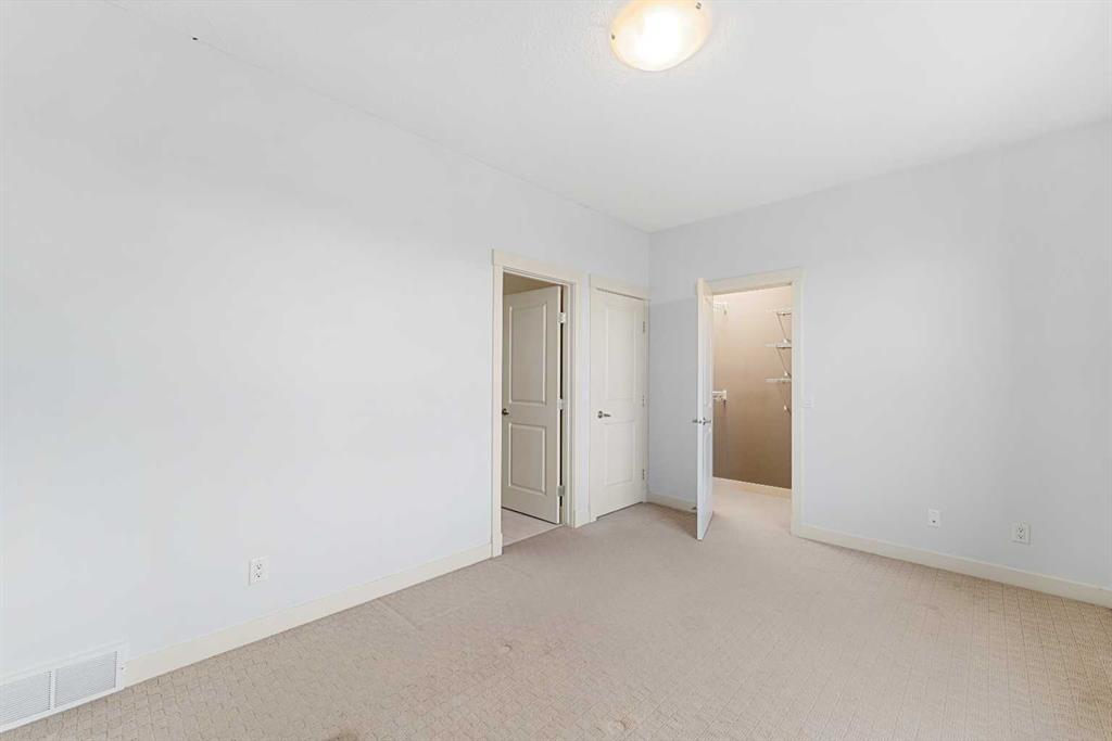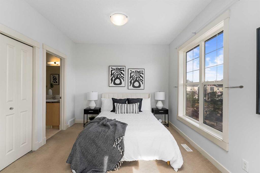 Discover this beautifully styled, move-in-ready townhome situated in a fantastic location. Ideally close to parks, shopping, schools, and an abundance of dining options, this home offers everything you need for comfortable and convenient living. The main floor features a bright, open layout with 9-foot ceilings, durable laminate flooring, and plenty of cabinets in the kitchen. The large island, stainless-steel appliances, and ample counter space make it perfect for cooking and entertaining. A conveniently located laundry room and half bathroom complete the main level. Step outside onto the west-facing front deck, where you can enjoy sunny afternoons and cool evenings, or relax on the back deck, ideal for summer barbecues. Upstairs, you'll find two spacious bedrooms, each with its own ensuite bathroom, providing privacy and comfort. A balcony with double sliding doors offers additional outdoor space to unwind. This townhouse is located within walking distance to schools, parks, tennis courts, and both West 85th and West Springs Village, offering a variety of restaurants, boutique shops, and professional services. The nearby West District Central Park, spanning 8.4 acres, features pathways, ice skating, farmers' markets, events, a skatepark, basketball courts, and concerts at the outdoor amphitheatre. Easy access to the newly completed Stoney Trail ensures quick travel around Calgary. Don’t miss the opportunity to view this outstanding, stylish home in an incredible community.